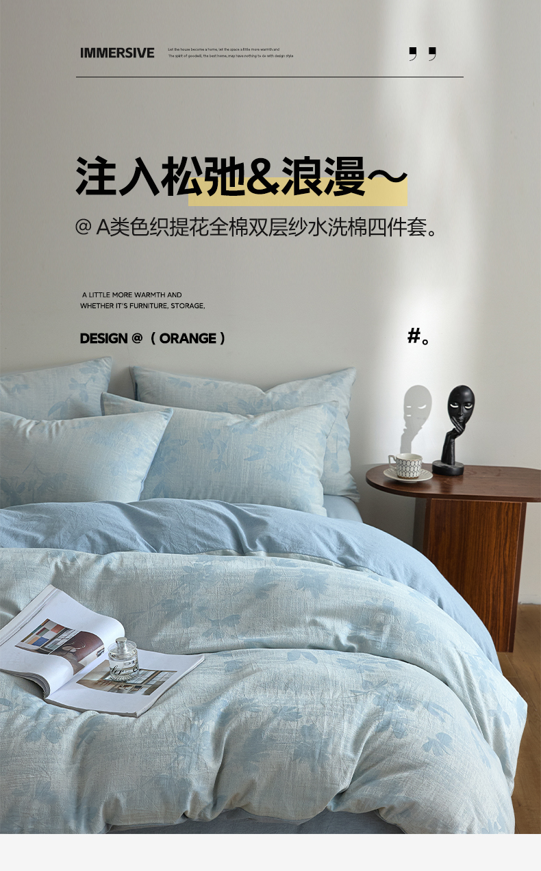 (总)如一 2026新款A类色织提花全棉双层纱水洗棉四件套,序章蓝,序章粉,序章绿,蝶漫粉,蝶漫灰,蝶漫咖,蝶漫绿,浮光粉,浮光灰,浮光咖,浮光绿,花忆粉,花忆灰,花忆绿,骏影黑,骏影蓝,骏影绿,兰序咖,兰序蓝,兰序绿,兰序紫,叶笙粉,叶笙咖,叶笙绿