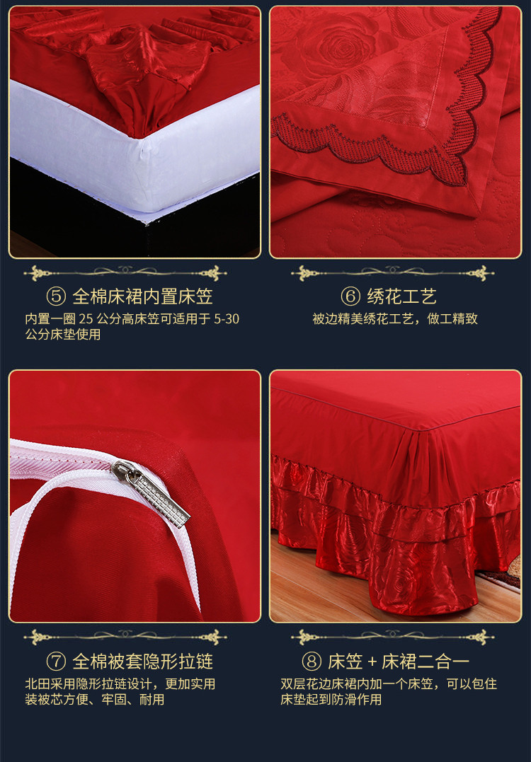 福丽莱家纺 贡缎提花床裙四件套(单层)玫瑰风情-大红