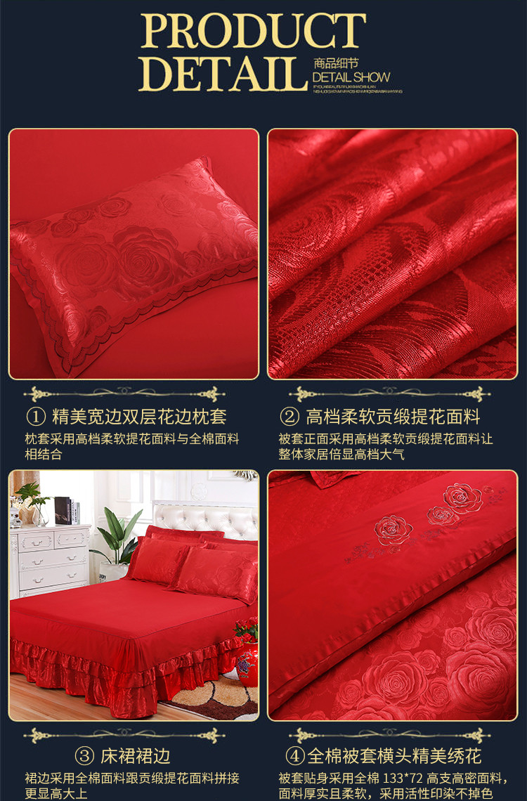 商品名称:福丽莱家纺 贡缎提花床裙四件套(单层)玫瑰风情-大红