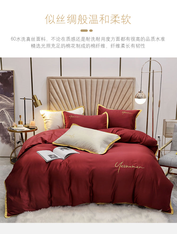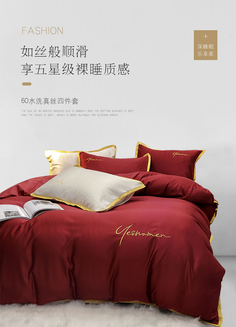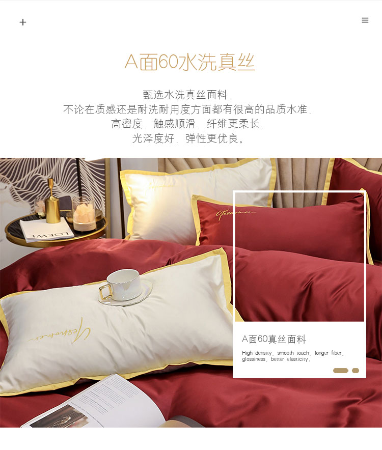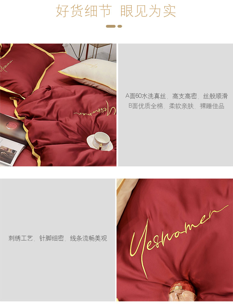 商品名称:安妮家居 2020新款全棉水洗真丝凯茜四件套新实拍 酒红
