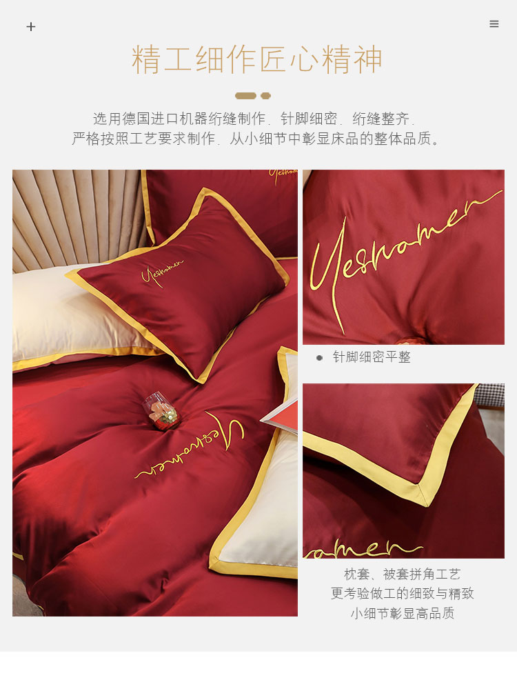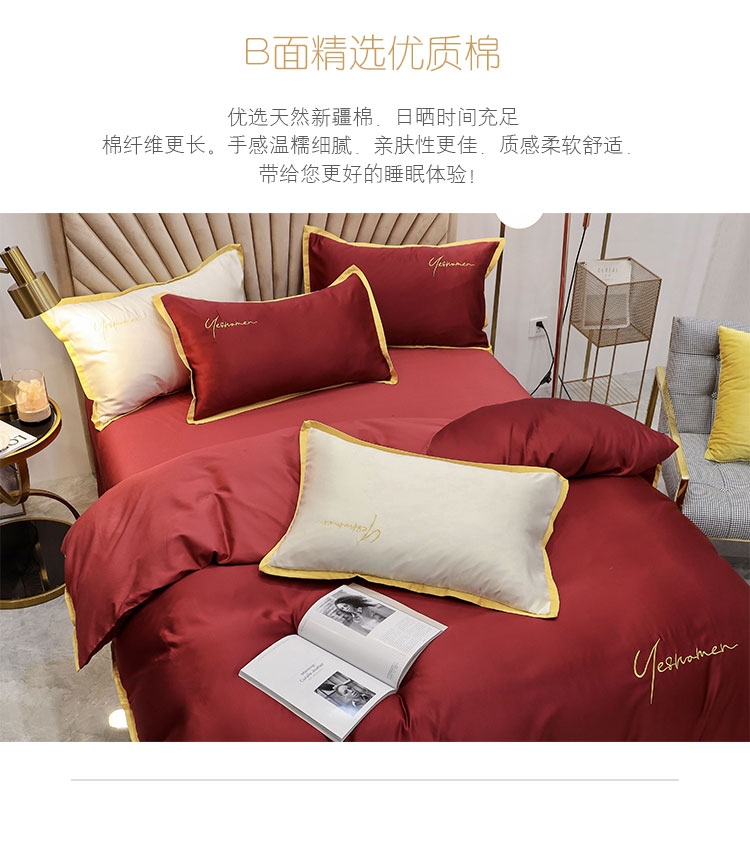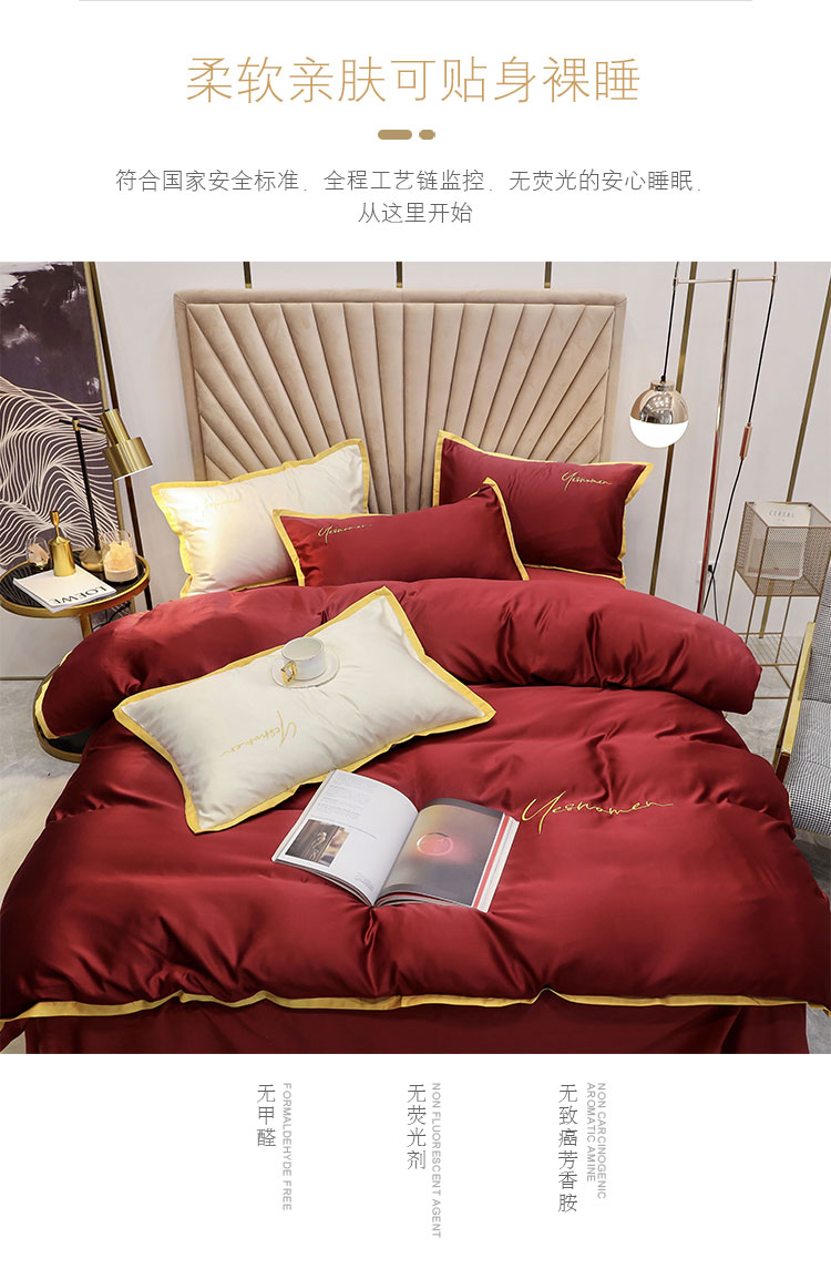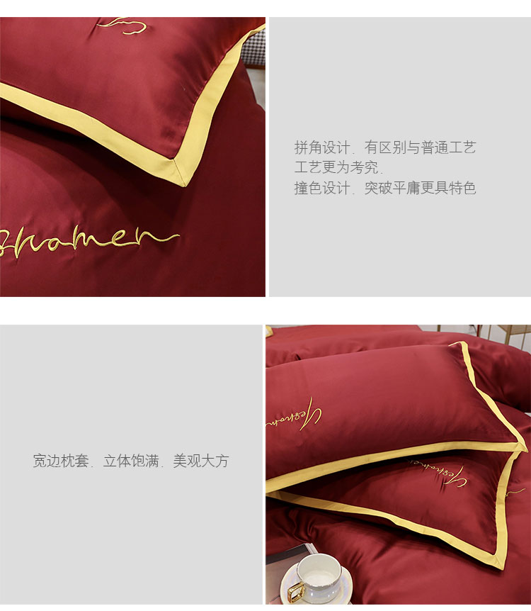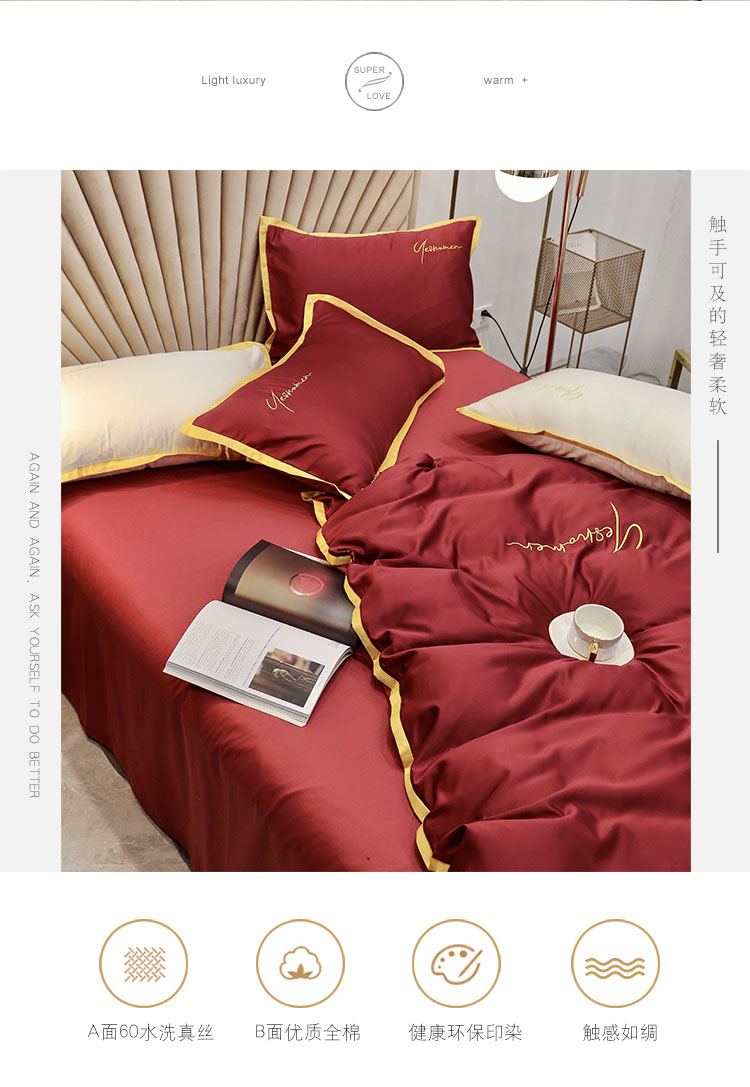 商品名称:安妮家居 2020新款全棉水洗真丝凯茜四件套新实拍 酒红
