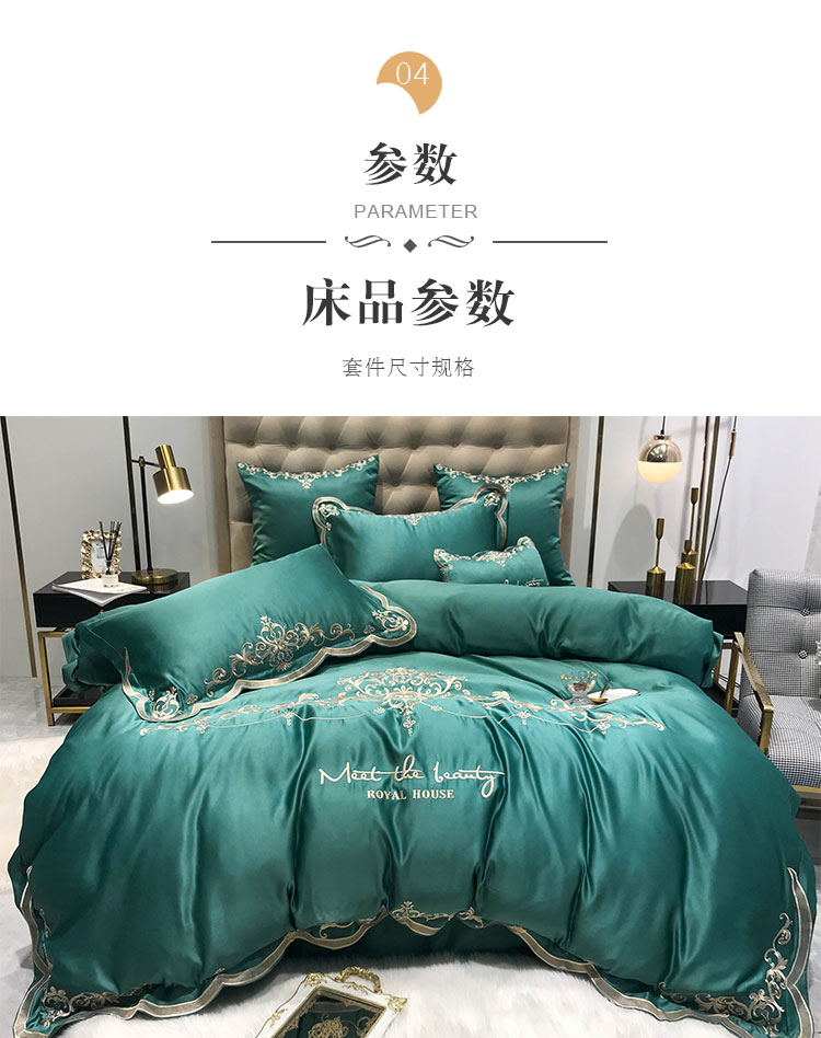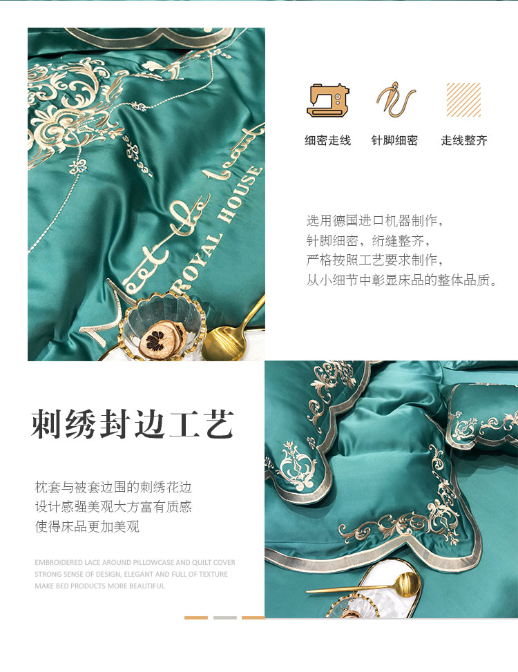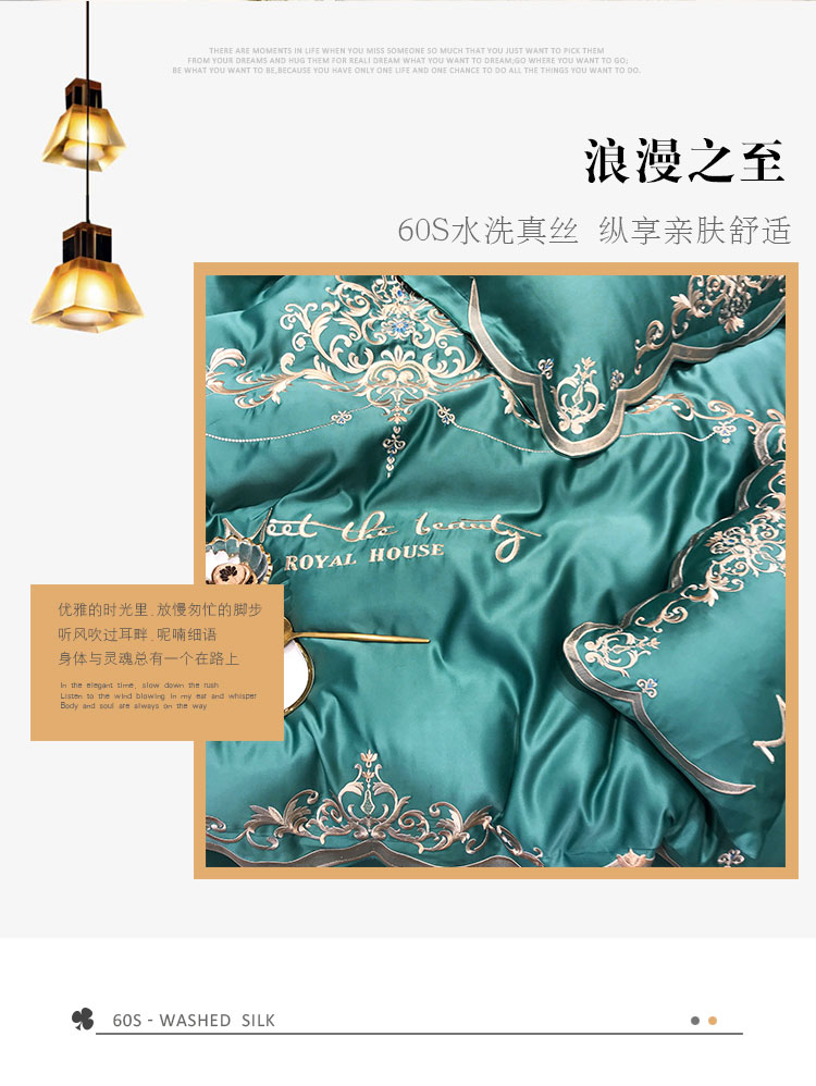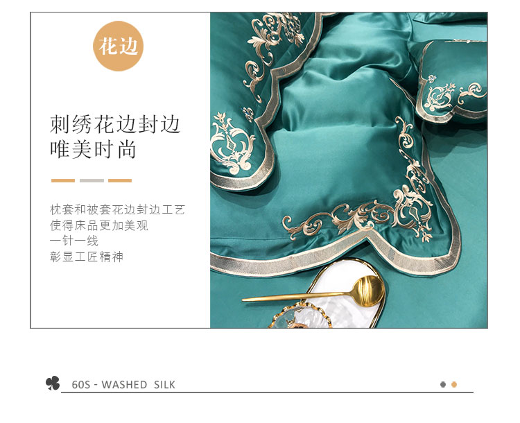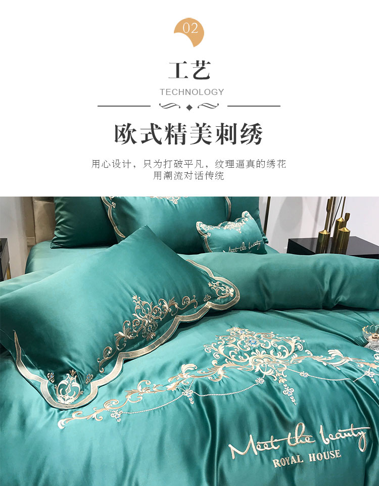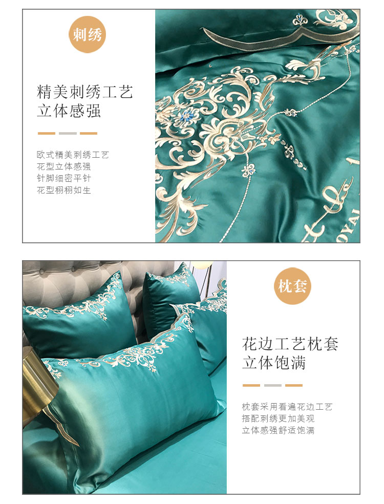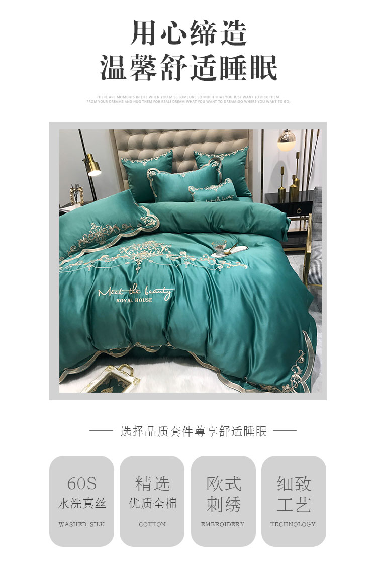 商品名称:安妮家居 2020新款60支水洗真丝绣花四件套 佛罗伦萨墨绿