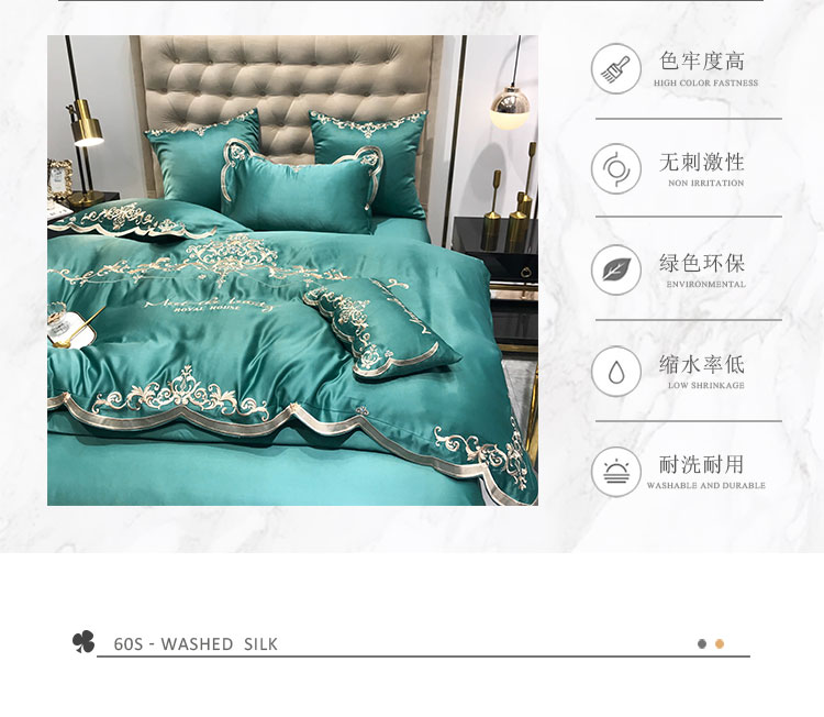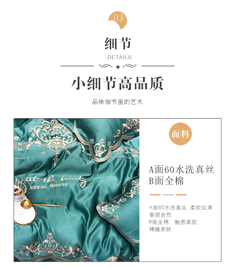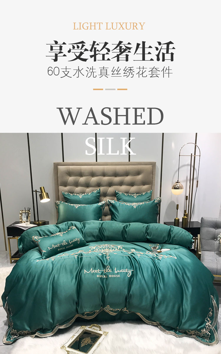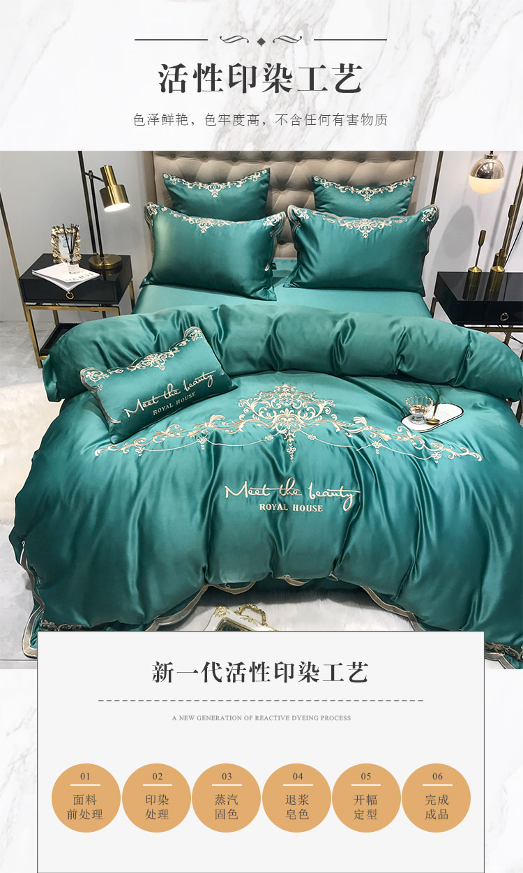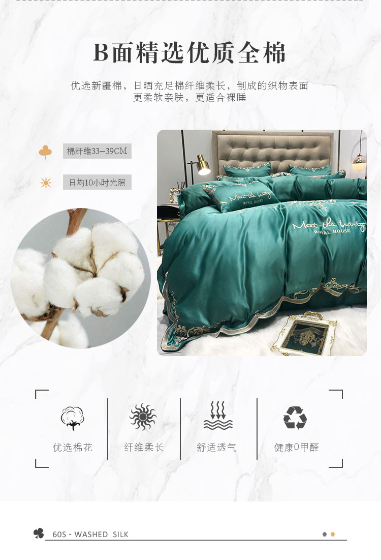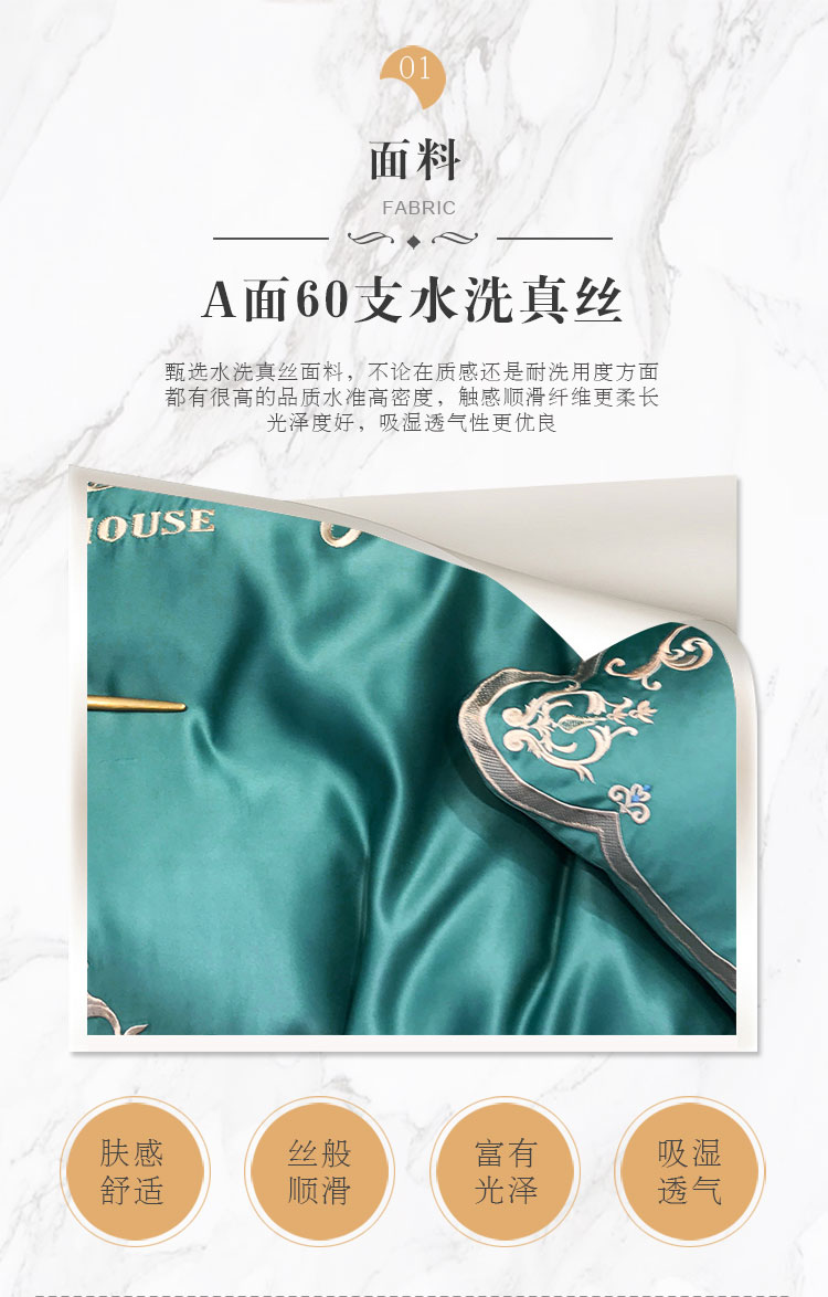 商品名称:安妮家居 2020新款60支水洗真丝绣花四件套 佛罗伦萨墨绿