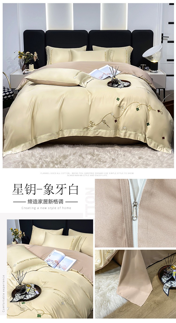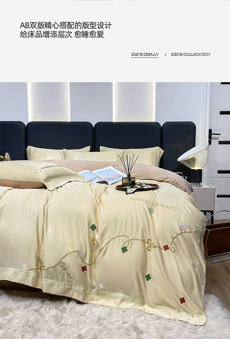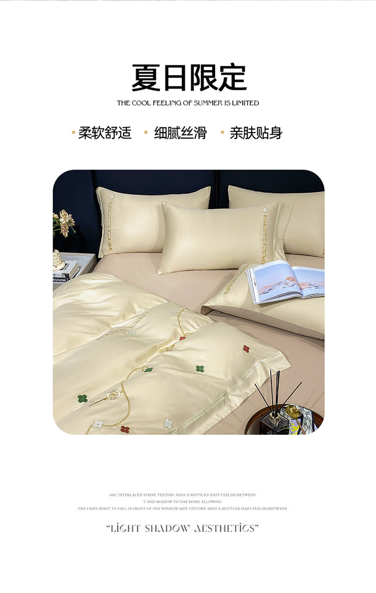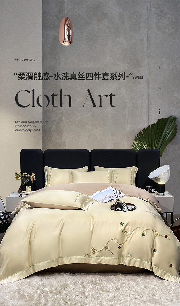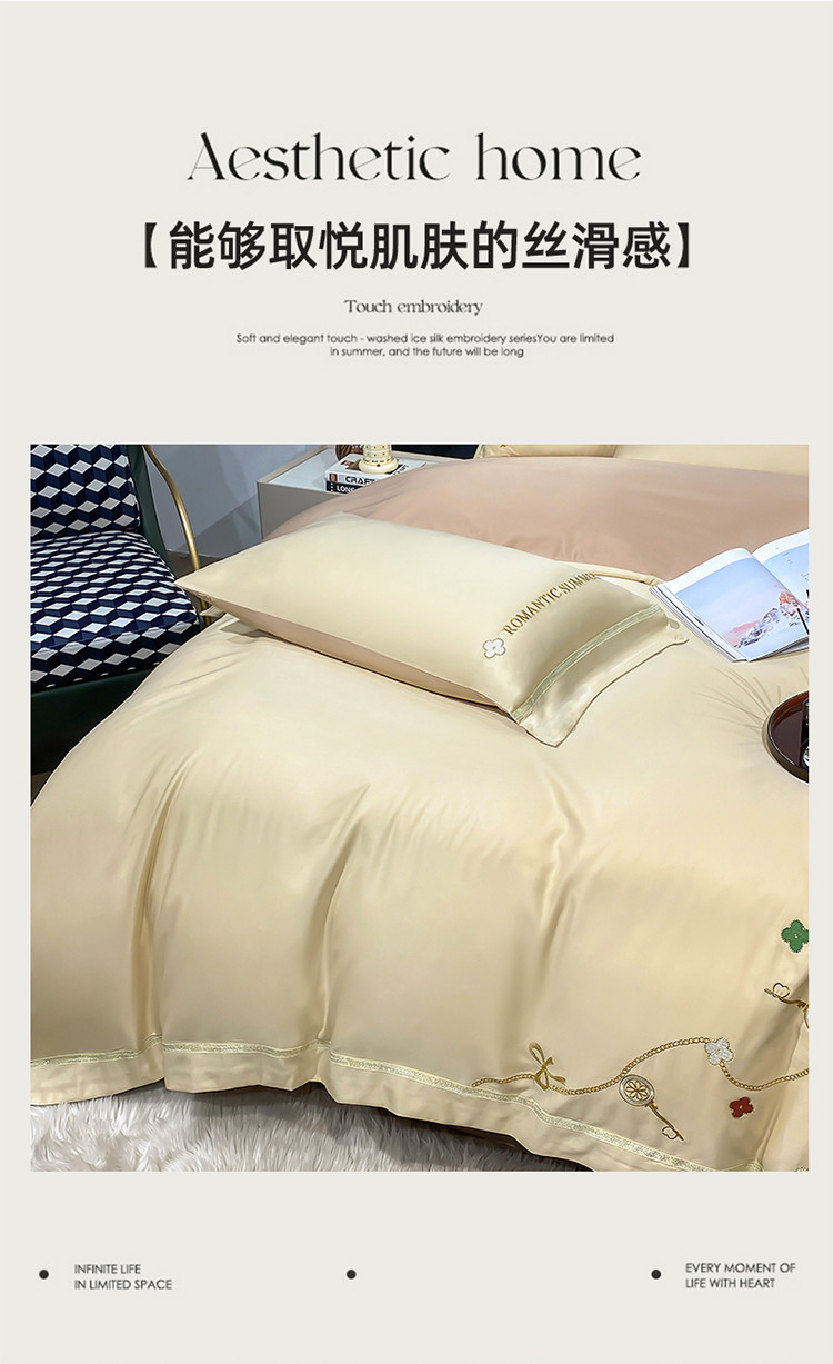 总推-潮邦 2025高克重水洗真丝绣花四件套真丝纯色轻奢刺绣工艺