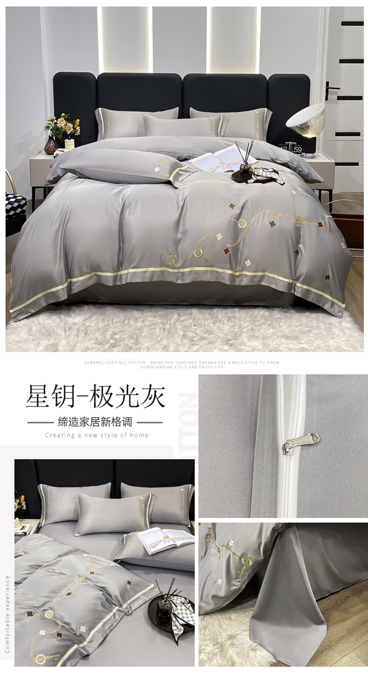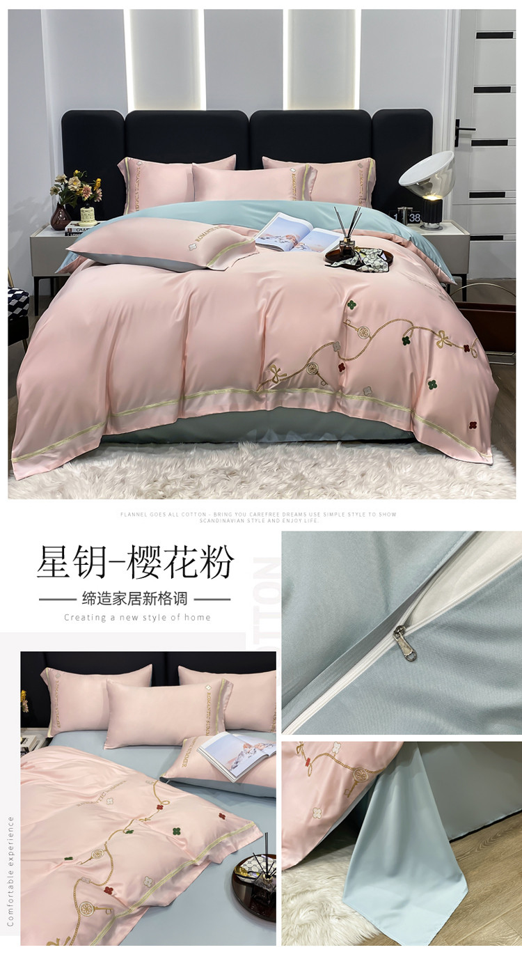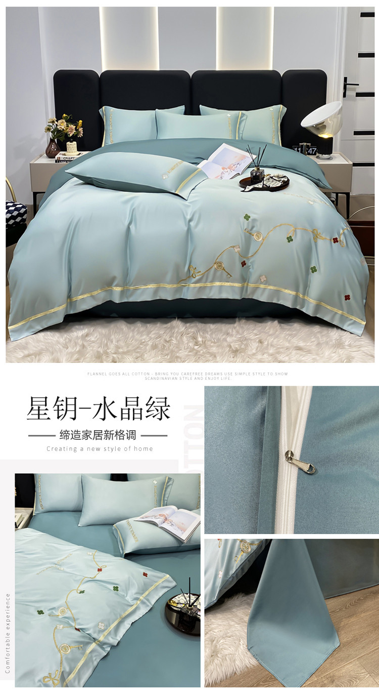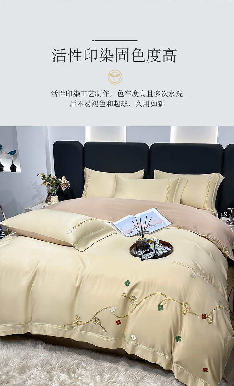 总推-潮邦 2025高克重水洗真丝绣花四件套真丝纯色轻奢刺绣工艺