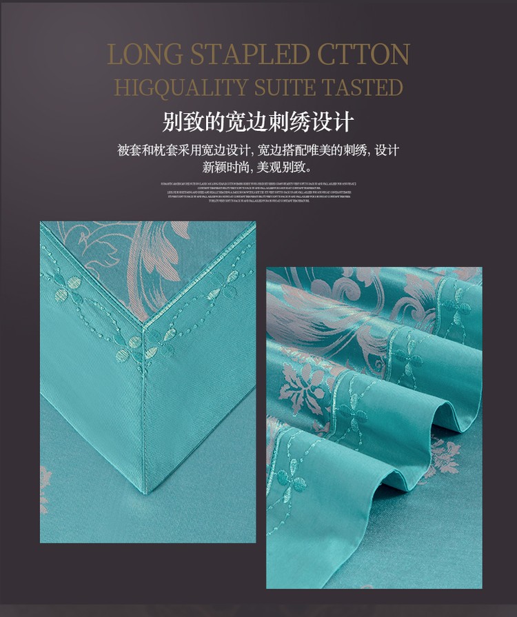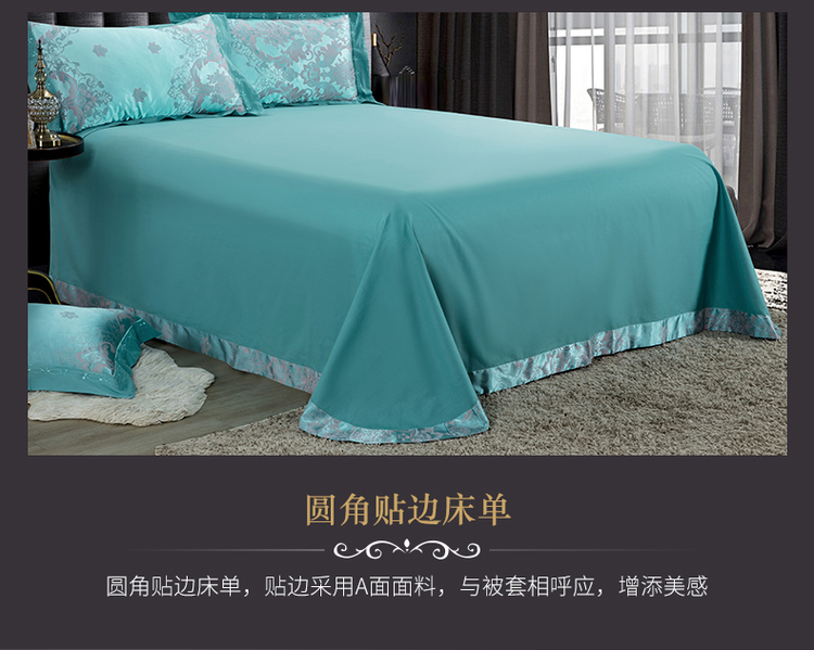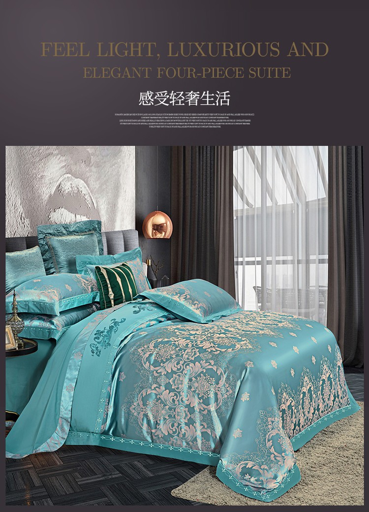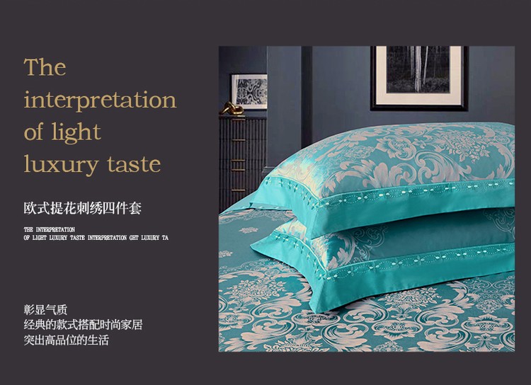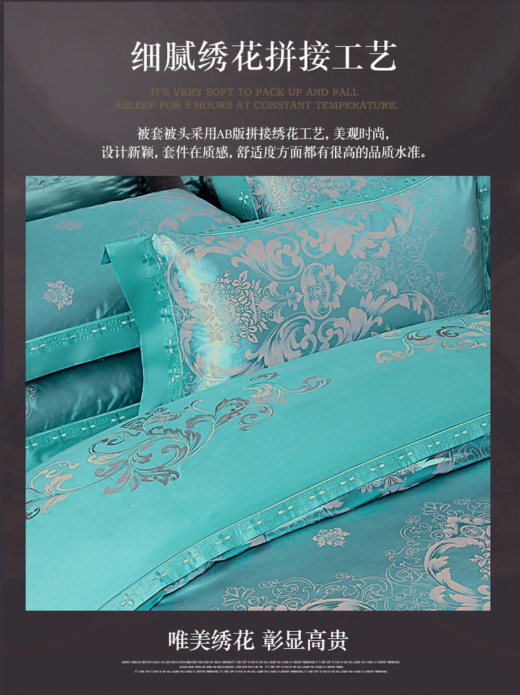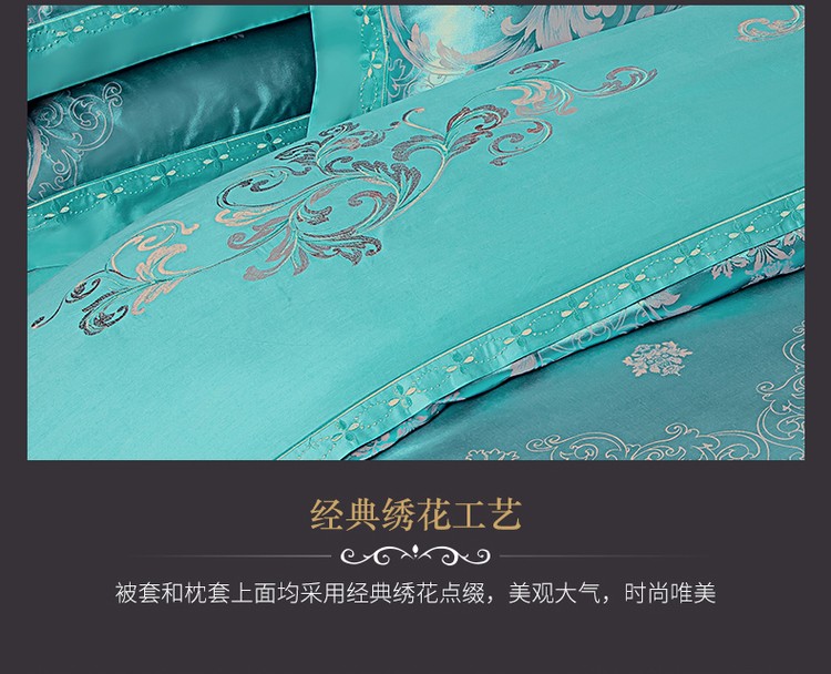 柔觉家纺 天丝刺绣贡缎提花全棉四件套,水汐-绸缎兰