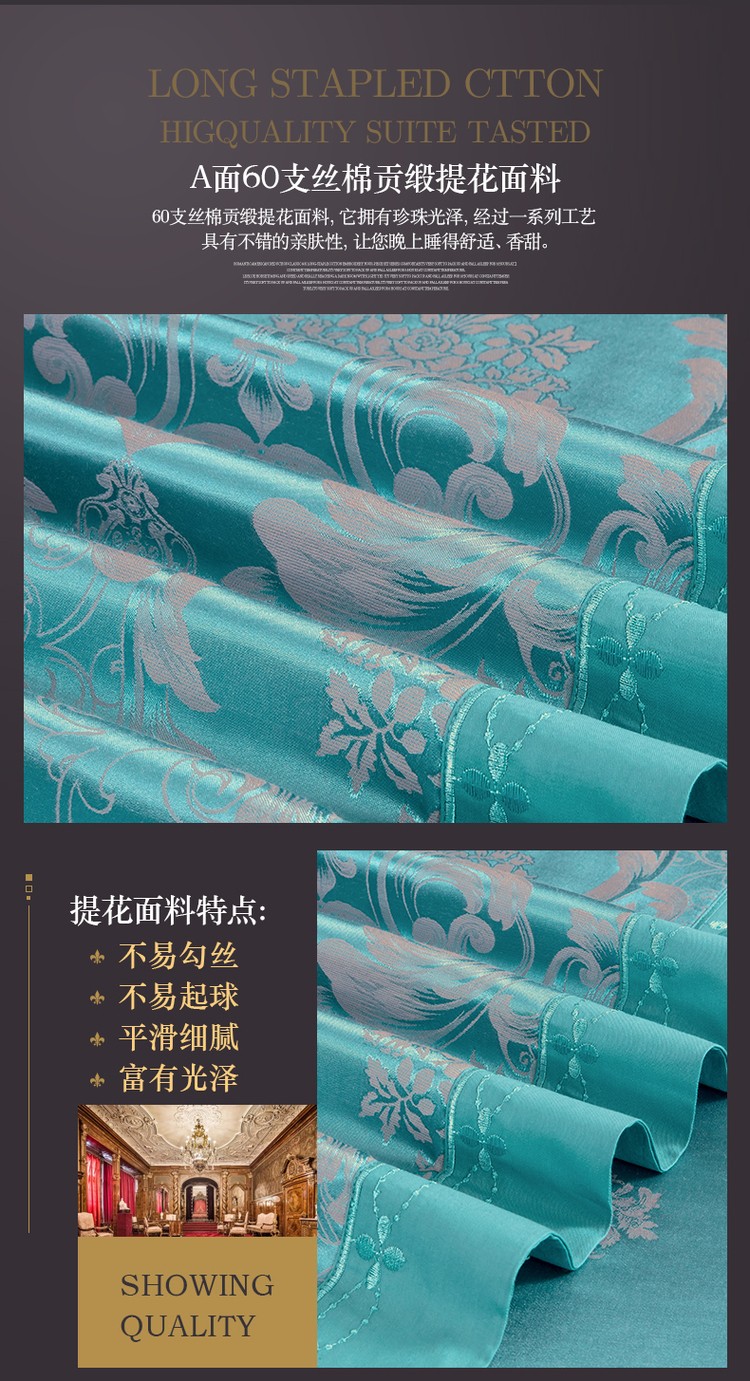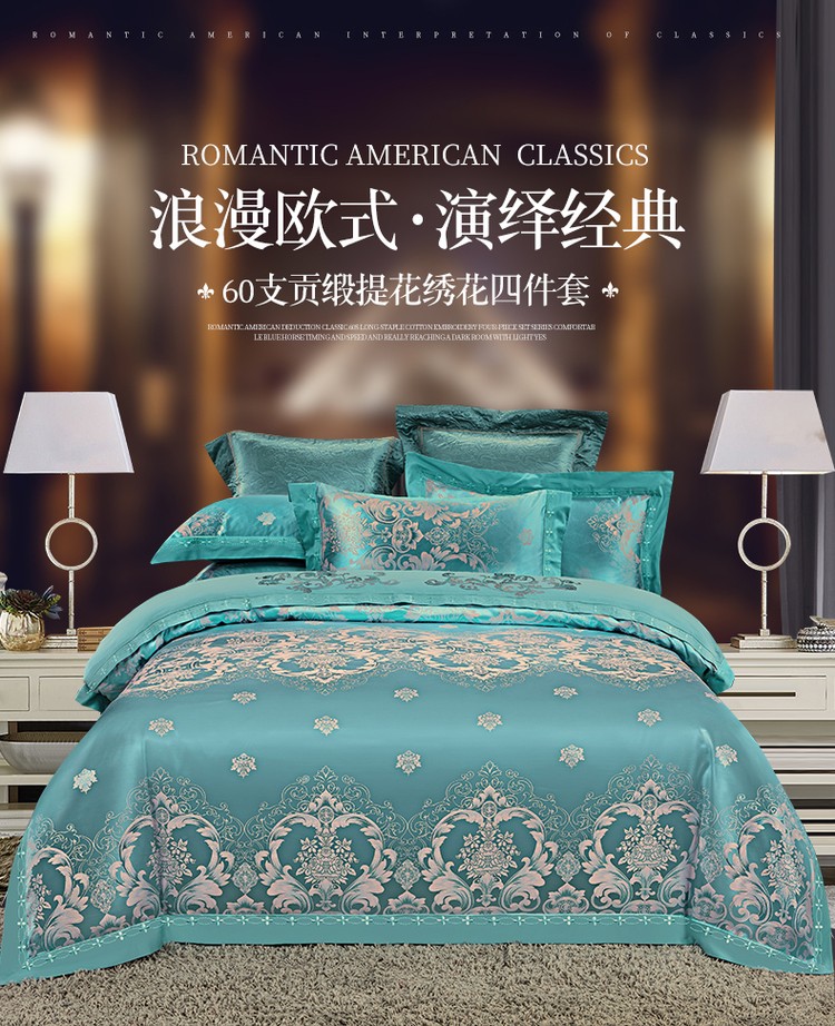 (总)柔觉家纺 天丝刺绣贡缎提花全棉四件套,艾利斯-兰金,宝琪-藕荷玉,罗娜恋歌-粉,奥威丽雅-蓝,奥薇丽雅(豆沙),龙凤交鸣(大红),罗娜恋歌-红玉,情恋花语(大红),罗兰庄园-靛蓝,莫奈情怀-蓝金,叶语浪漫-浅紫,约瑟情调-灰金,约瑟情调-魅紫,雅普诺-卡兰,小憩-雪青,科西利亚-金色,雅普诺-红灰,水汐-绸缎兰