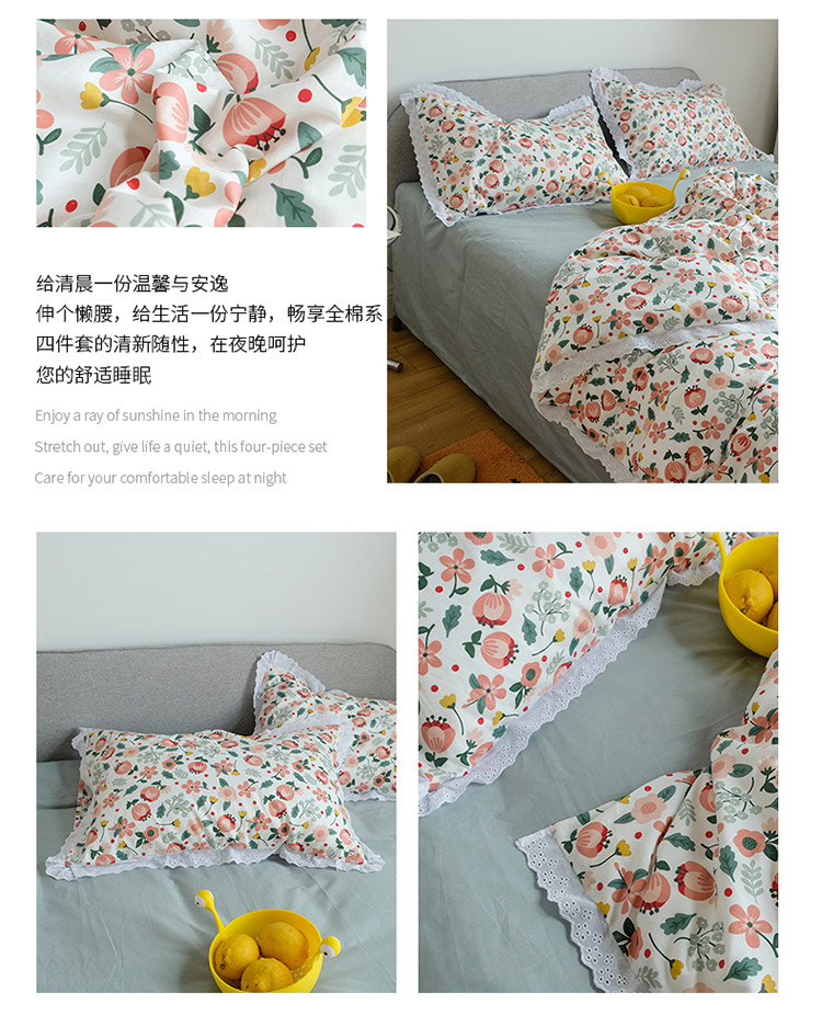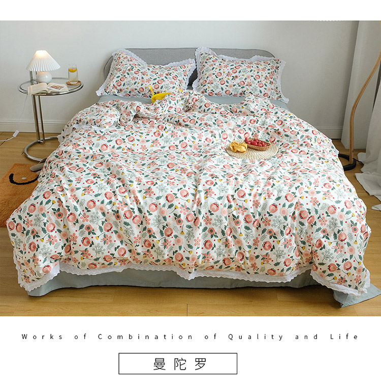 商品名称:艾沁 2020新款韩国刺绣花边小碎花纯棉四件套 曼陀罗