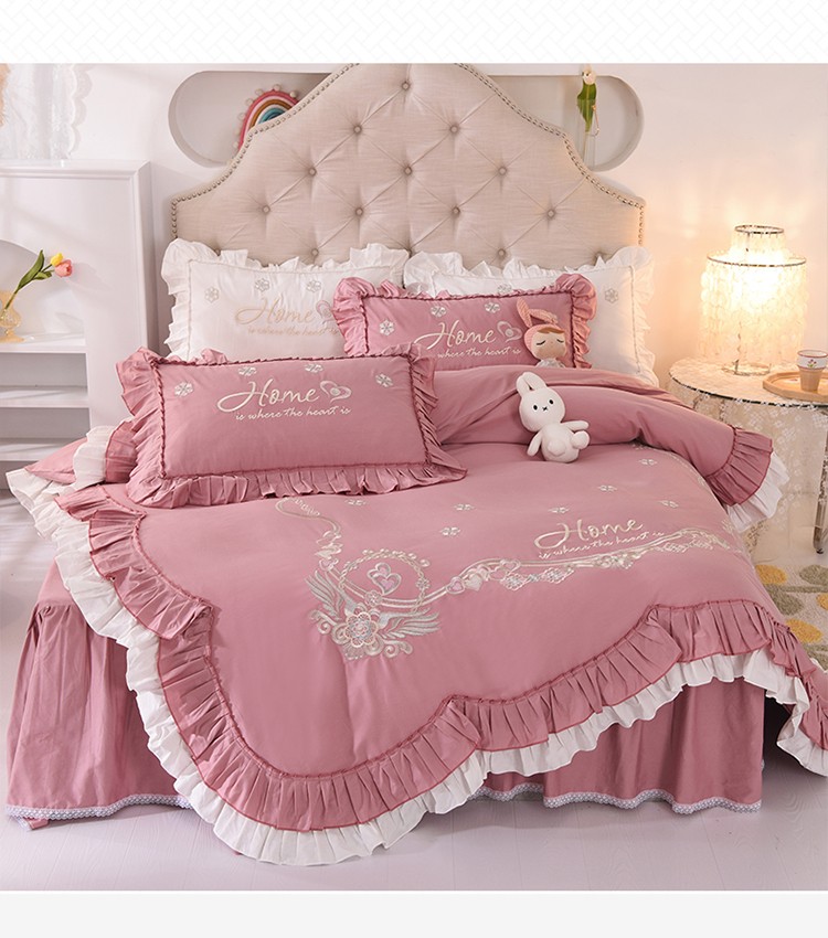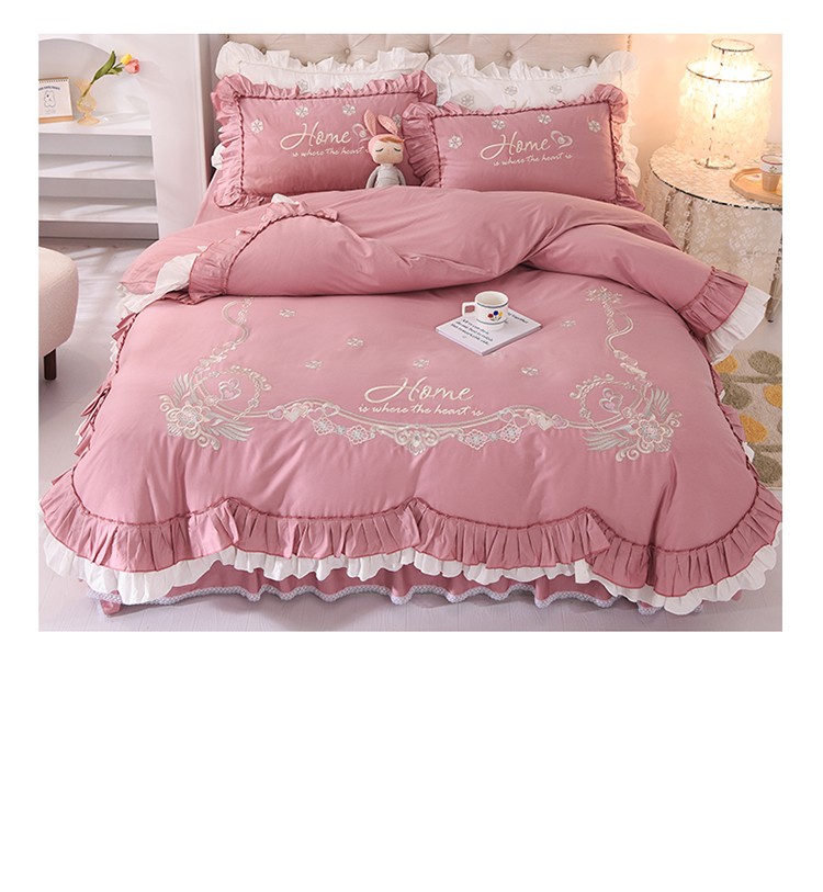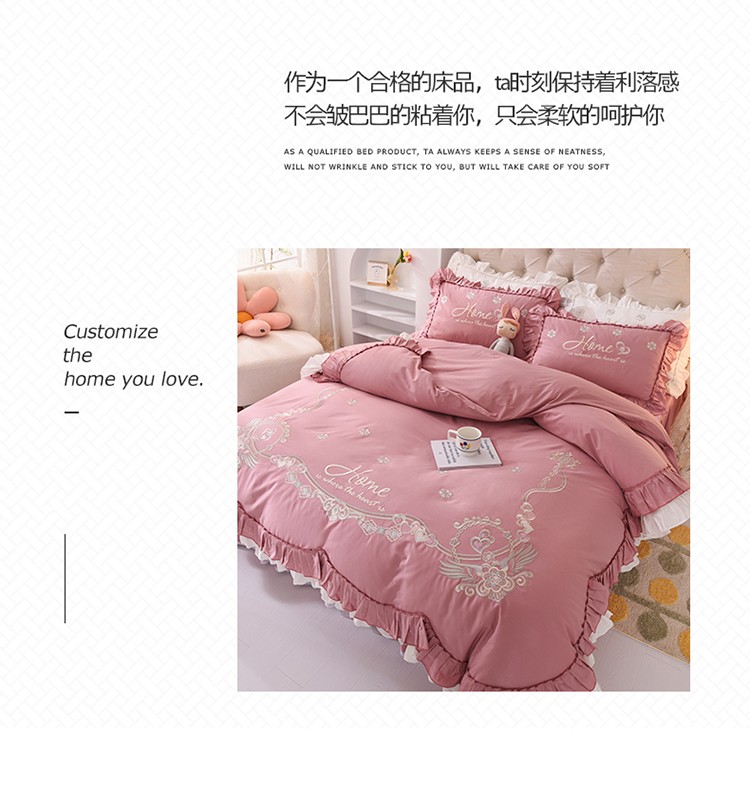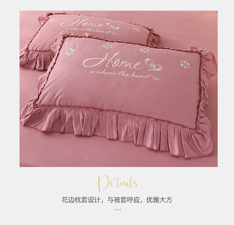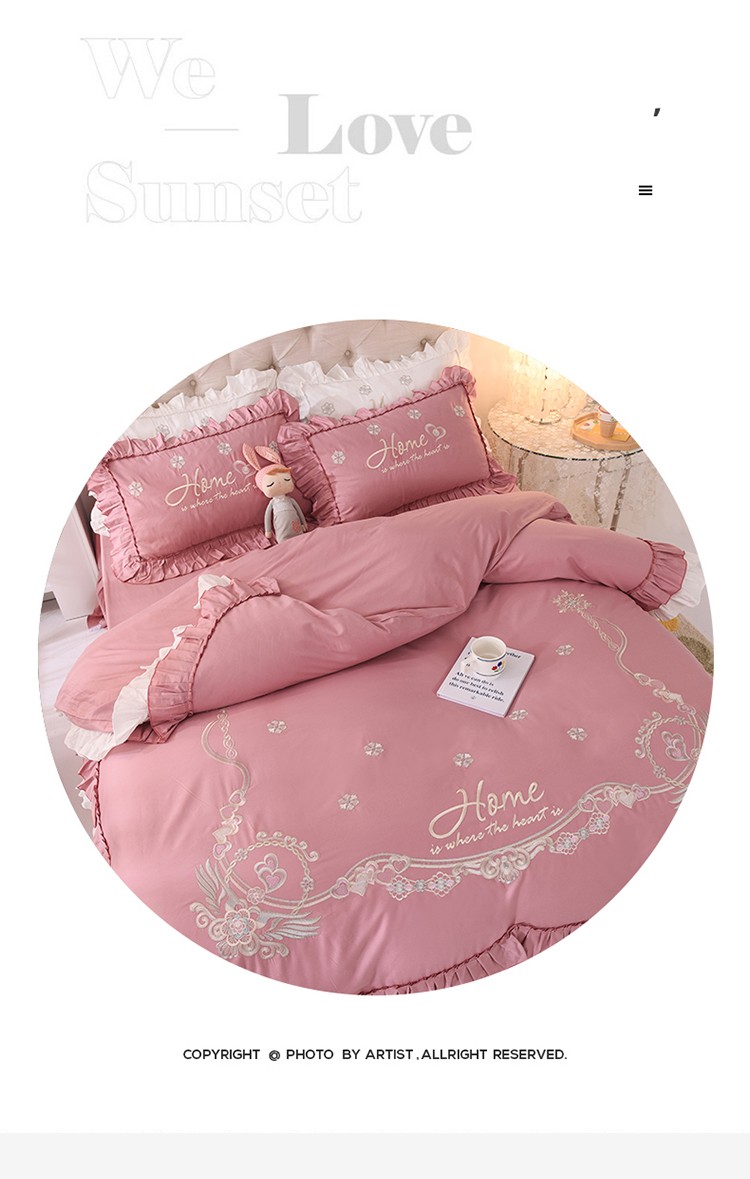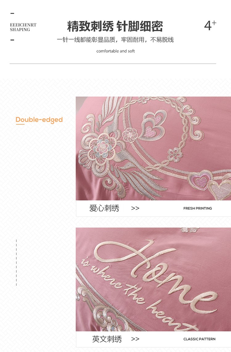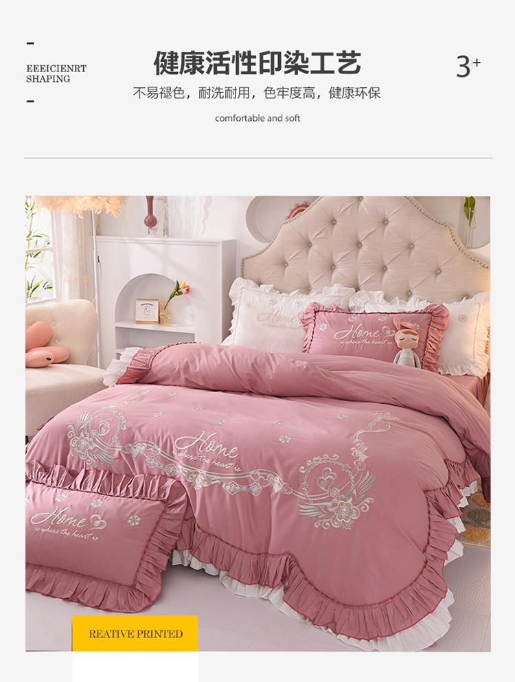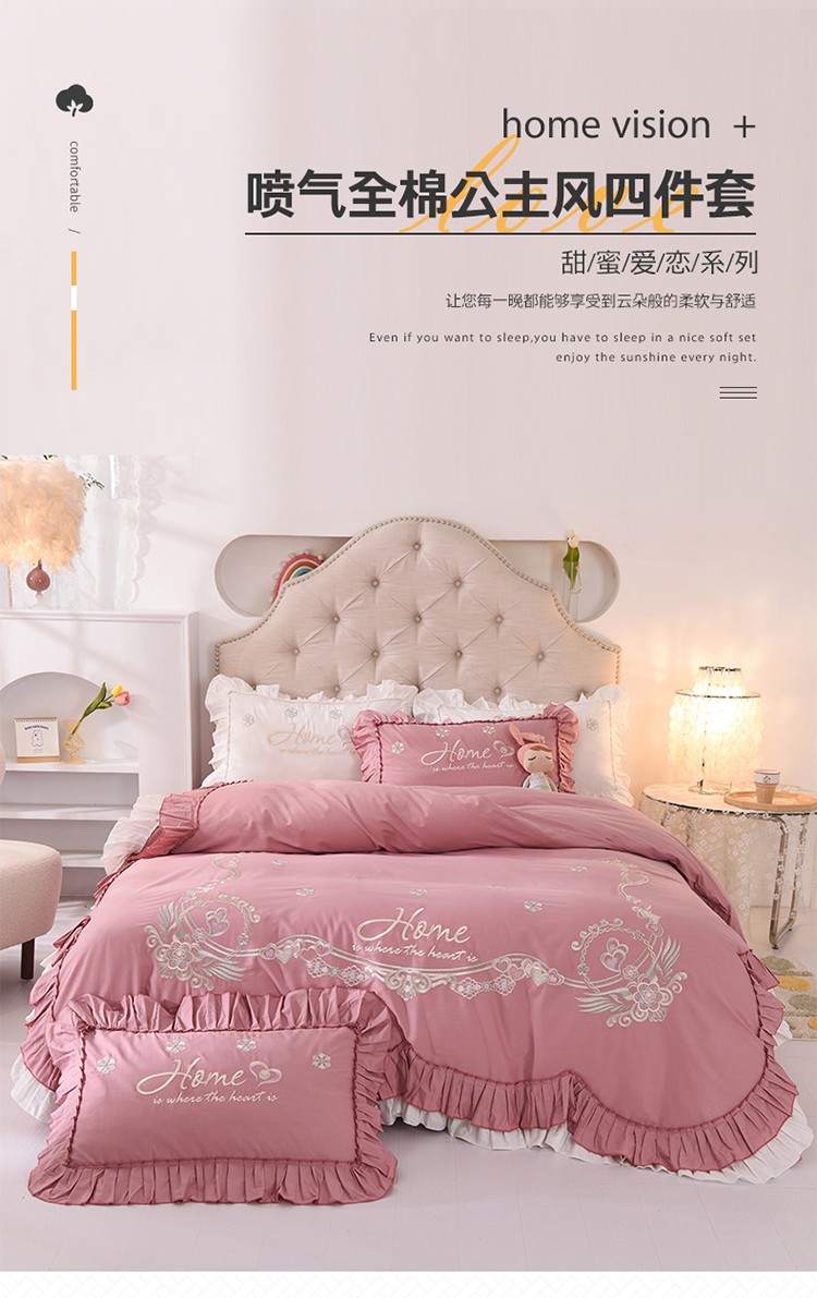 迪欧芙 2024春季纯棉13372公主风四件套爱的结语系列 爱的结语-粉,爱的结语-粉