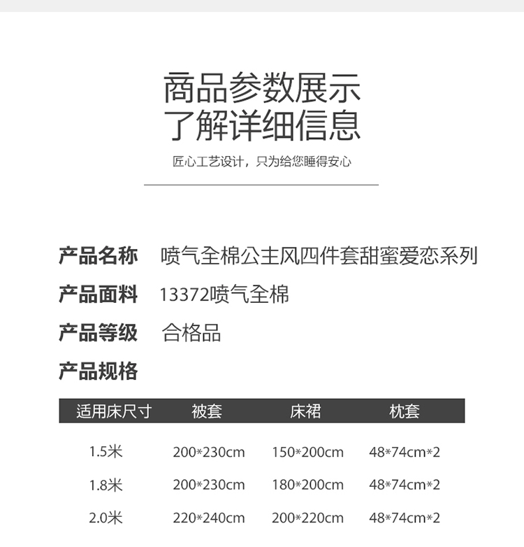 商品名称:迪欧芙21纯棉喷气13372公主风甜蜜爱恋系列四件套豆沙色