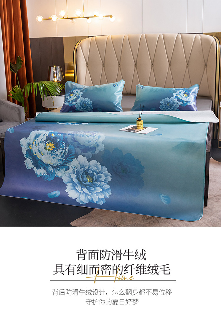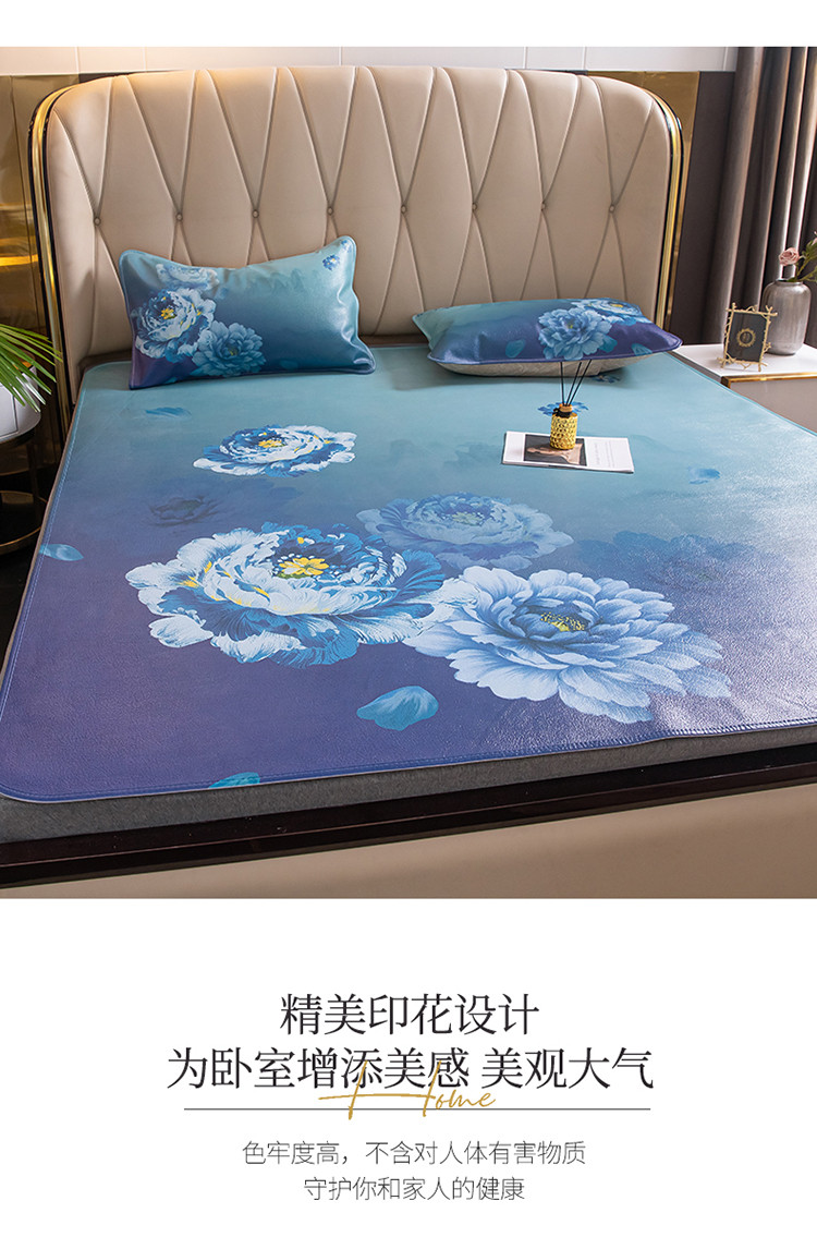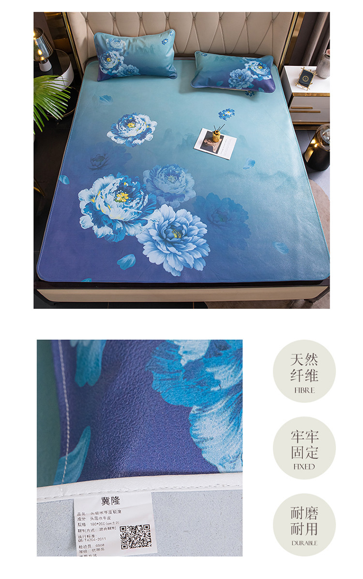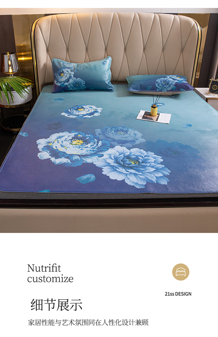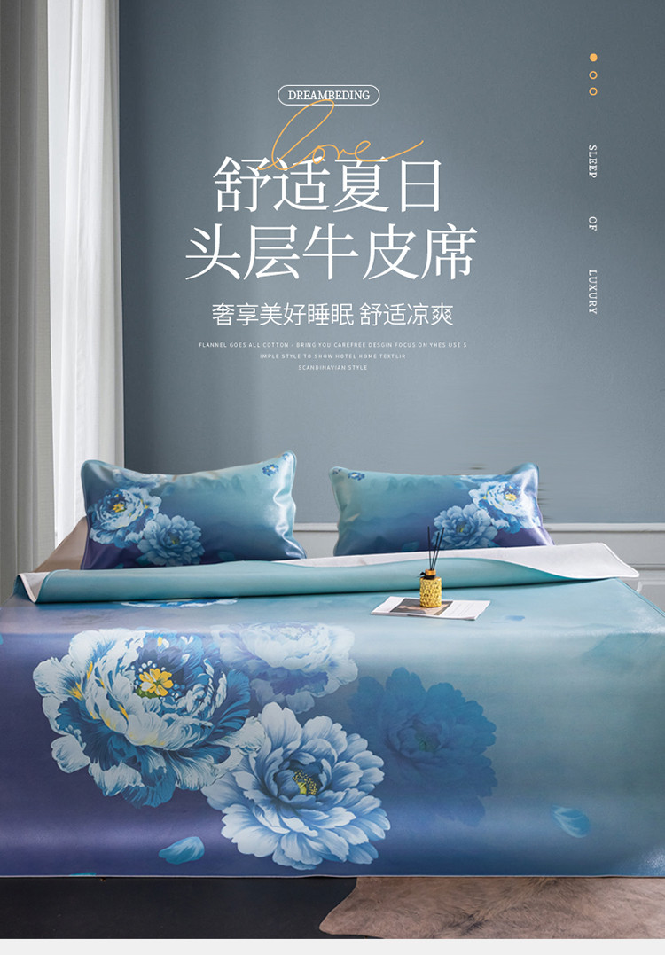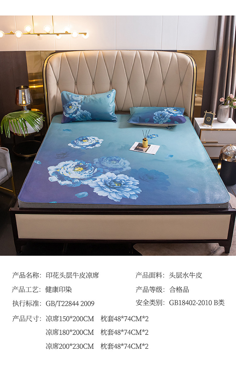吾秀 2021新款数码版头层牛皮席 蓝牡丹