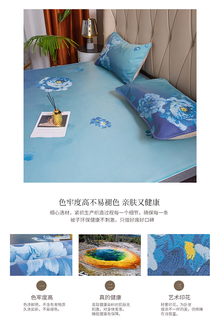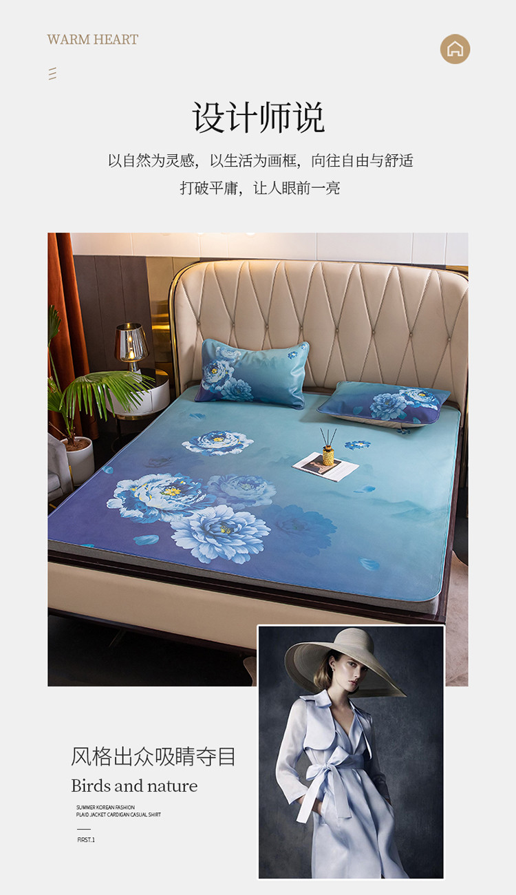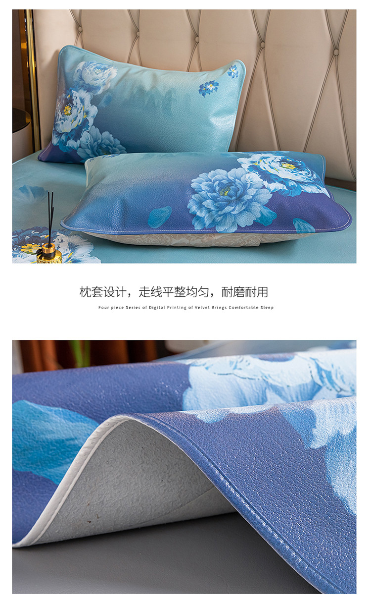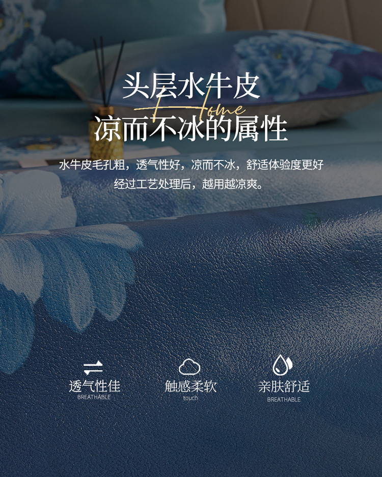 商品名称:吾秀 2021新款数码版头层牛皮席 蓝牡丹