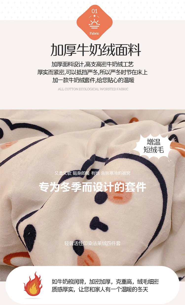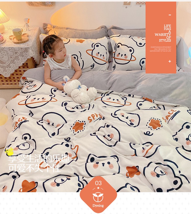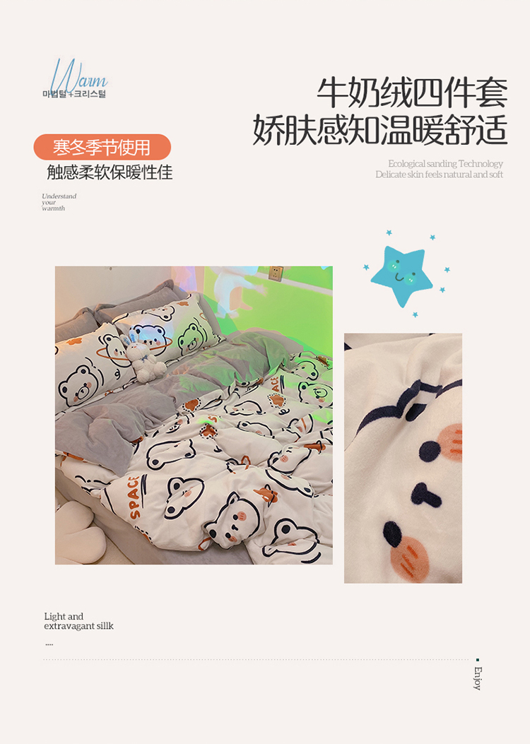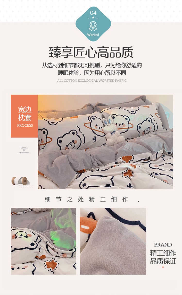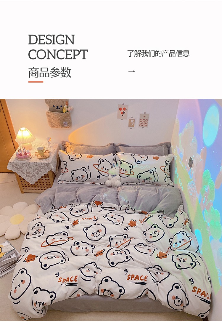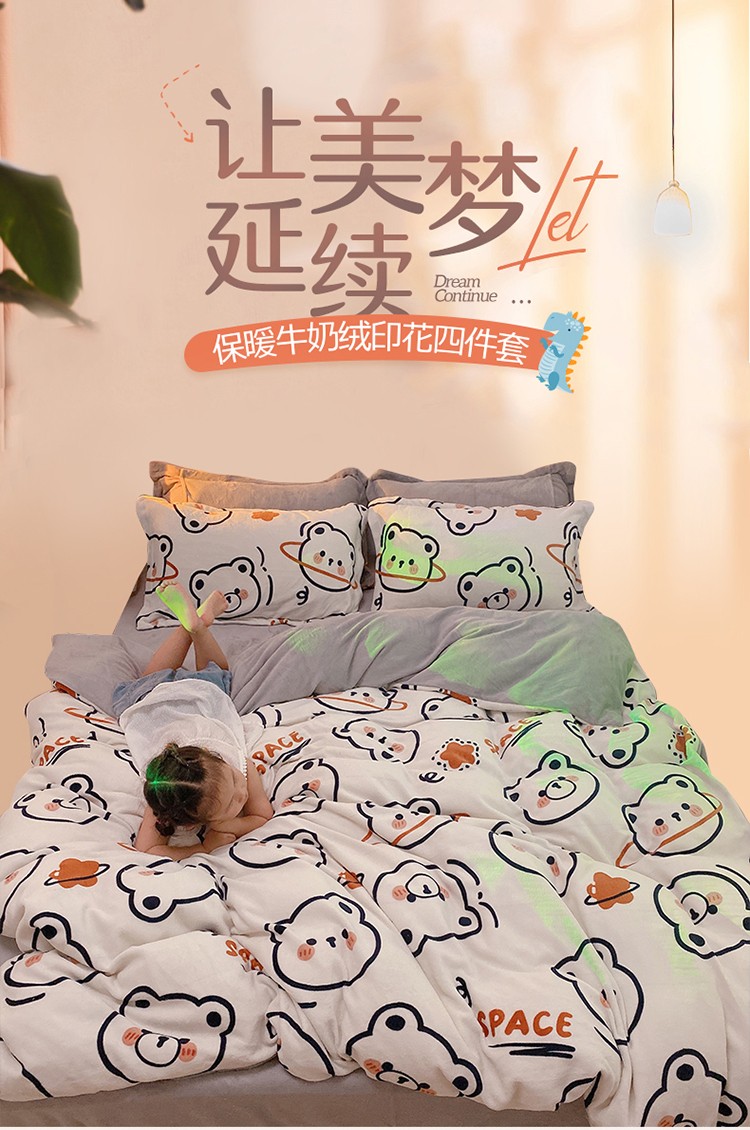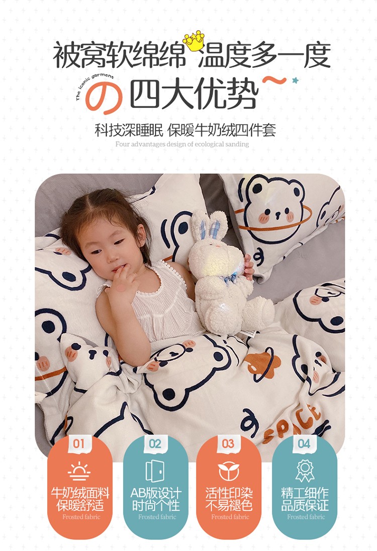 沐棉家纺2021新款卡通牛奶绒四件套 太空熊