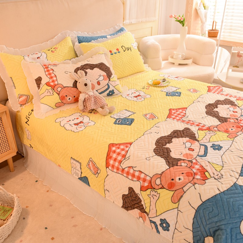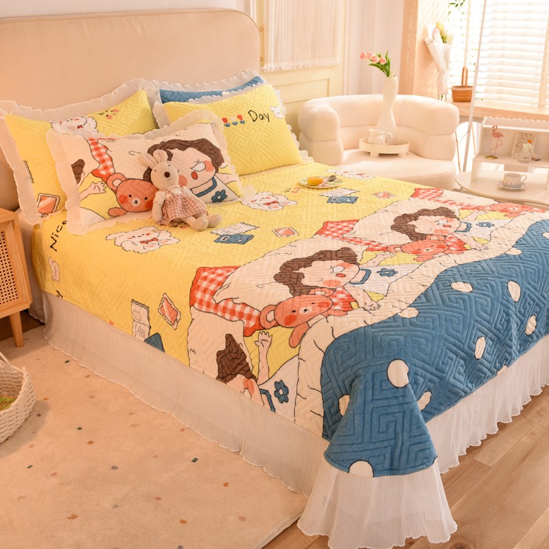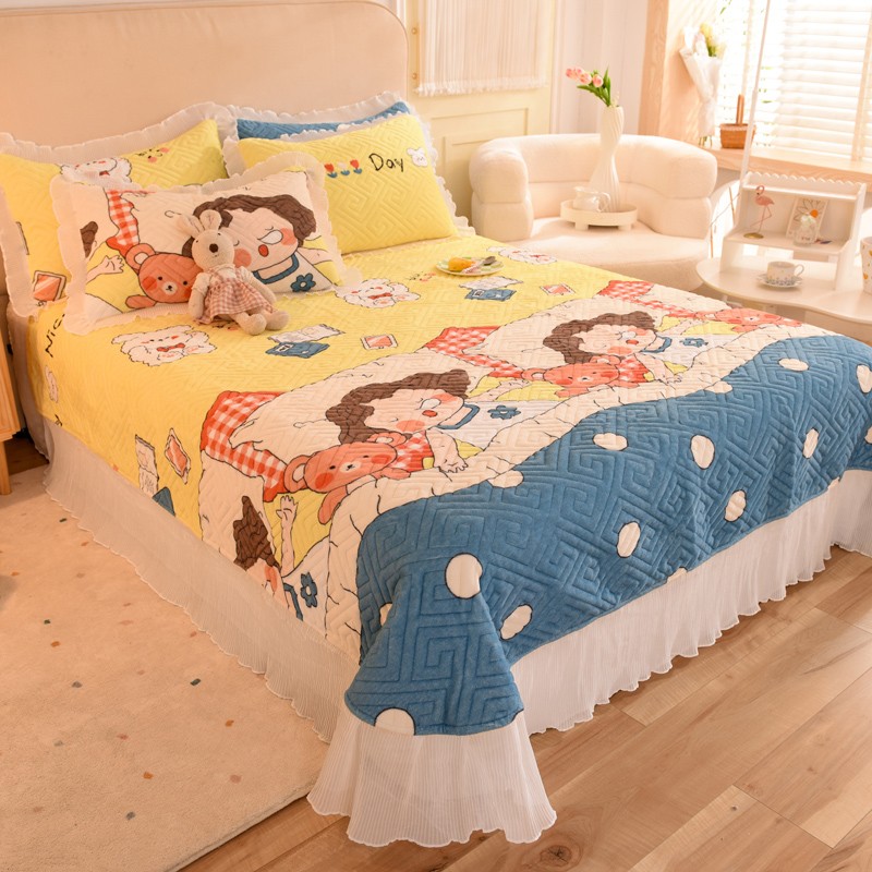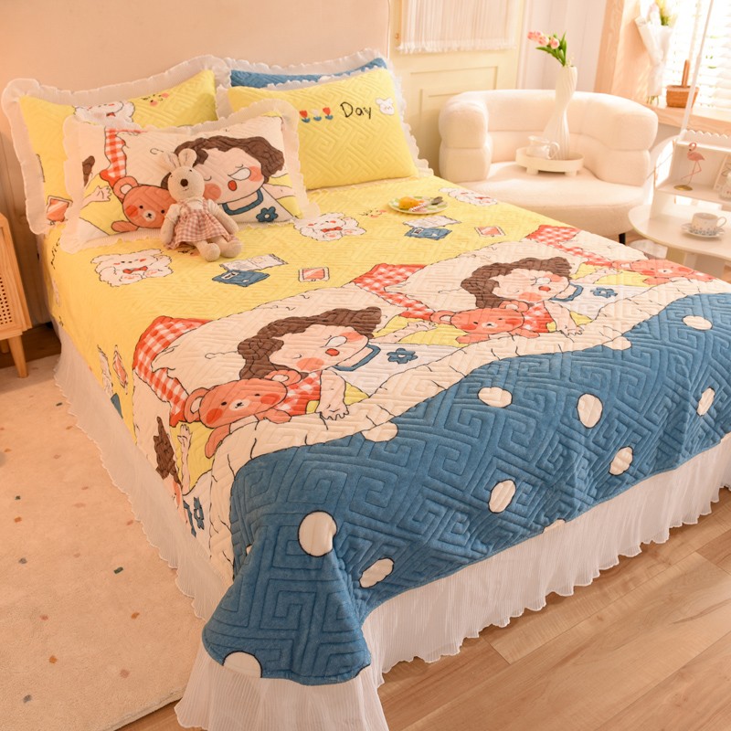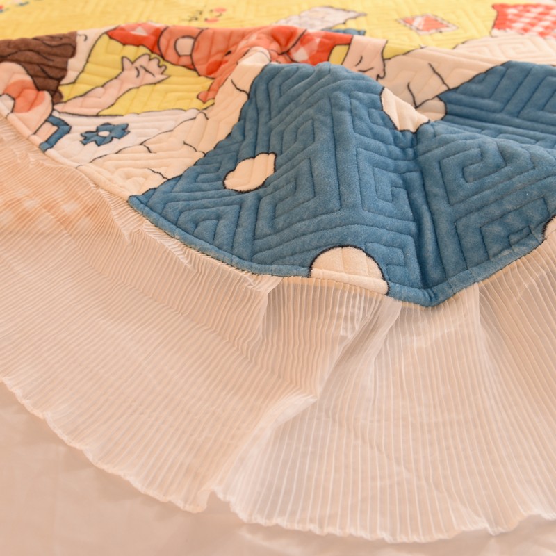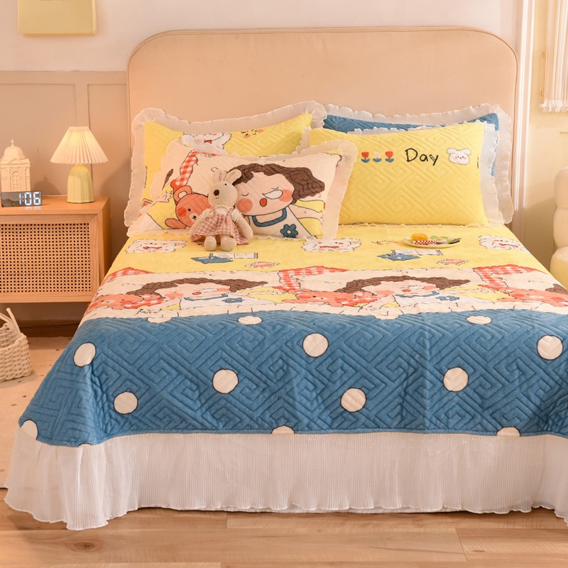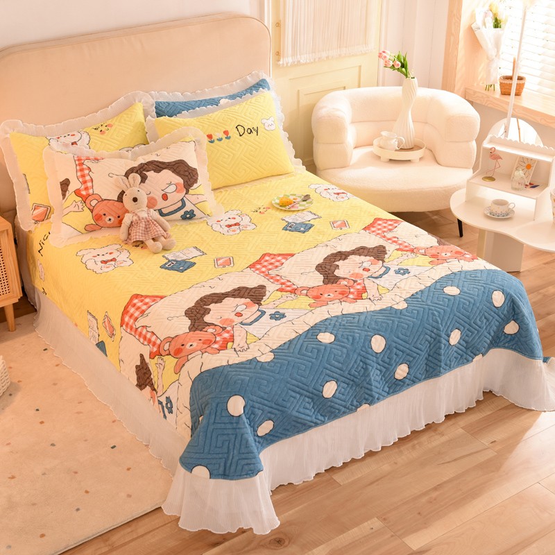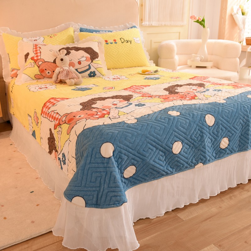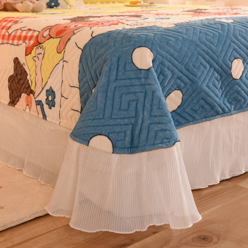商品名称:2025新款牛奶绒印花夹棉花边 单品床盖 泡泡公主