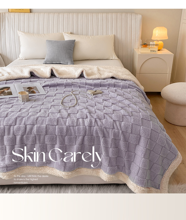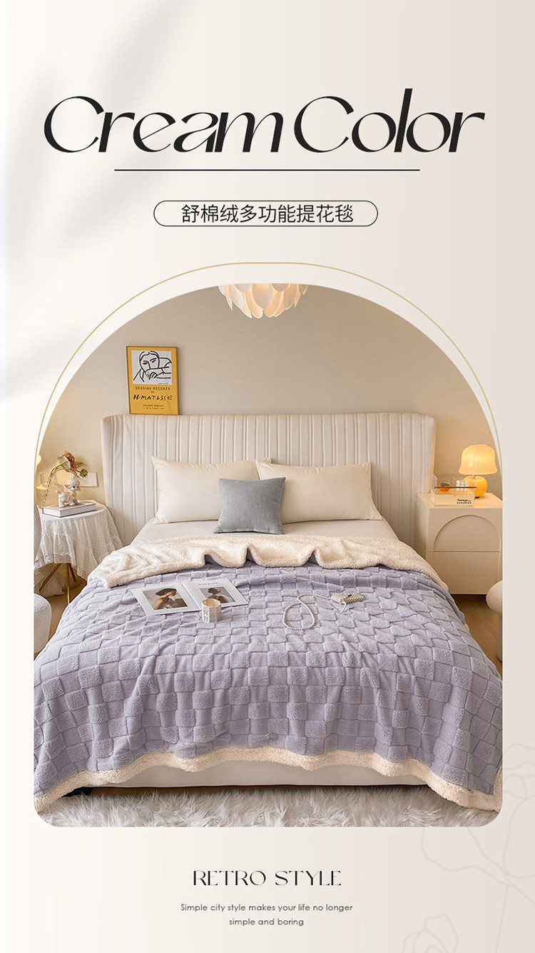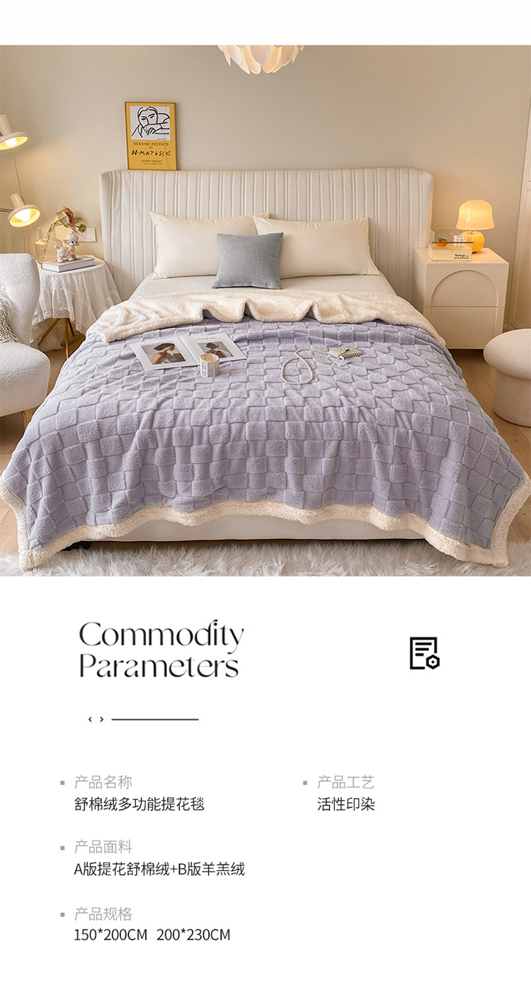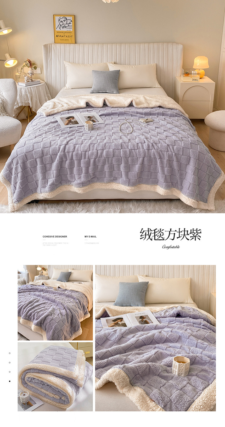 商品名称:吾秀家居2022新款舒棉绒提花毯 绒毯方块紫