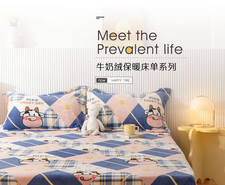 梦家居 2022新款秋冬新款牛奶绒单床单 格子奶牛
