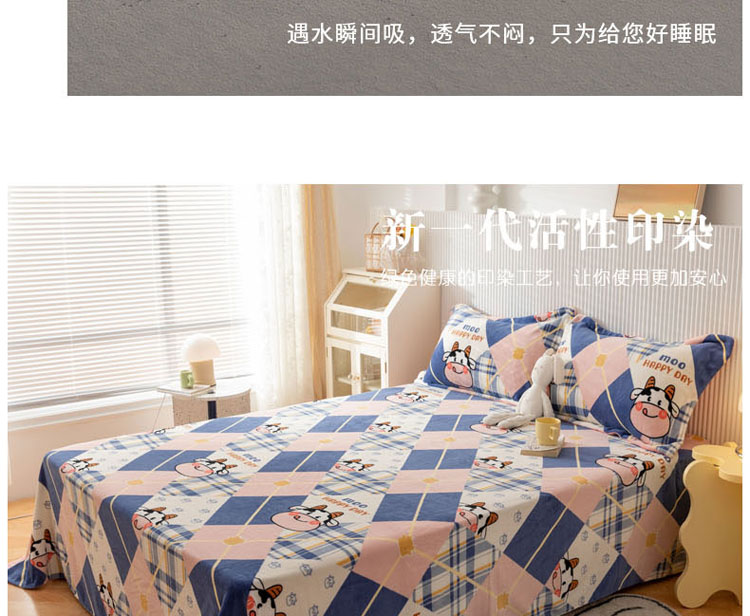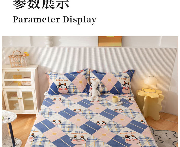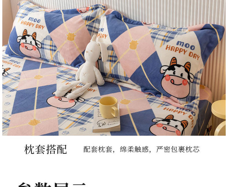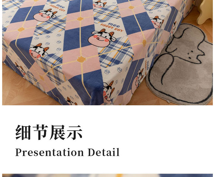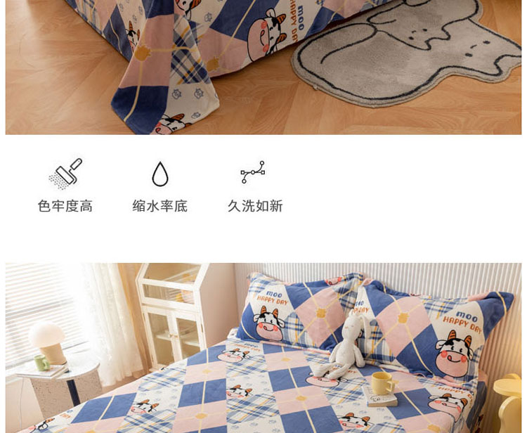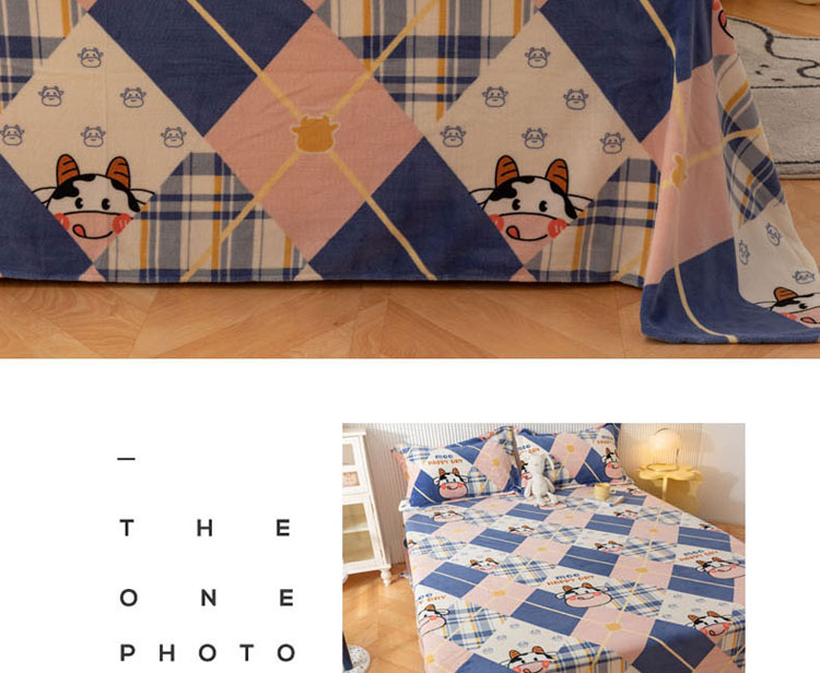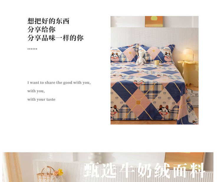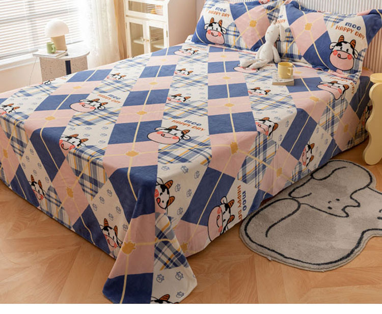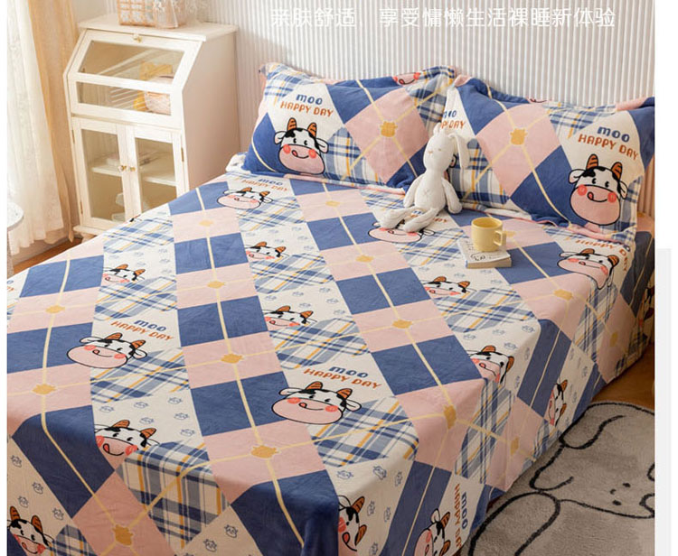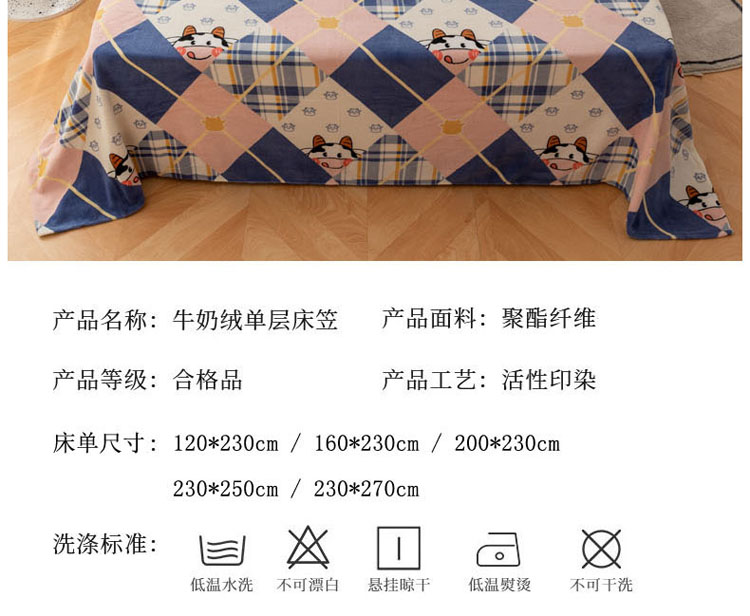 商品名称:梦家居 2022新款秋冬新款牛奶绒单床单 格子奶牛