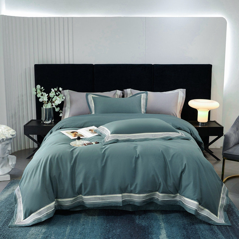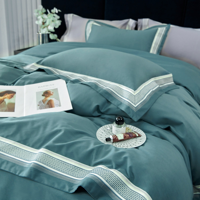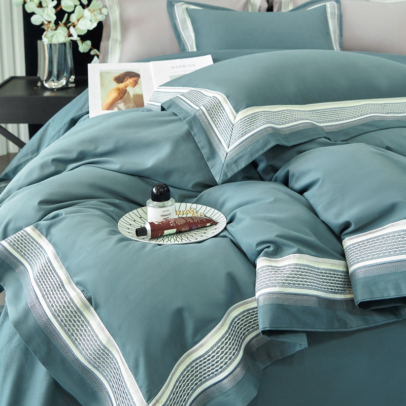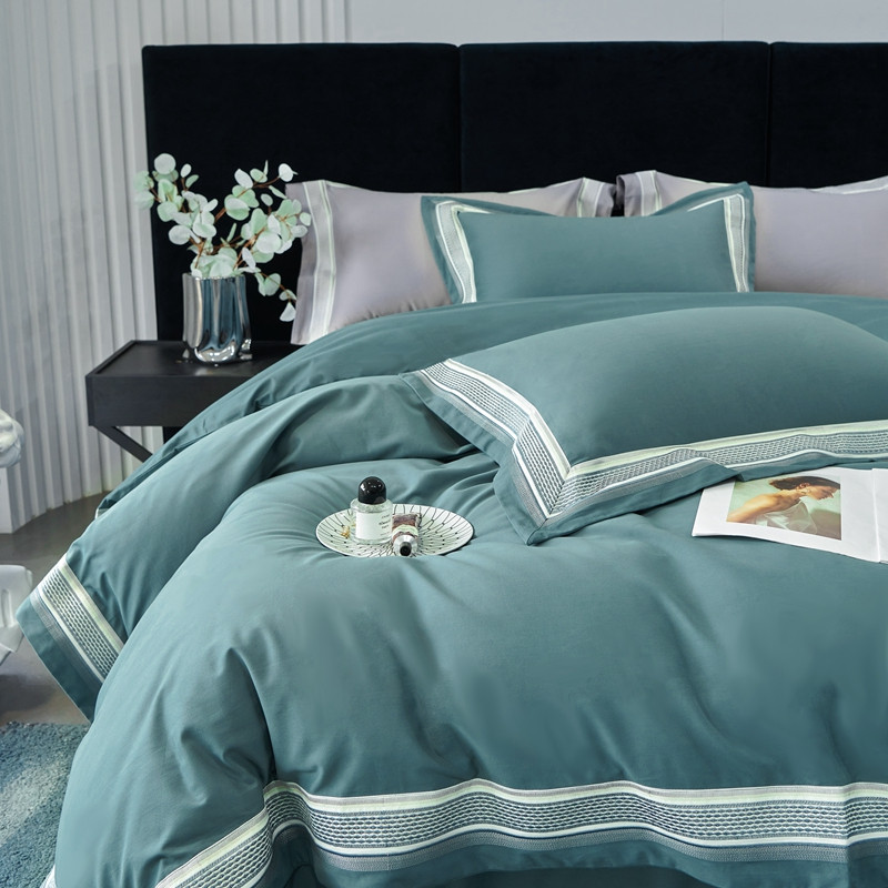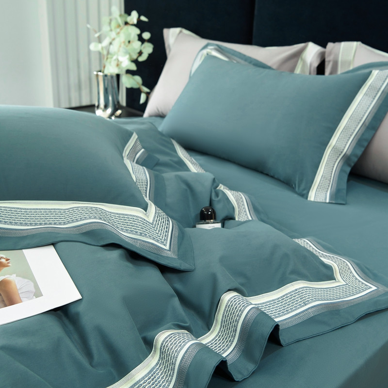 总榻尚家居 2023新款格瑞斯系列100贡缎长绒棉四件套工艺款四件套,格瑞斯紫,格瑞斯白,格瑞斯灰,格瑞斯蓝
