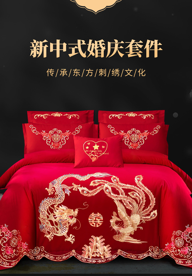(总)慕她 202560S长绒棉刺绣婚庆四件套-龙凤良缘,龙凤良缘