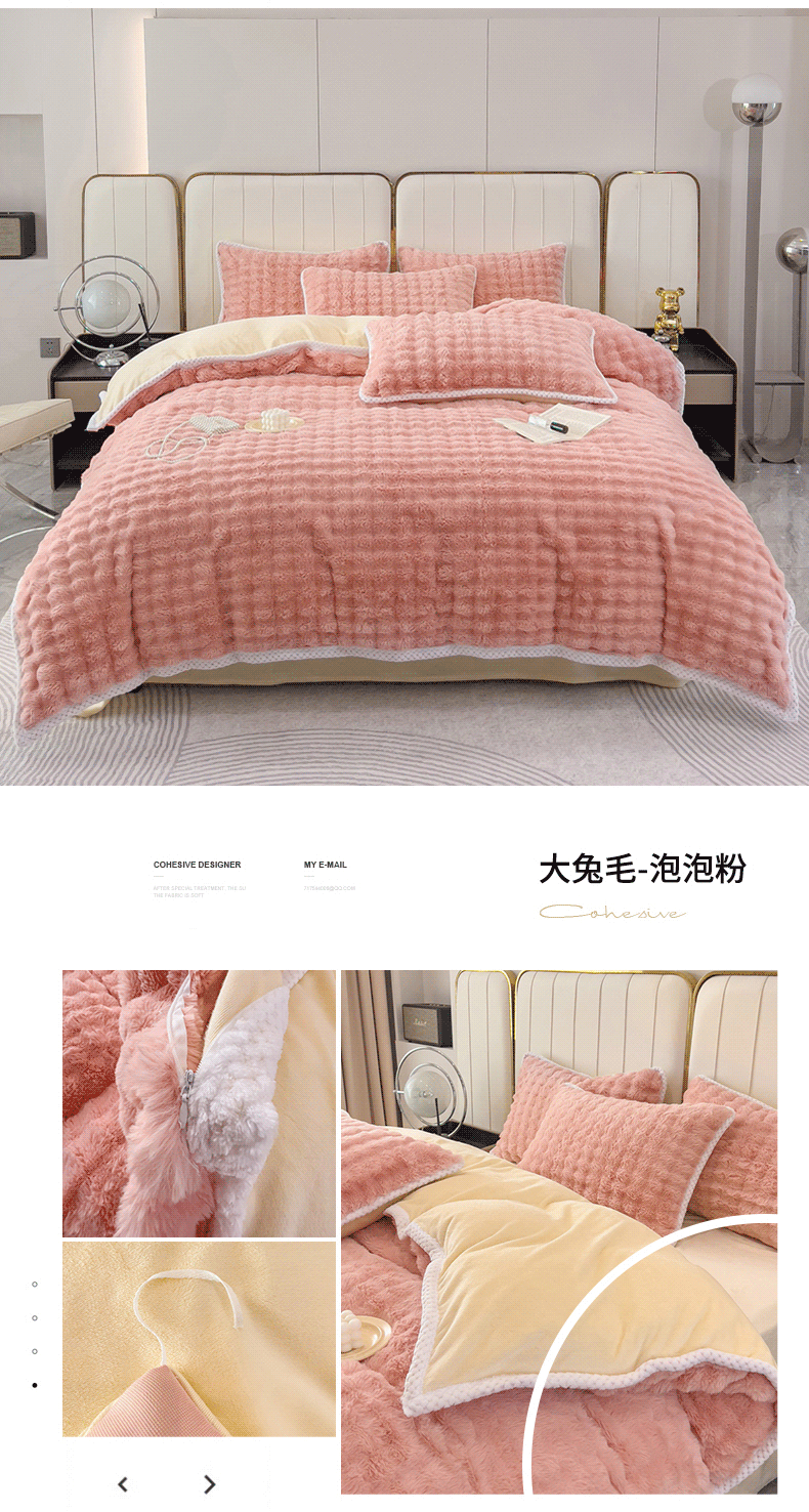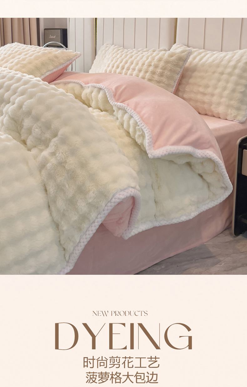 (总)菲儿家纺 2023新款大兔毛绒立体剪花四件套,大兔毛-泡泡白,大兔毛-泡泡粉,大兔毛-泡泡绿,大兔毛-条纹白,大兔毛-条纹粉