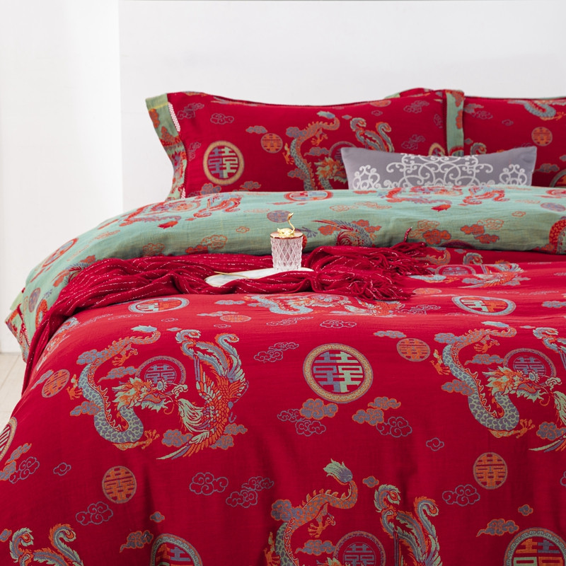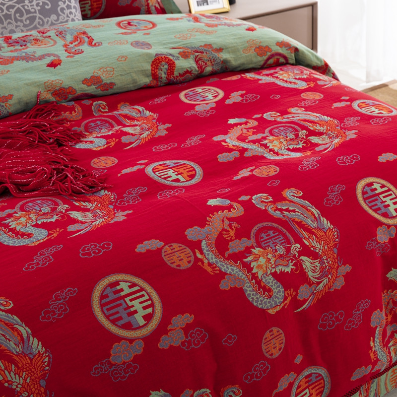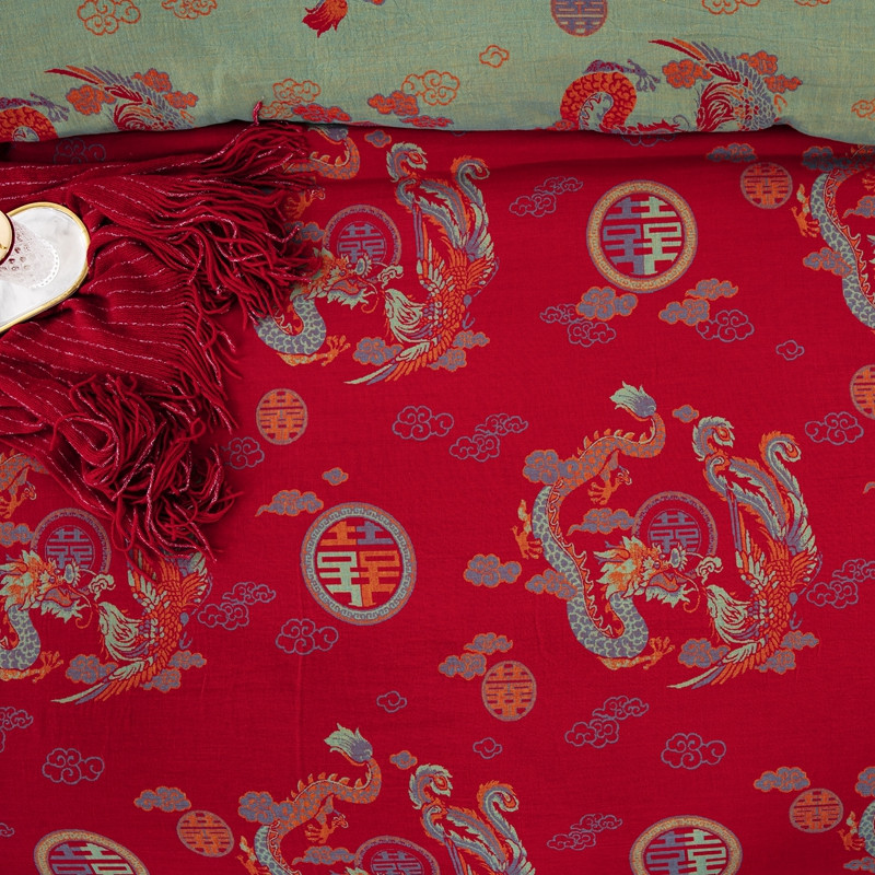 商品名称:双层纱家居 2023新款红色镂空款双层纱四件套 大红龙凤呈祥