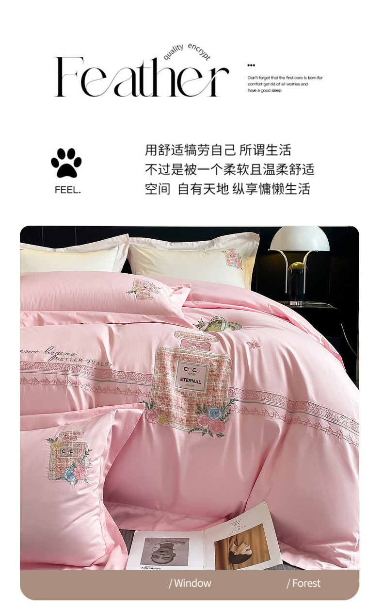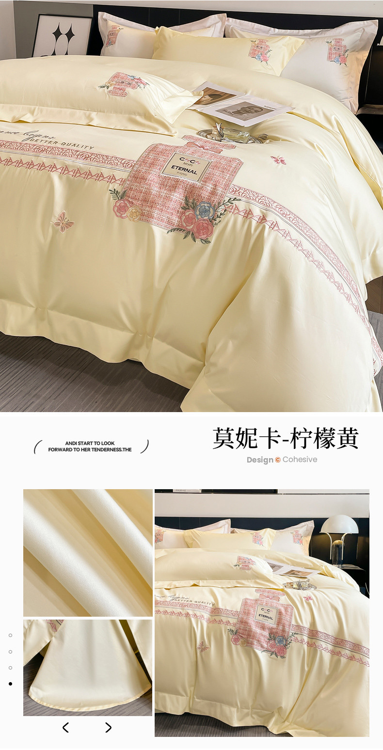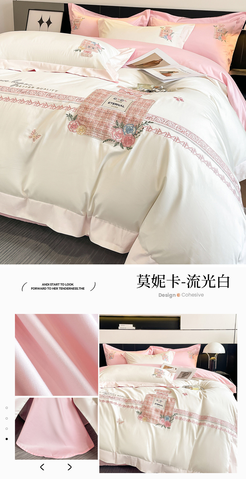 当前位置: 91家纺网 > 商品网购 > 床品套件 > 四件套 > 全棉普通四件套 > (总)星蕴家纺 2024新款喷气全棉贴布绣花四件套-莫妮卡