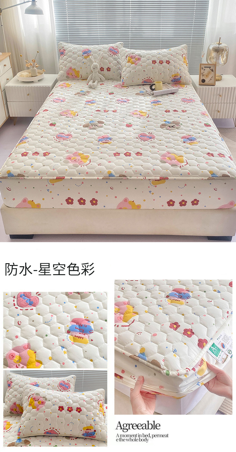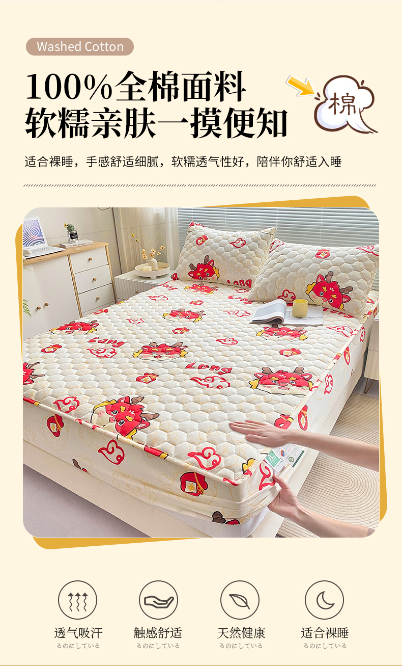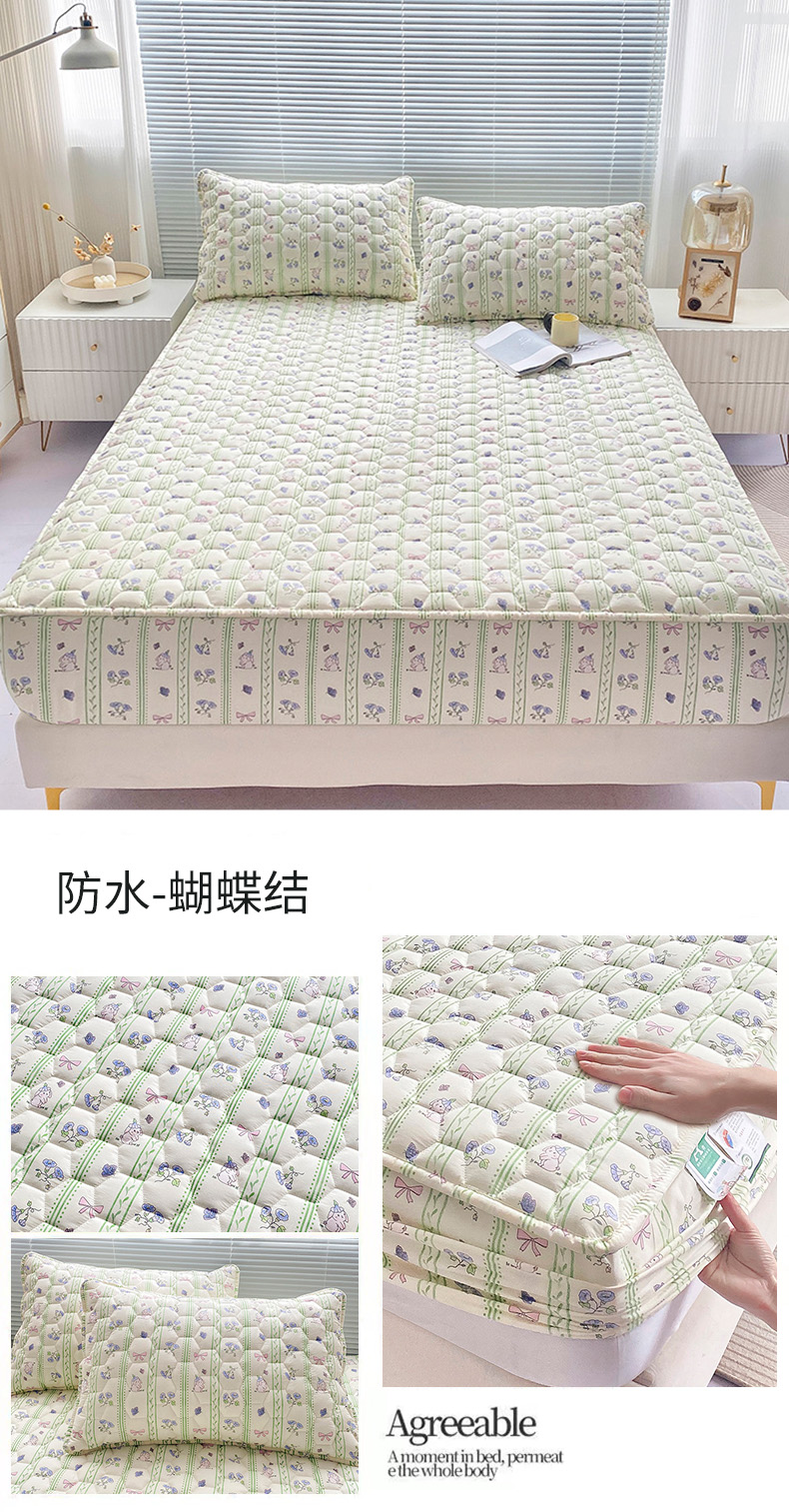 (总)九亭家纺 2024新款A类抗菌全棉夹棉防水床笠