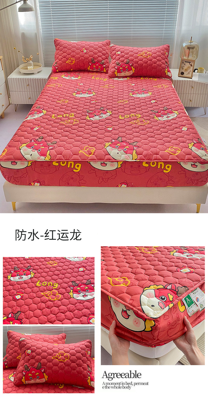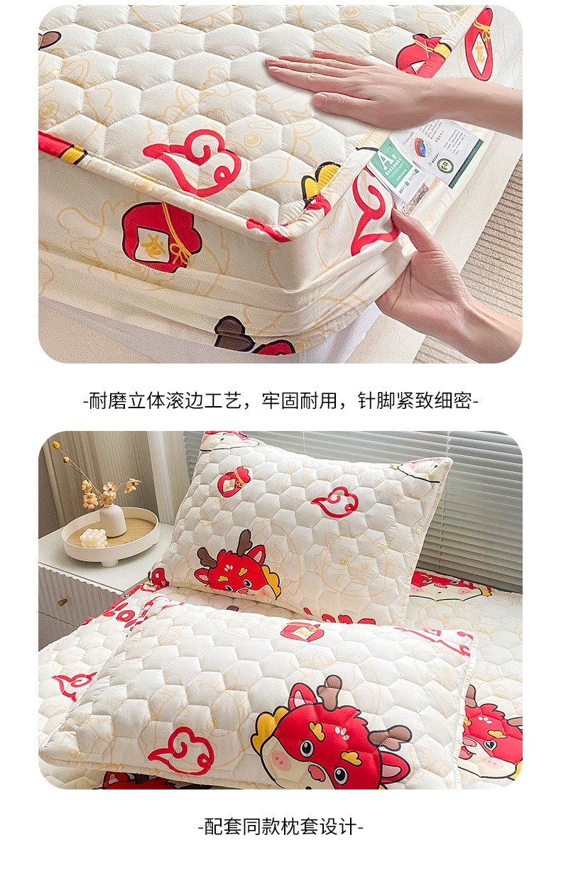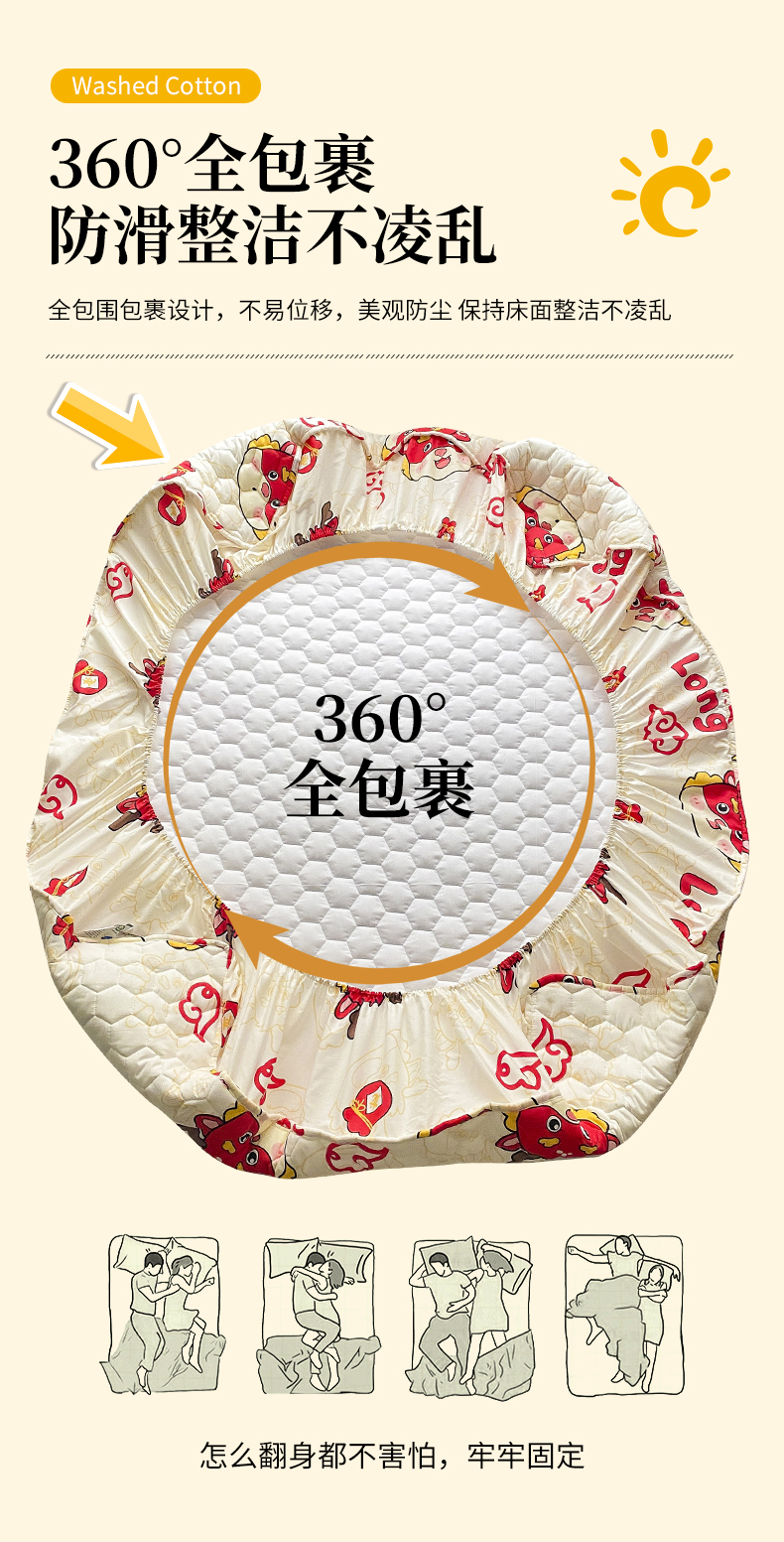 (总)九亭家纺 2024新款A类抗菌全棉夹棉防水床笠