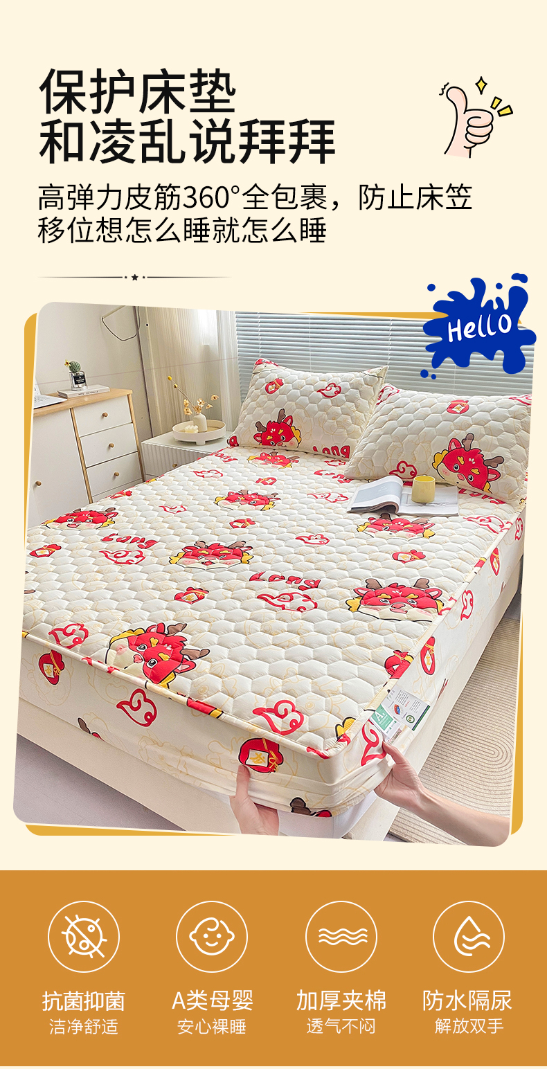 商品名称:(总)九亭家纺 2024新款A类抗菌全棉夹棉防水床笠
