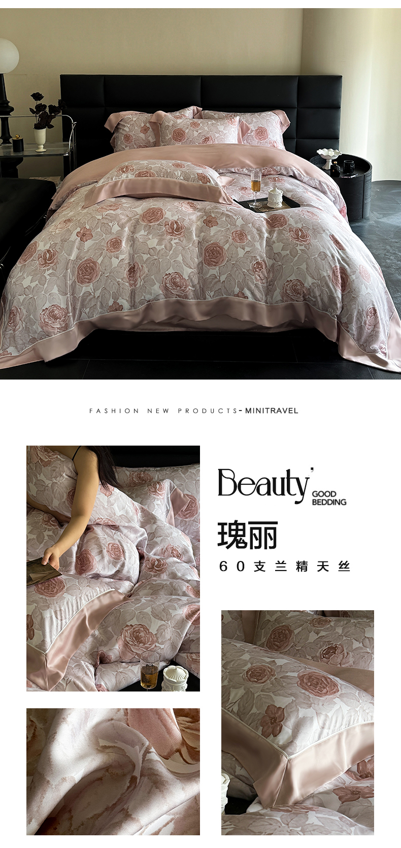 娇逸家居 2025新款60支兰精天丝数码印花宽边四件套 瑰丽