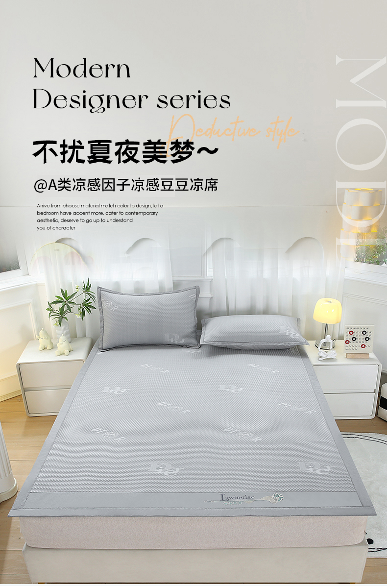 青雅 2025新款凉感因子凉豆豆凉席 字母-灰