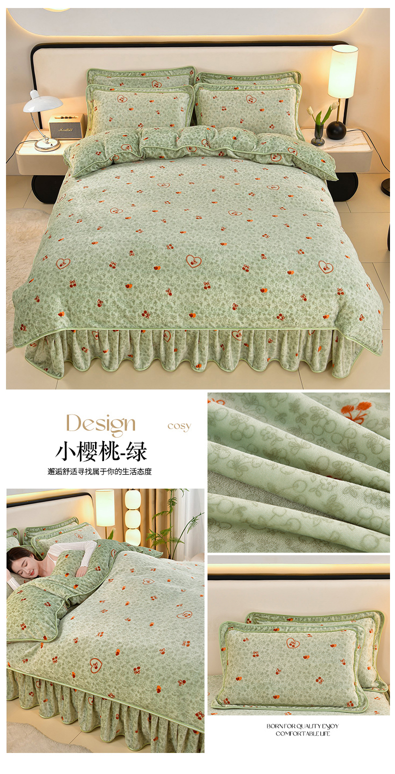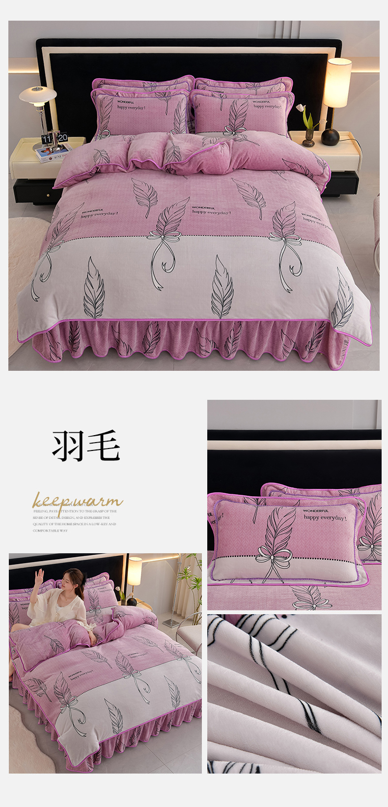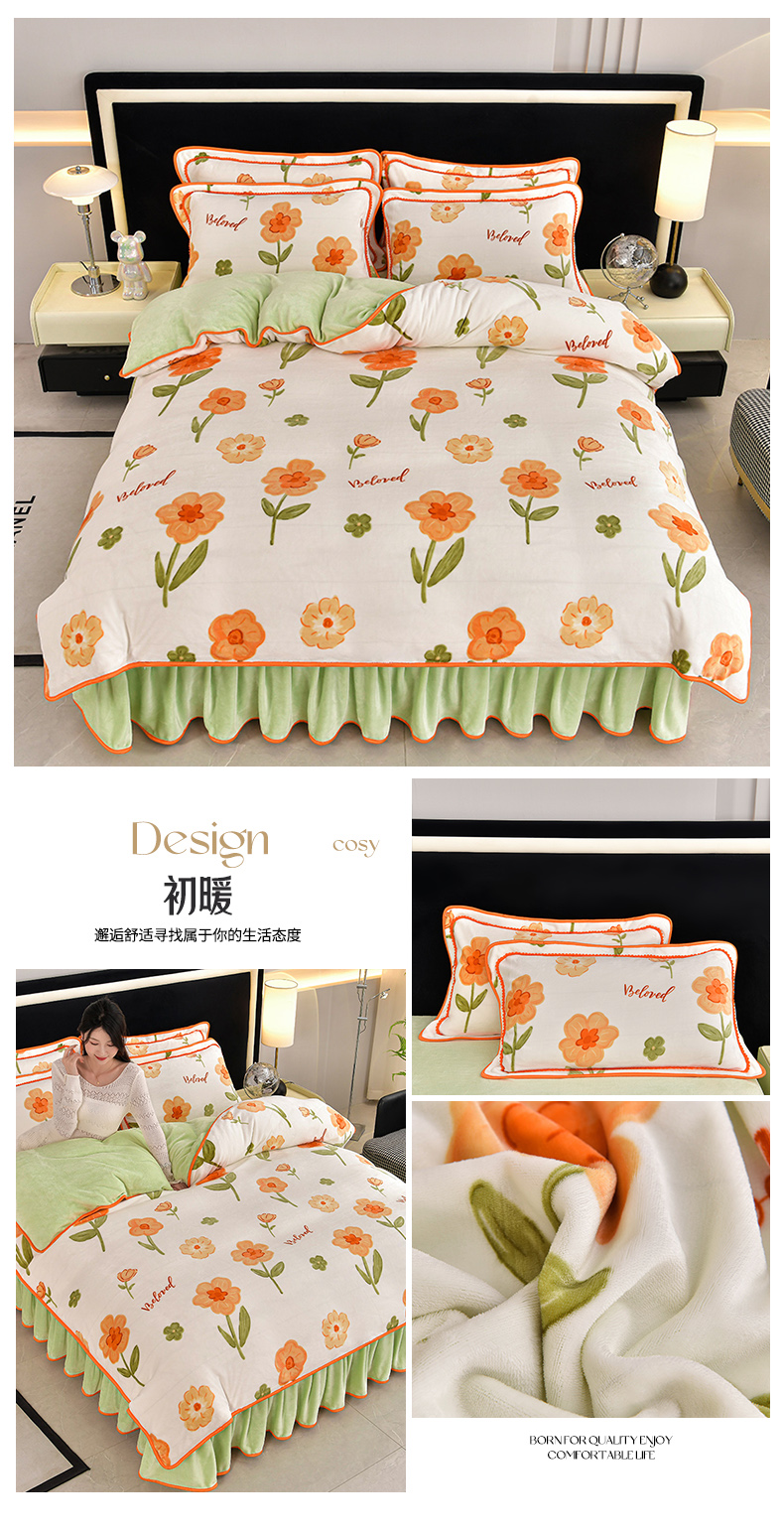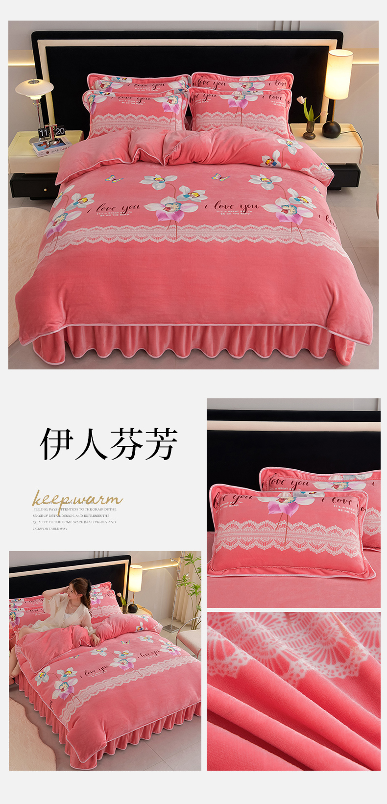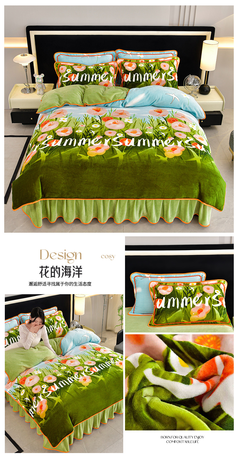 (总)诺梵家纺 2025直播7斤牛奶金貂绒四件套法莱绒珊瑚绒床裙款,爱丽丝,含苞待放,秋意绵绵,花海绿,欢喜,秘境,幸福树粉,幸福树黄,悠闲时光(有三件套),花的海洋,卡洛斯