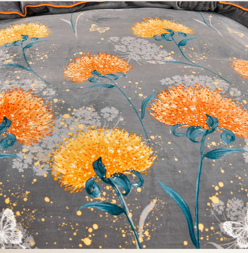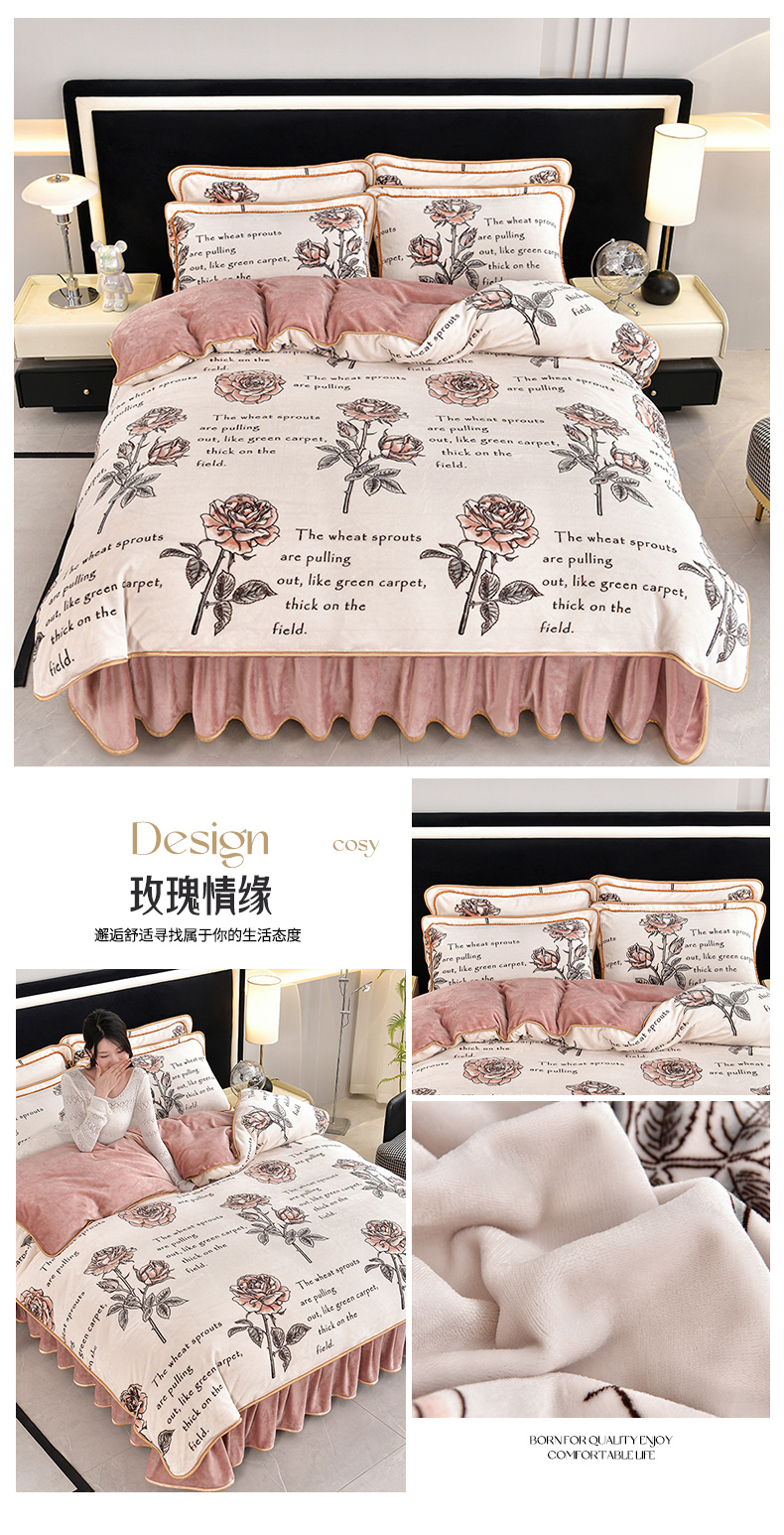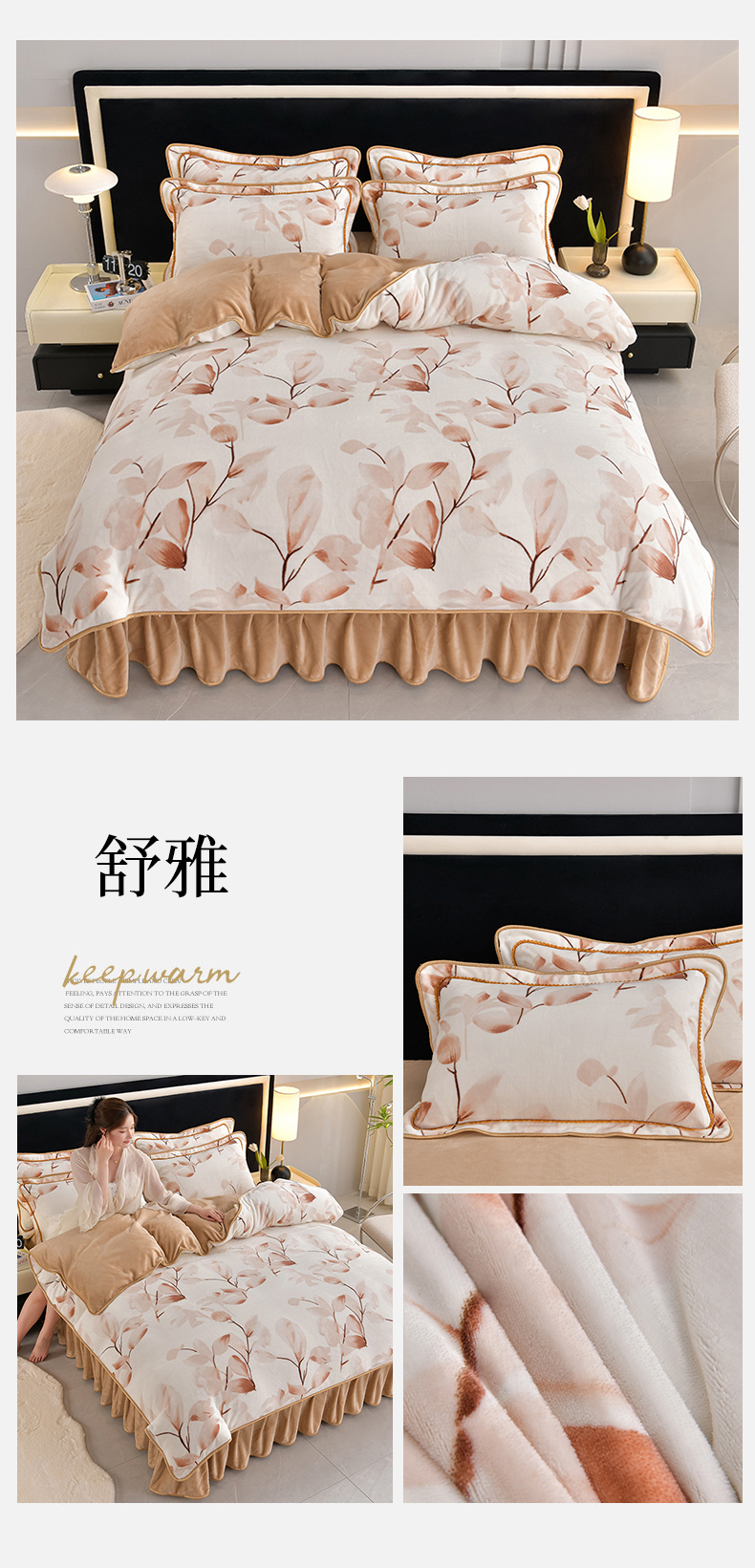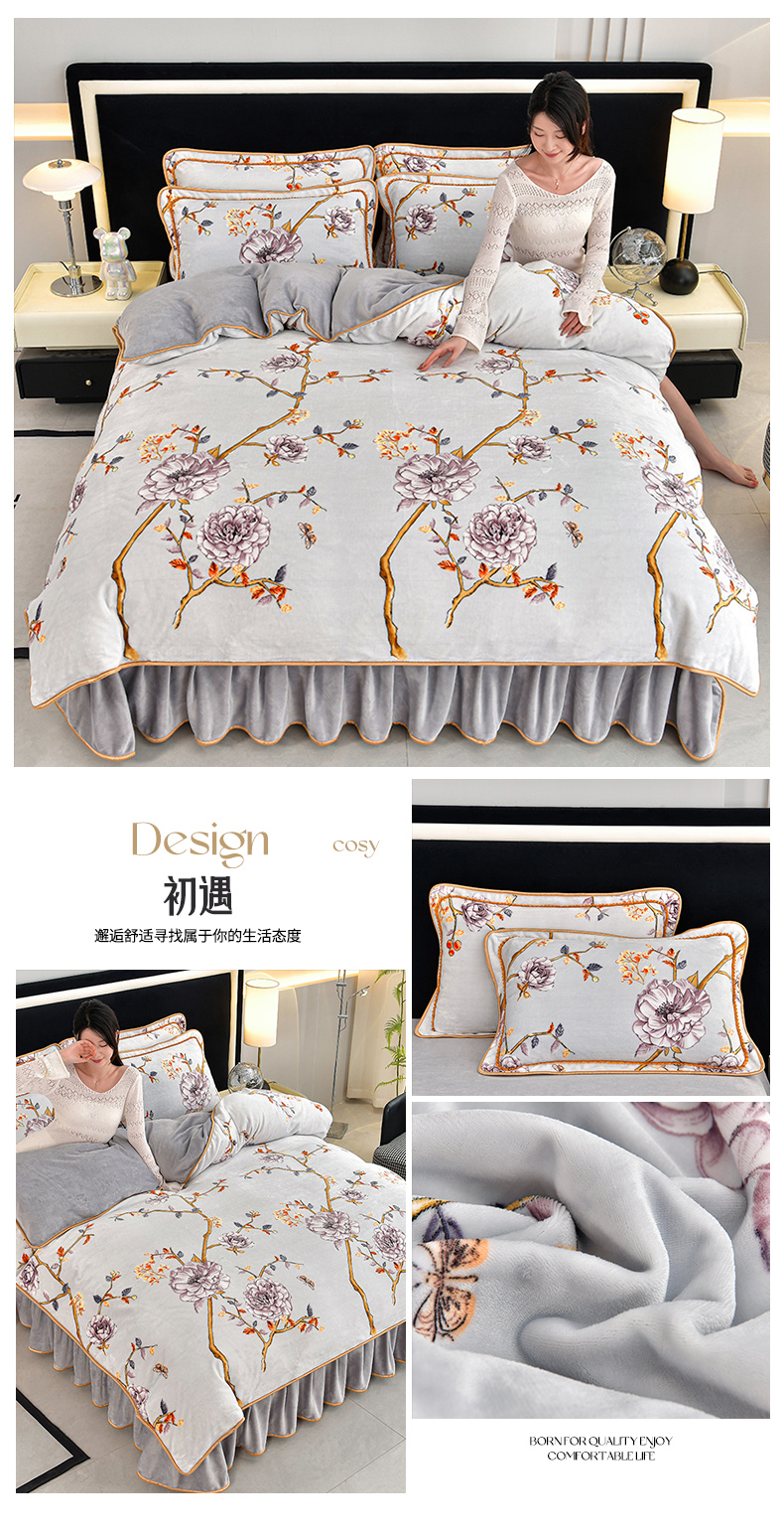 诺梵家纺 2025新款8斤加厚保暖金貂绒牛奶绒印花四件套 花枝如梦,花枝如梦