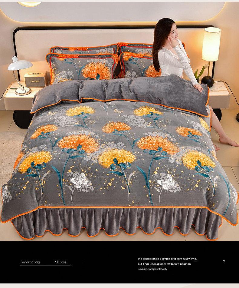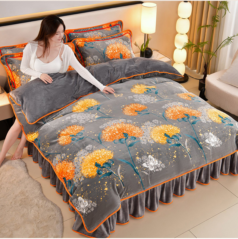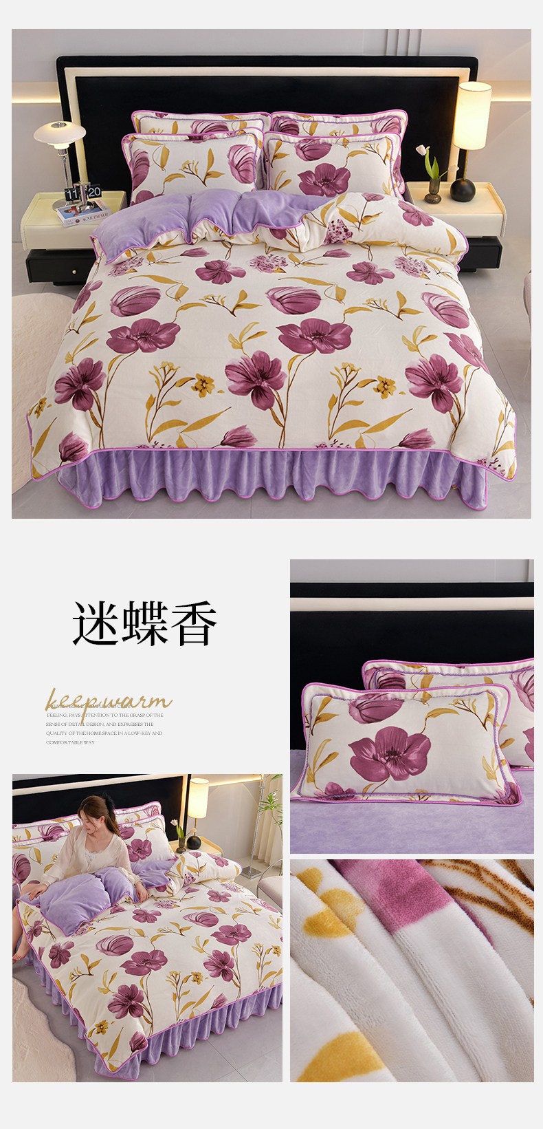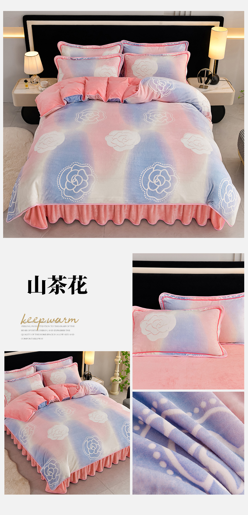 诺梵家纺 2025新款8斤加厚保暖金貂绒牛奶绒印花四件套 花枝如梦,花枝如梦