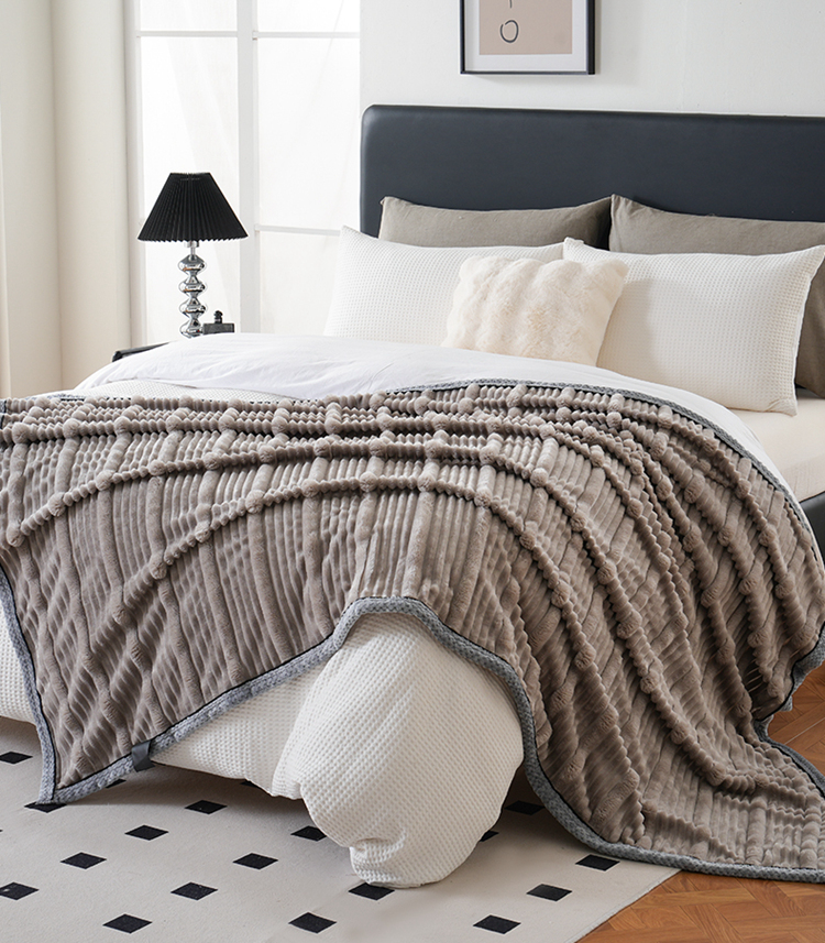 (总)巴木赫 2025新款如意阁塔芙绒毯子毛毯, 银灰,白色,粉色,咖啡,卡其,绿色,深灰,雾蓝,紫色