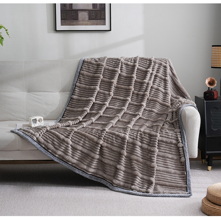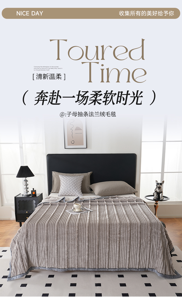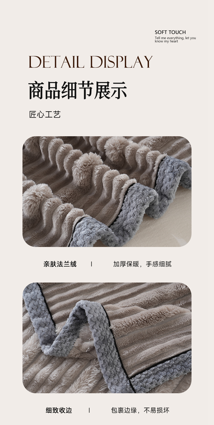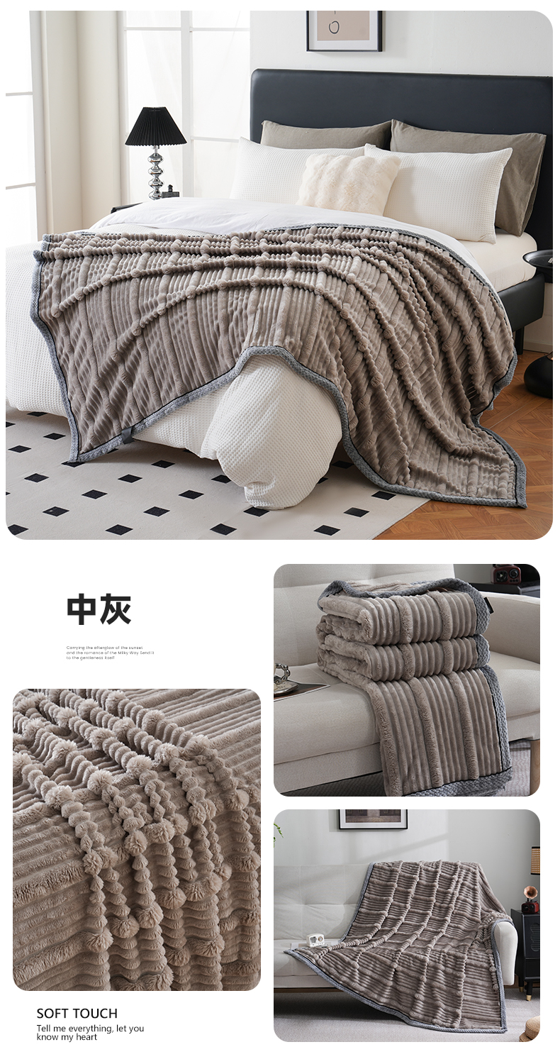 商品名称:巴木赫 2024新款子母抽条兔毛绒绒毯毯子 中灰