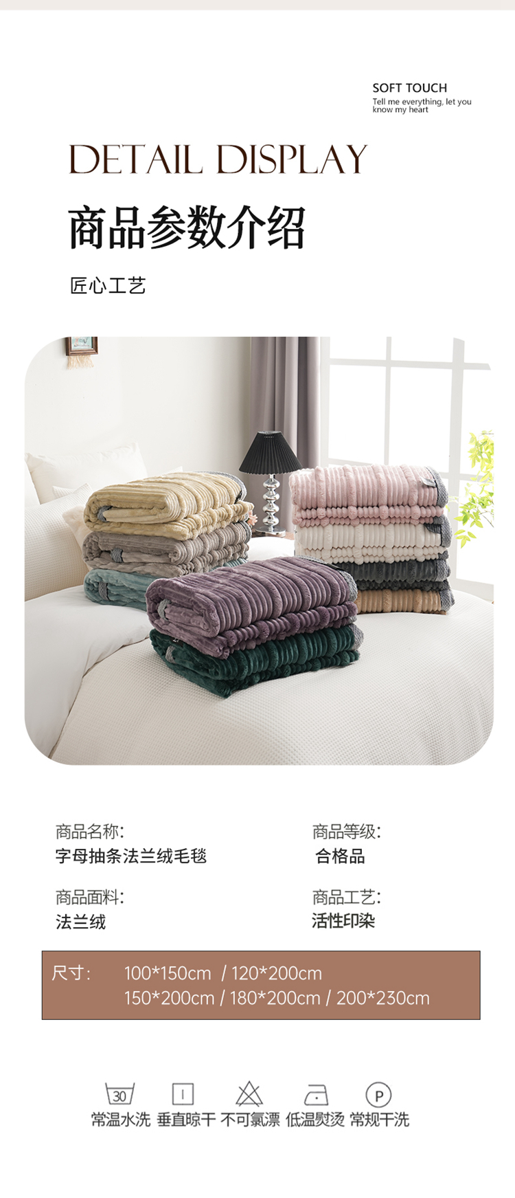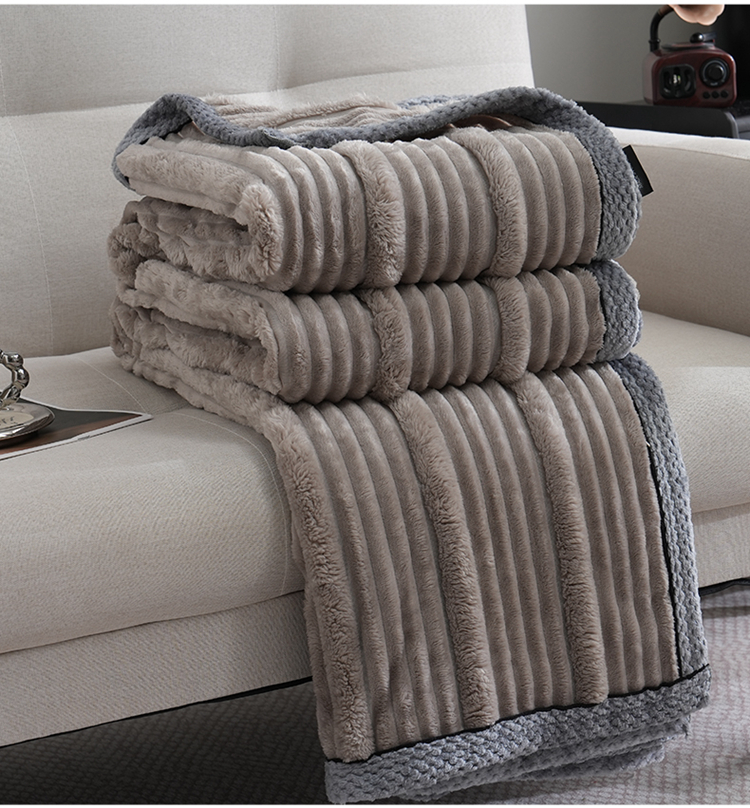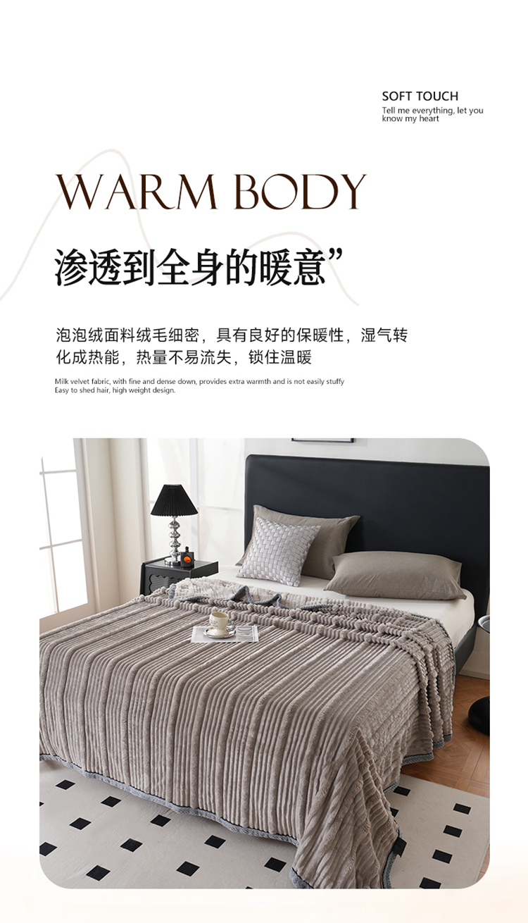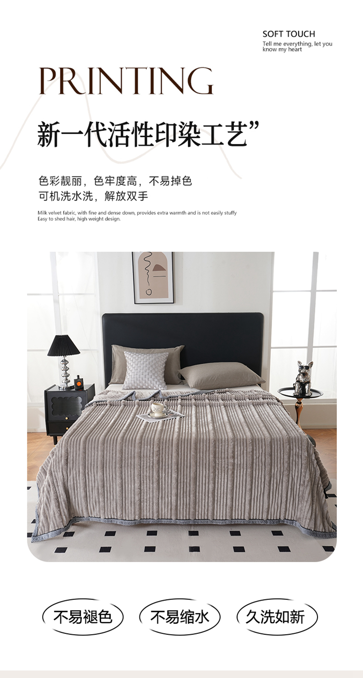 (总)巴木赫 2024新款子母抽条兔毛绒绒毯毯子,宾利蓝,粉色,卡其,墨绿,奶白,葡萄紫,浅驼,深灰,中灰