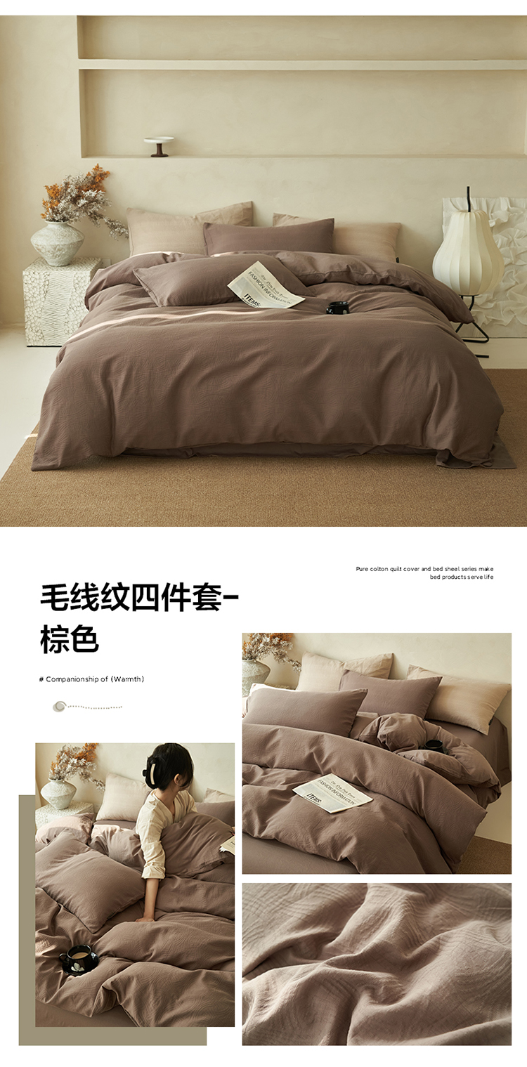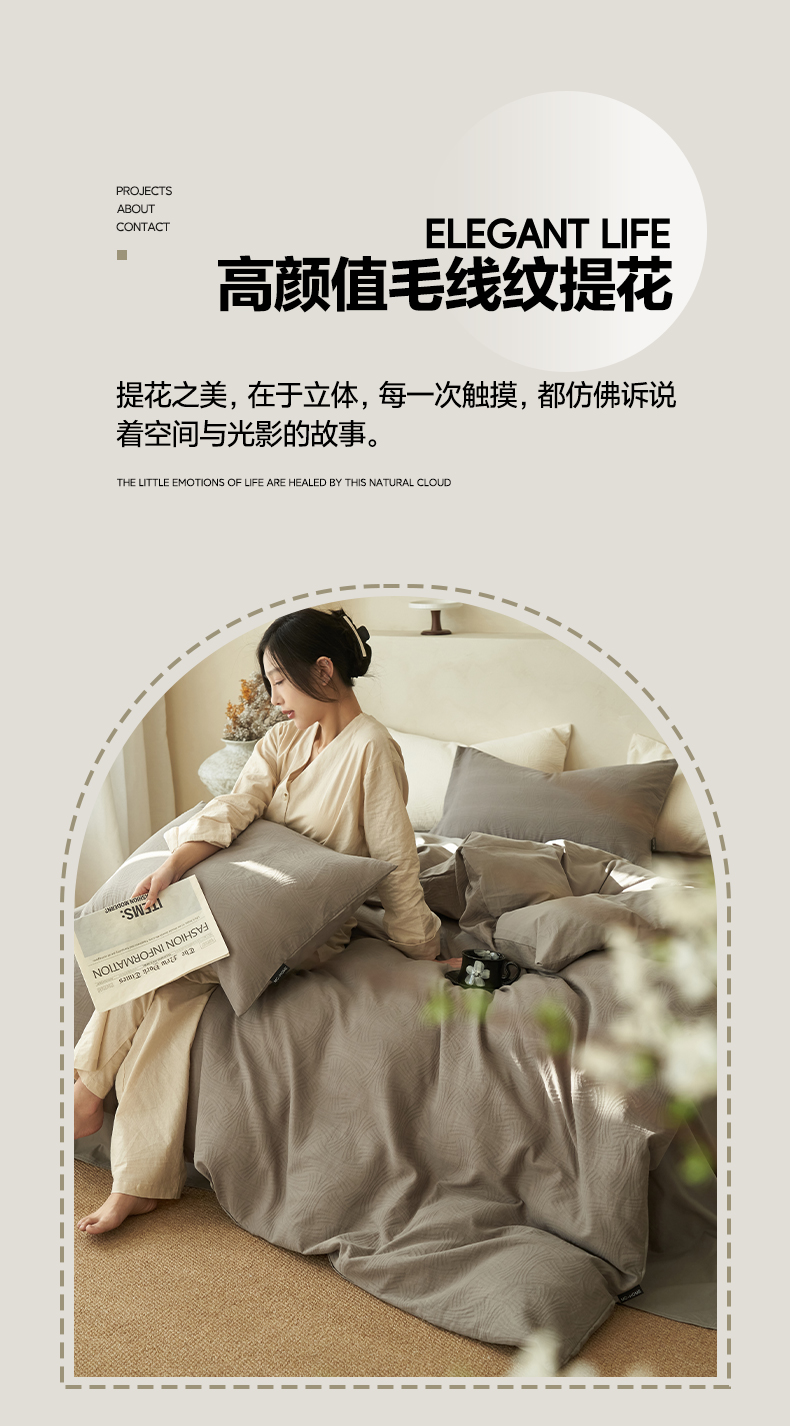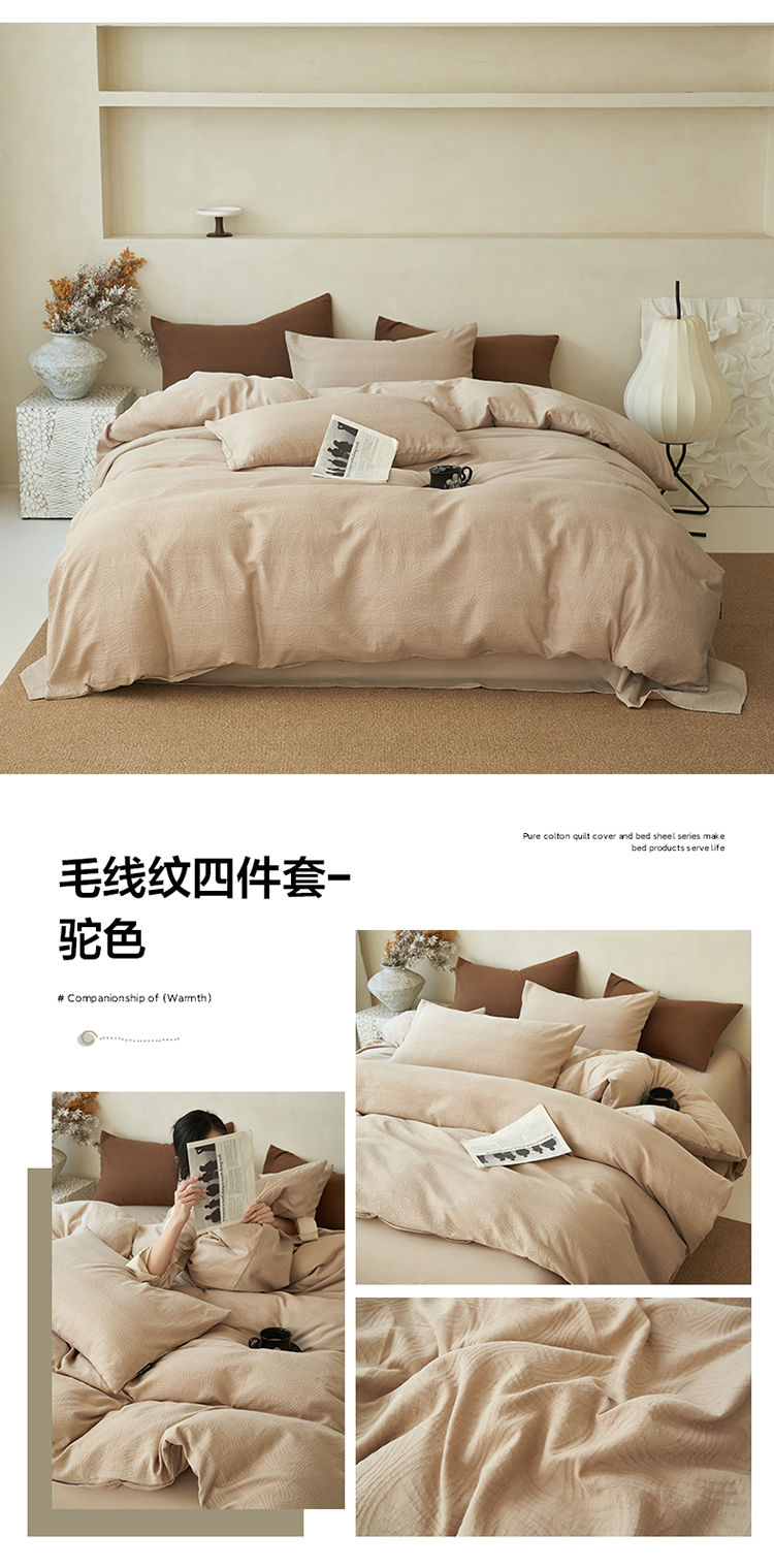 商品名称:2025新款纯棉水洗棉三层线球纹提花四件套 毛线纹四件套-浅灰