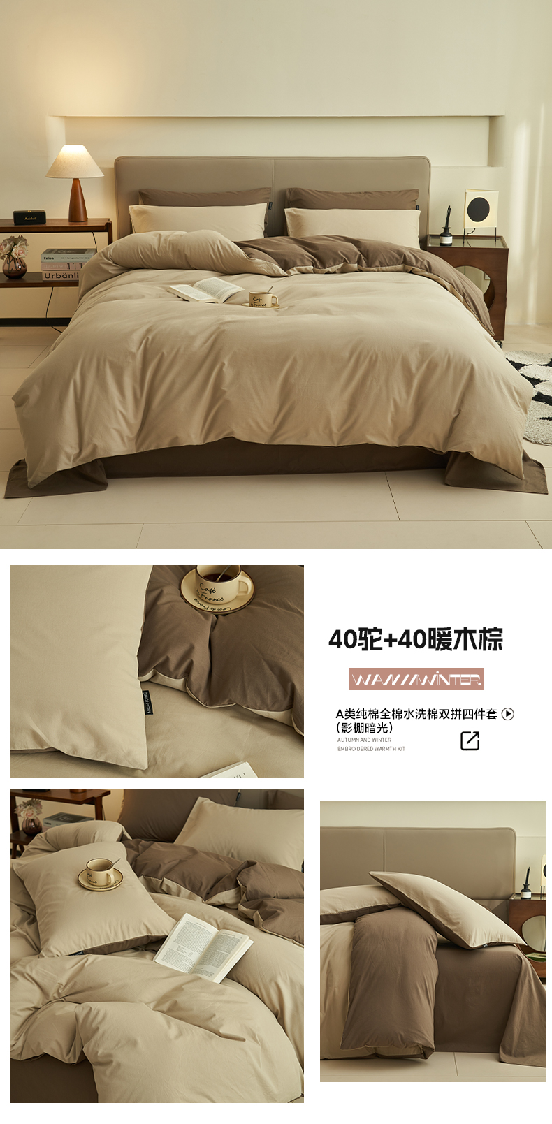 (总)2025新款全棉13372水洗棉双拼四件套(影棚暗光),天青韵白+拾柴,40暖木棕+拾柴,40驼+40暖木棕,安然蓝+毛毯灰,暗木幽香+宝藏灰,暗香紫砂+40驼,布鲁兰+拾柴,春风十里+浮生一梦,豆沙+毛毯灰,扶苏绿+毛毯灰,果绿+墨子绿,礁石灰+毛毯灰,漫雾+古巴砂,毛毯灰+宝藏灰,蘑菇黄+天青韵白,碳烤栗子+拾柴,天蓝+米黄,天青韵白+一念秋风,一叶知秋+袅袅灰,樱木粉+一念秋风