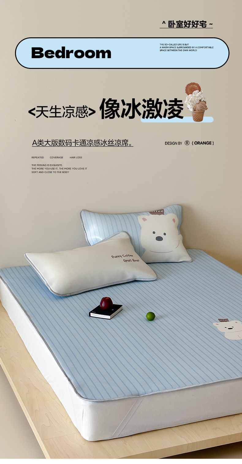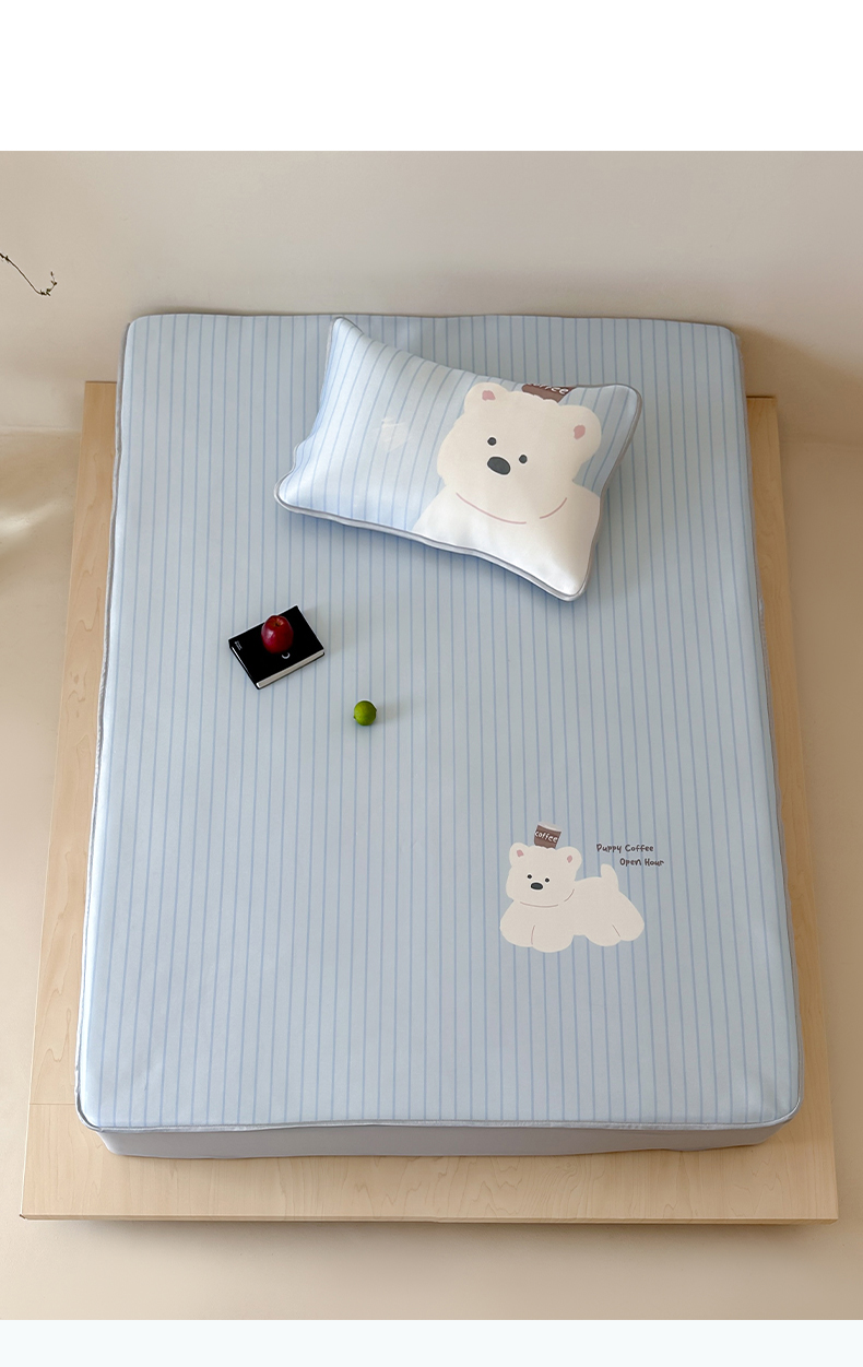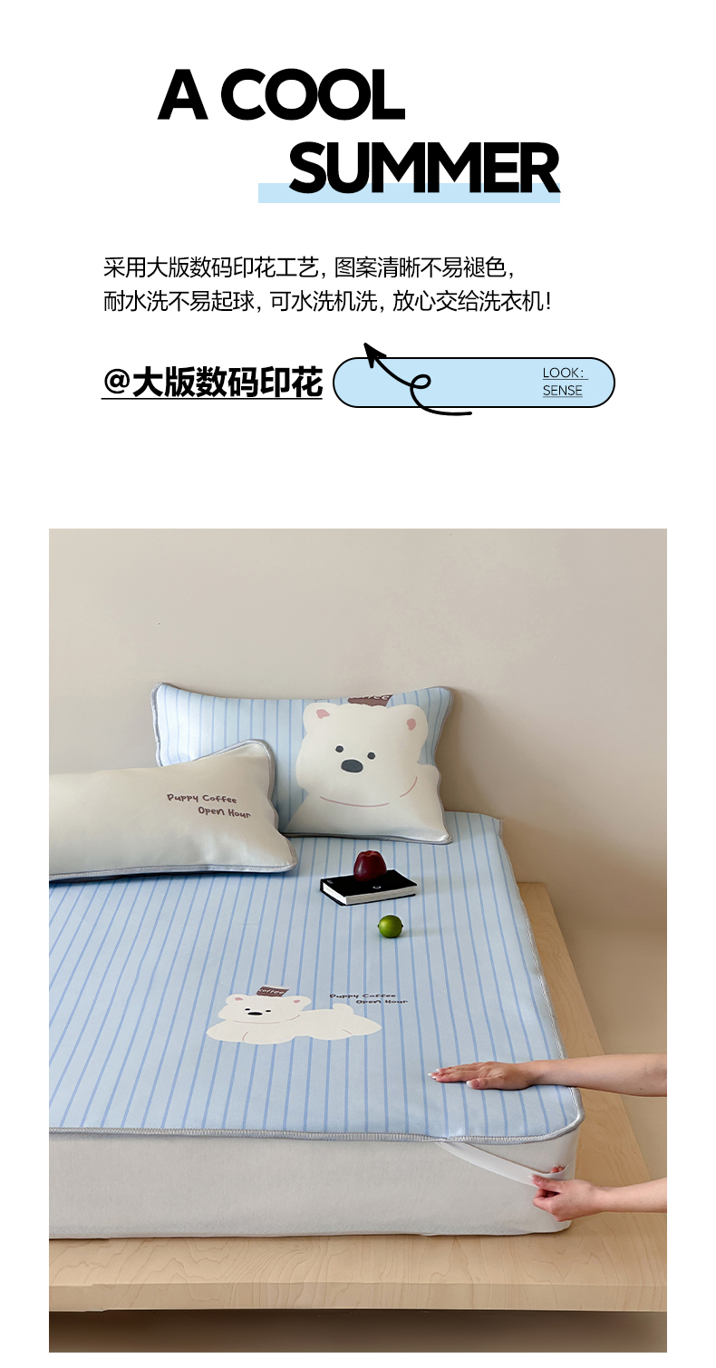 如一2025A类ins大版数码卡通印花冰丝凉感席咖啡狗-床席