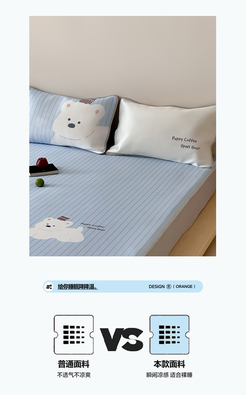 • 91家纺网 家纺一手货源 找家纺 如一2025A类ins大版数码卡通印花冰丝凉感席咖啡狗-床席