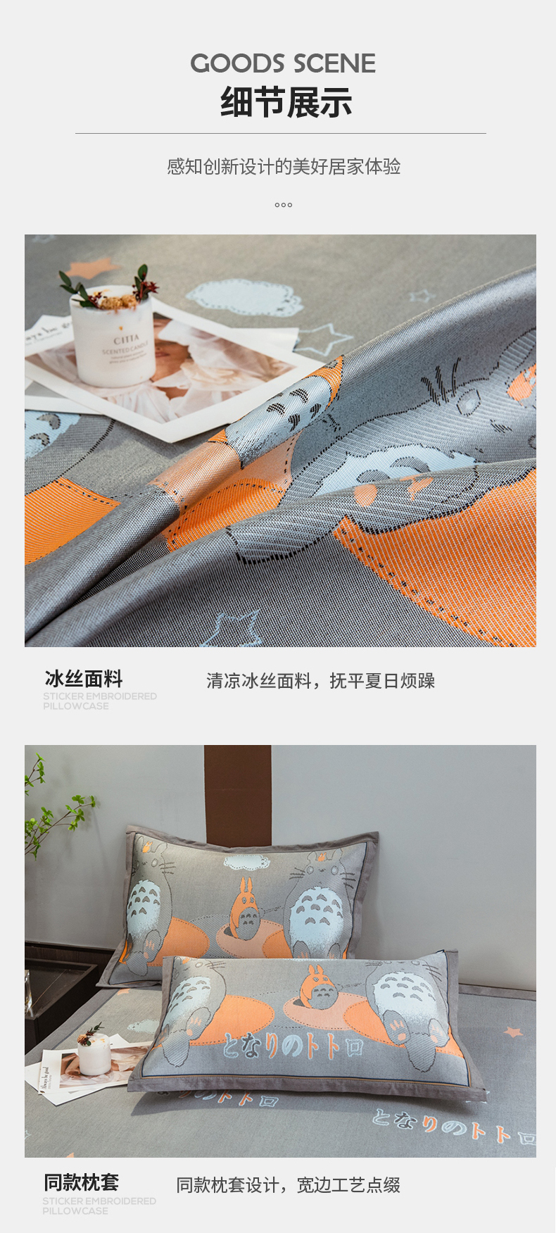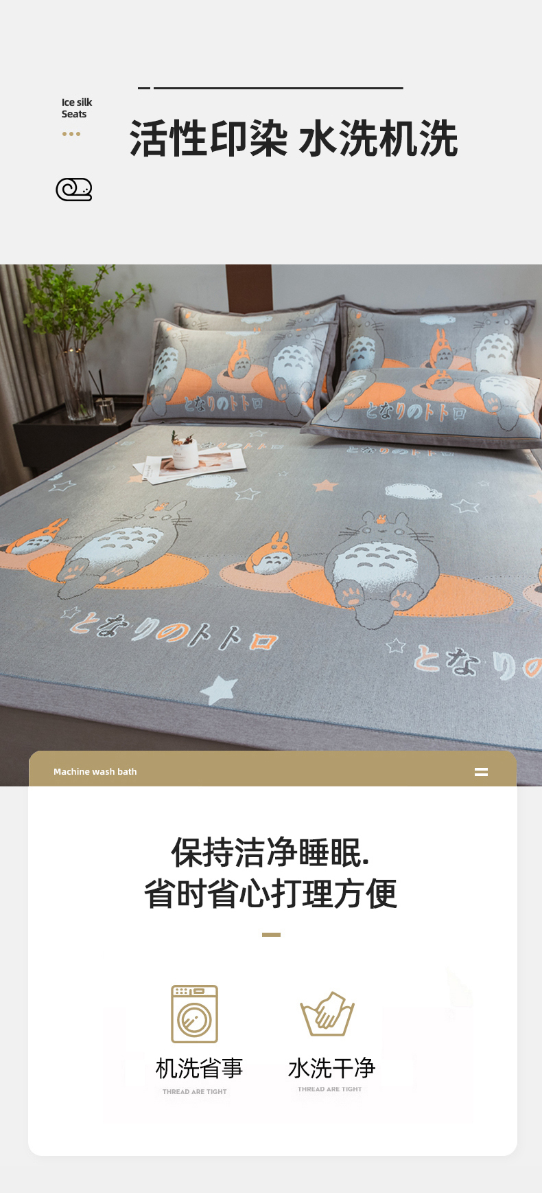 商品名称:全季家居 2025新款900D高精密三色纬提花冰丝凉席 床席-龙小猫-黄
