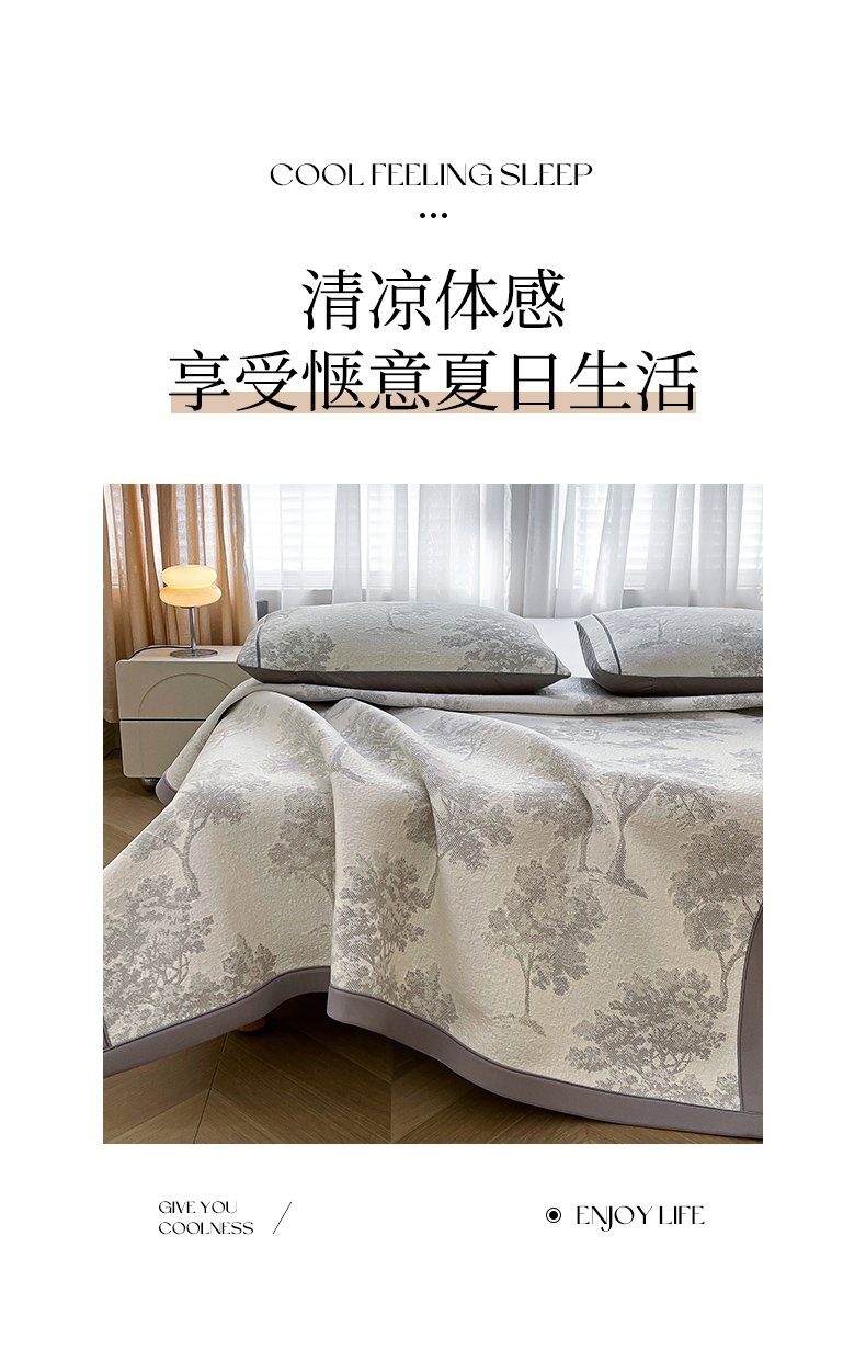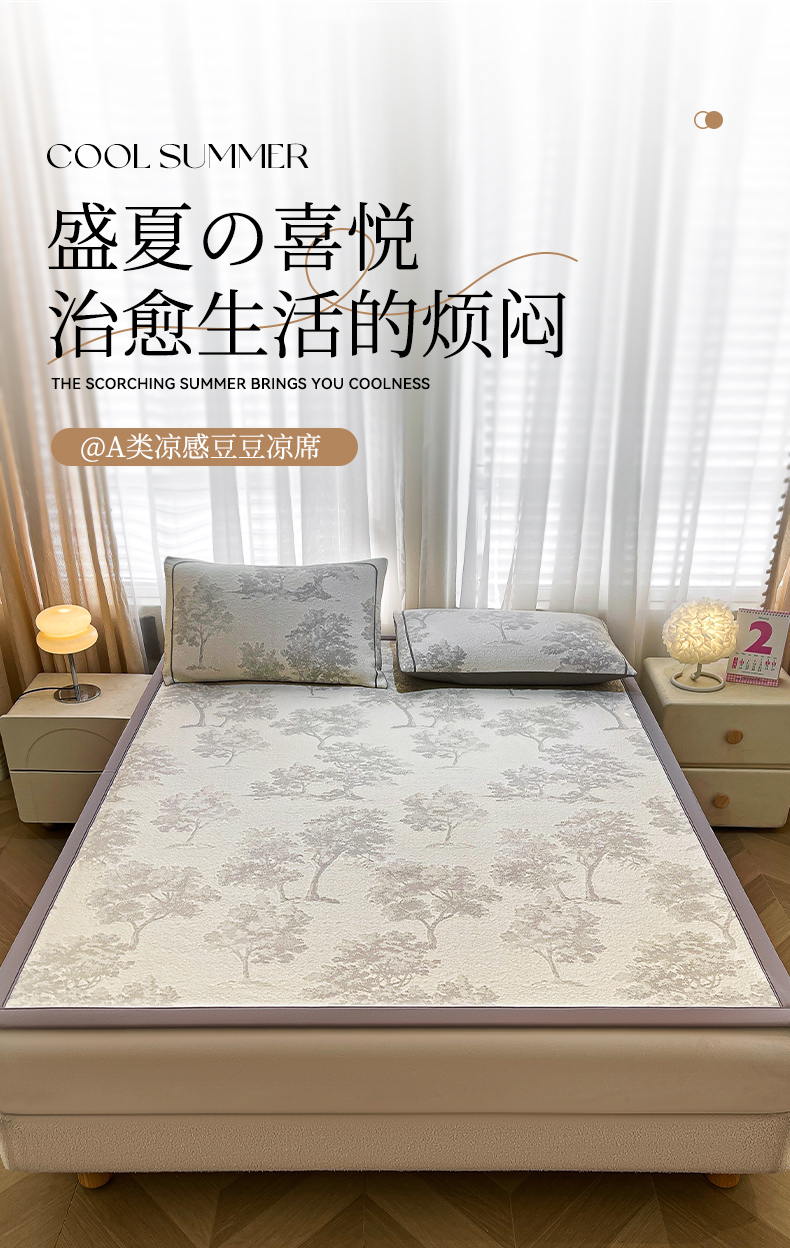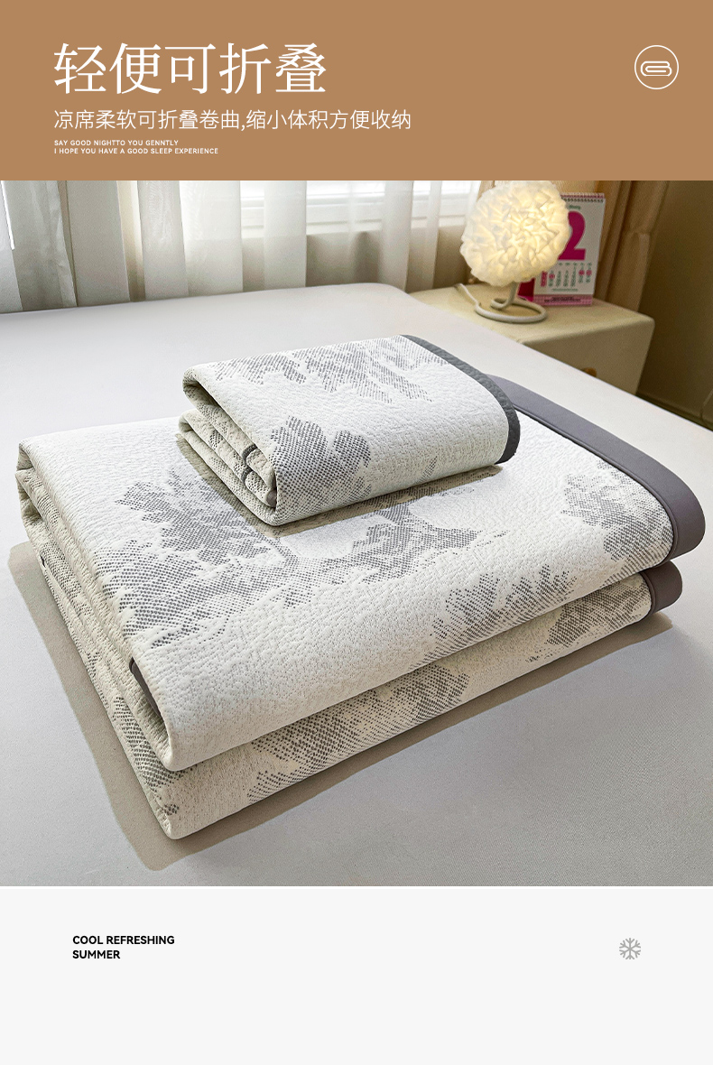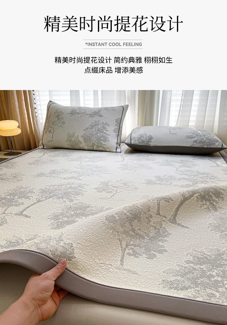 • 91家纺网 家纺一手货源 找家纺 全季家居 2025新款A类乙纶PE花卉轻奢提花系列凉豆豆席 床席款-迷雾森林-深棕
