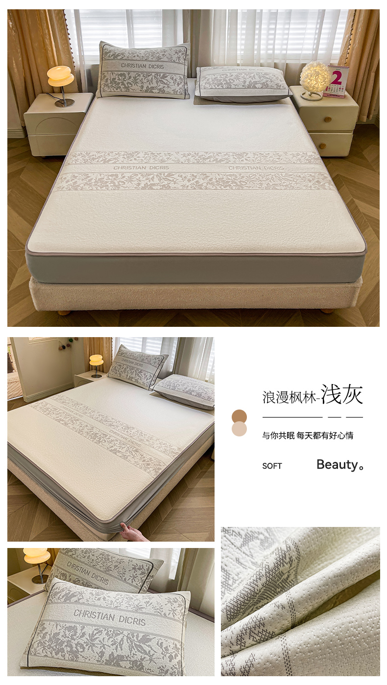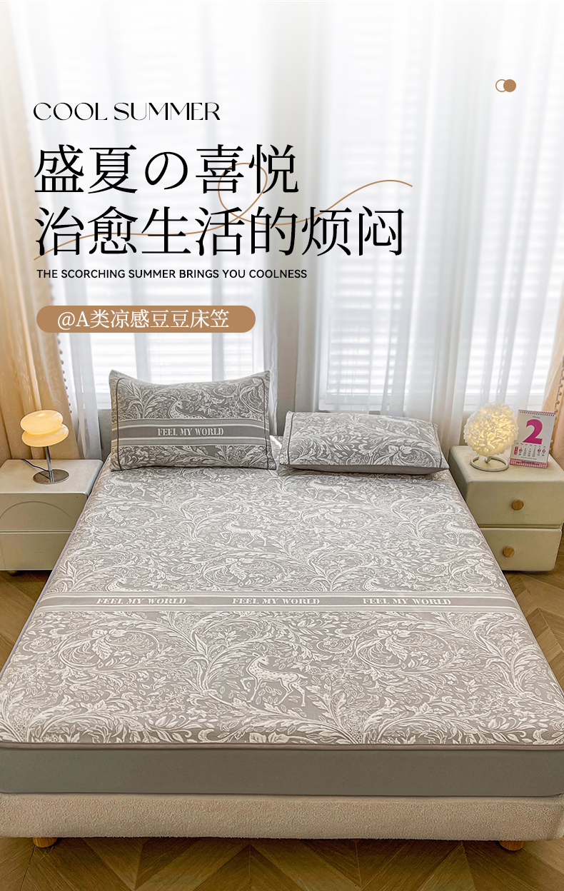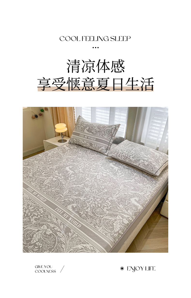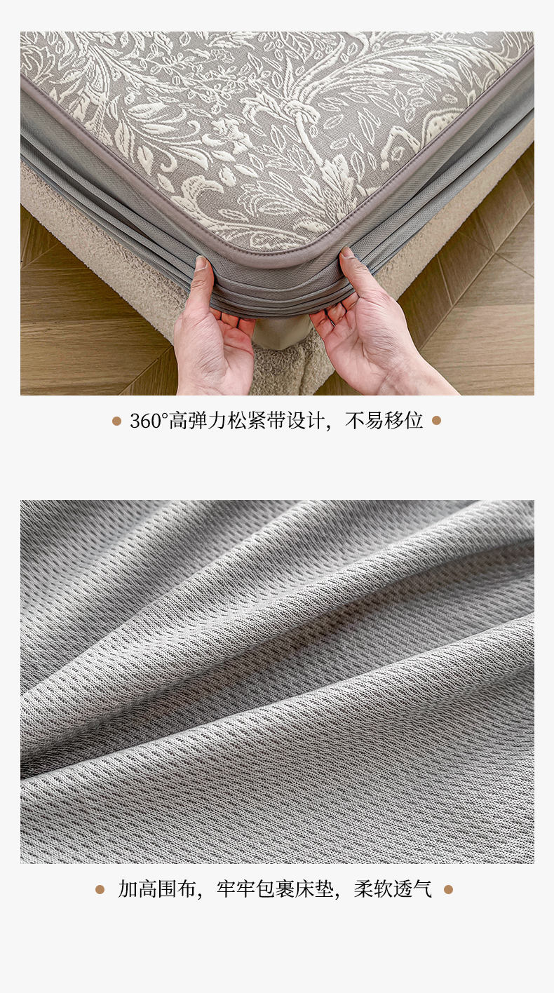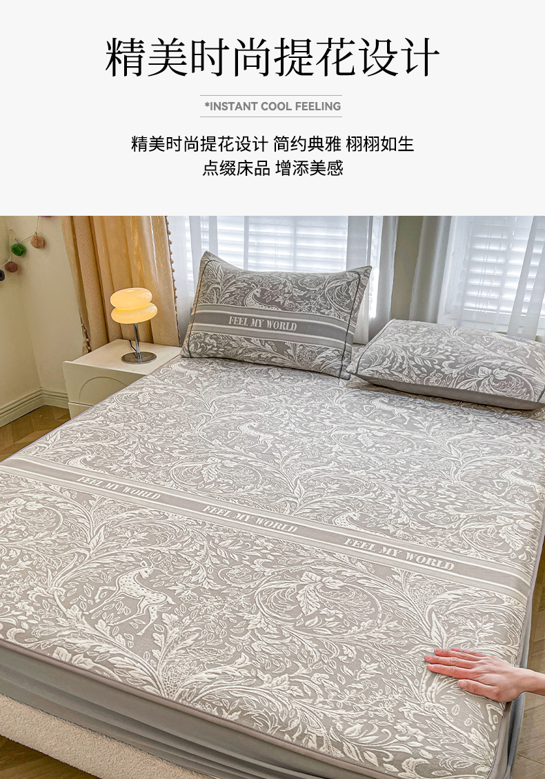 • 91家纺网 家纺一手货源 找家纺 全季家居 2025新款A类乙纶PE花卉轻奢提花系列凉豆豆席 床笠款-麋鹿花园-浅灰
