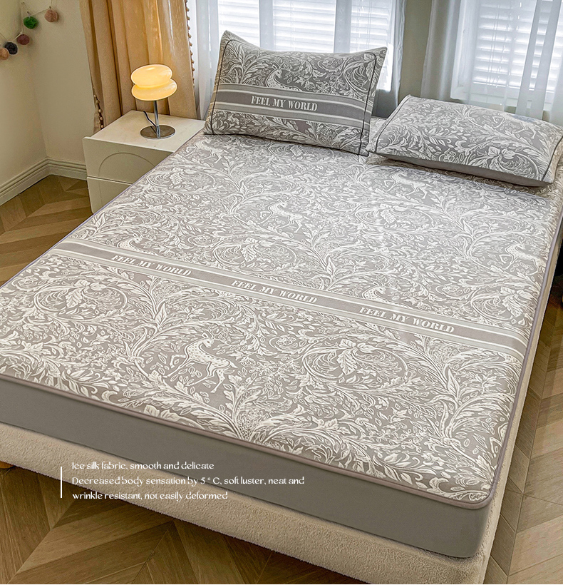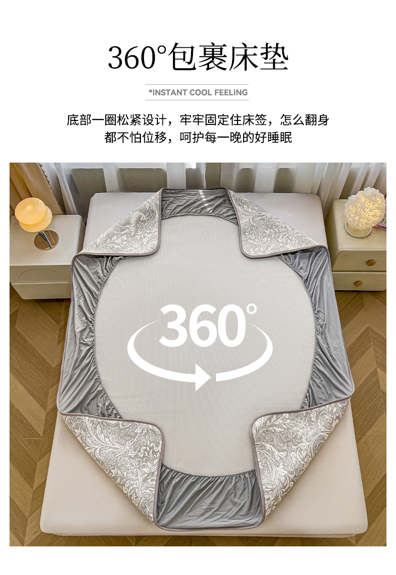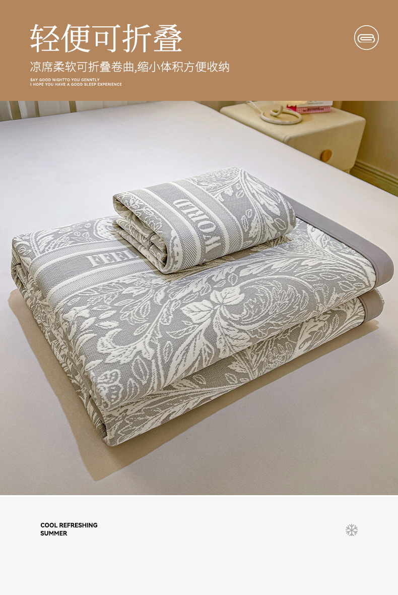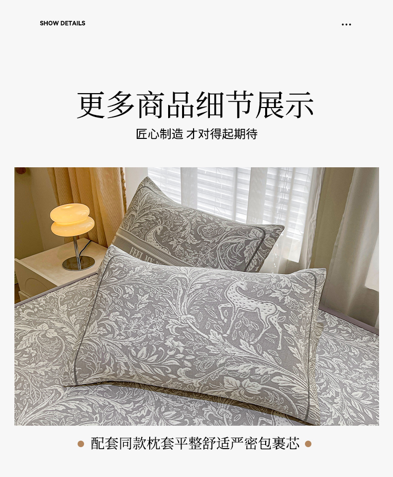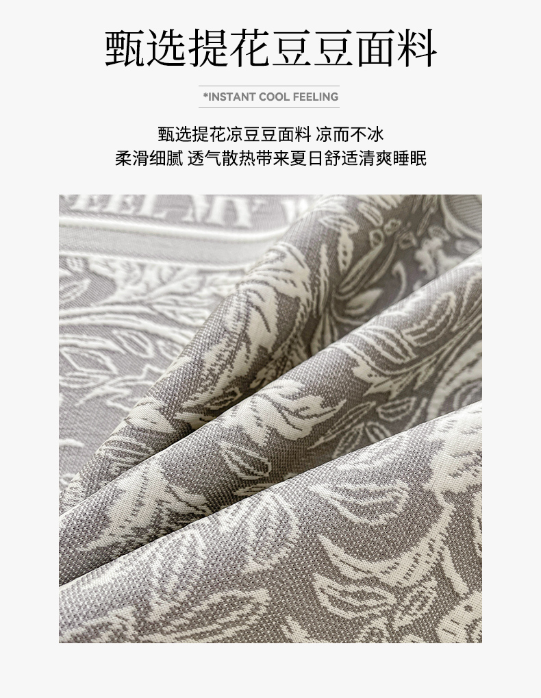 • 91家纺网 家纺一手货源 找家纺 全季家居 2025新款A类乙纶PE花卉轻奢提花系列凉豆豆席 床笠款-麋鹿花园-浅灰