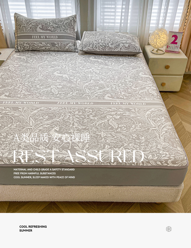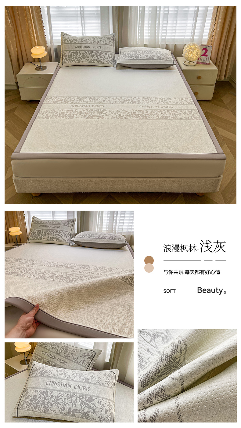 全季家居 2025新款A类乙纶PE花卉轻奢提花系列凉豆豆席 床笠款-麋鹿花园-浅灰
