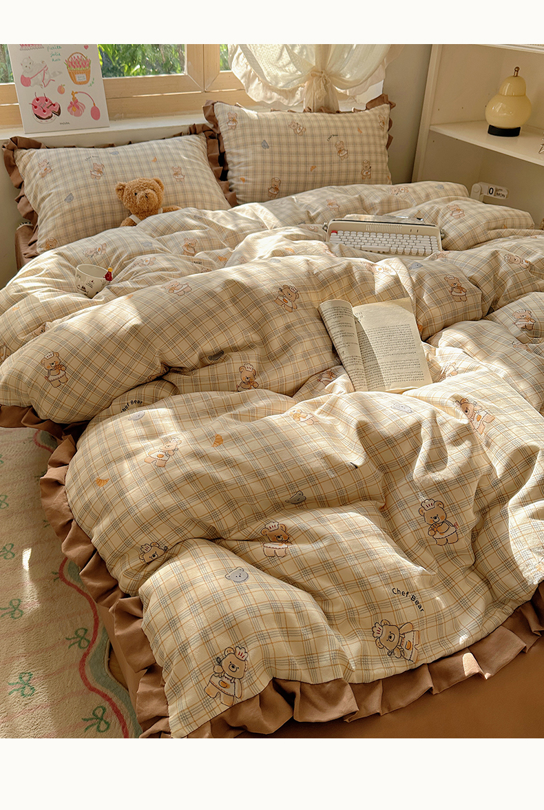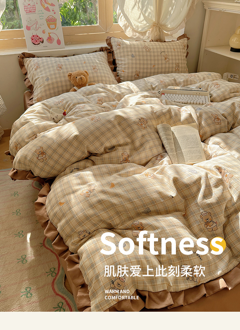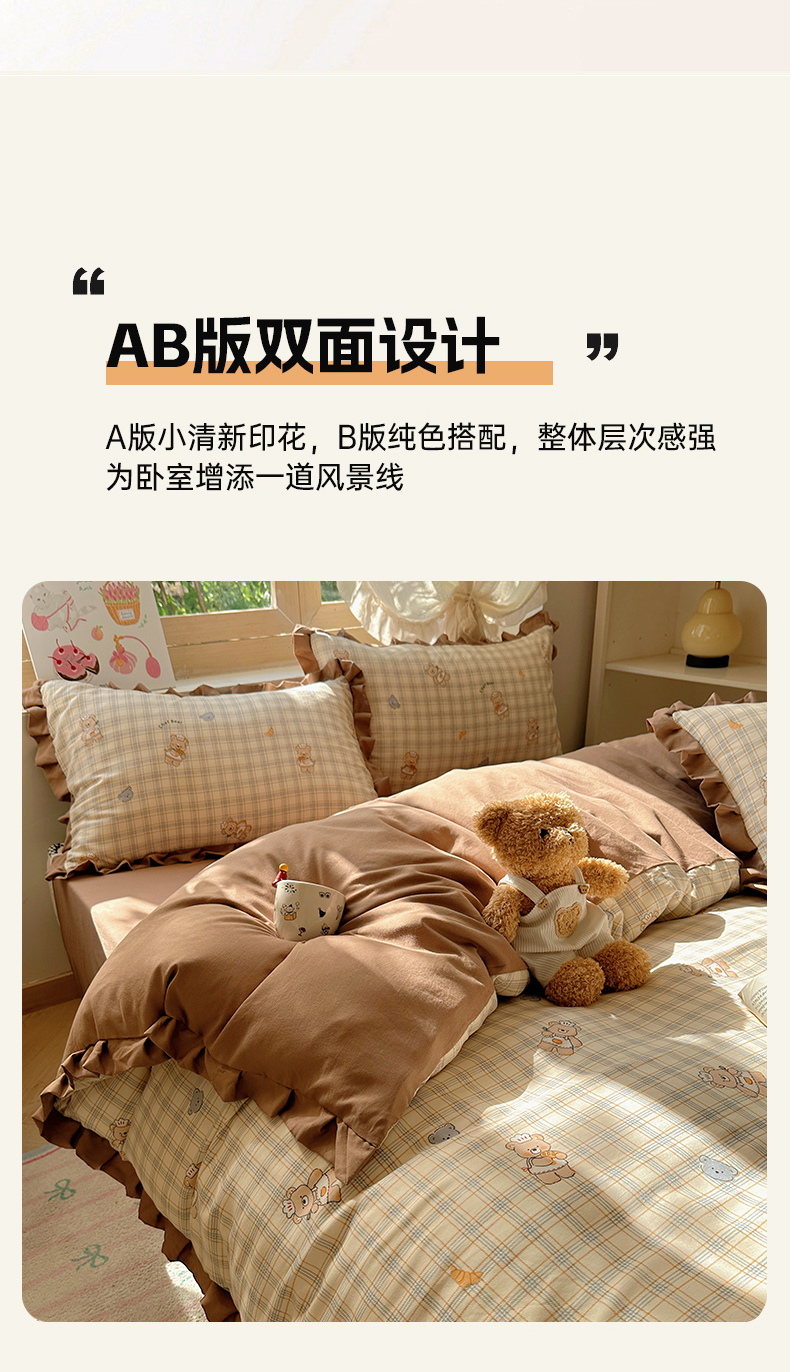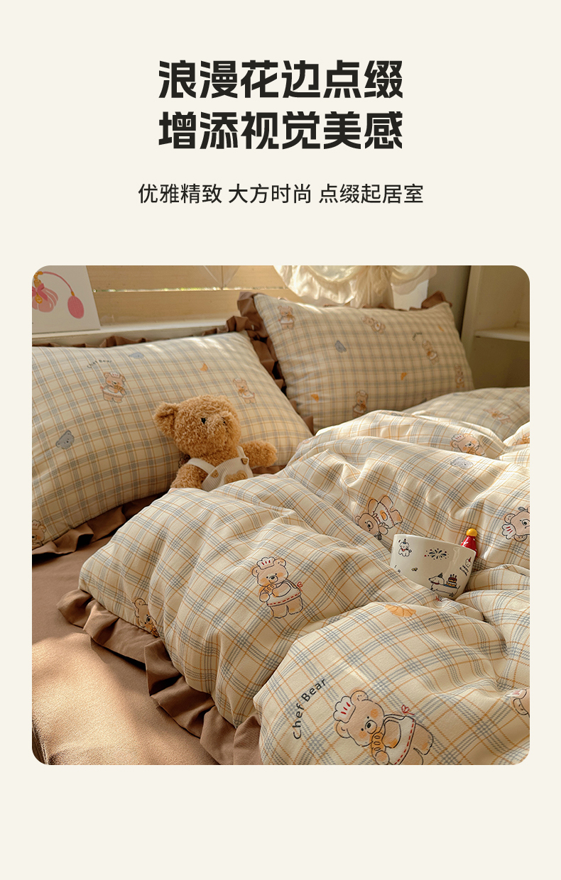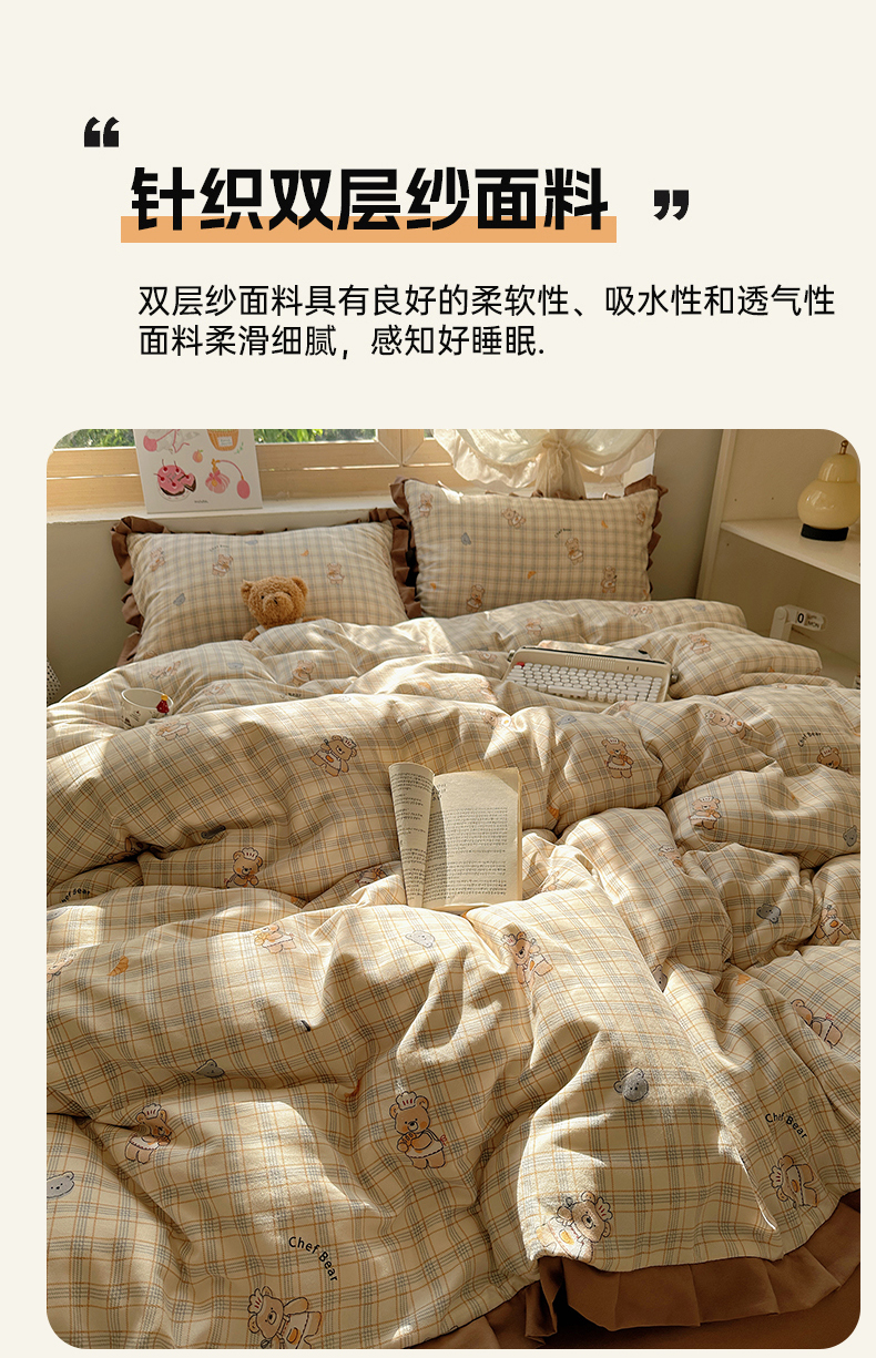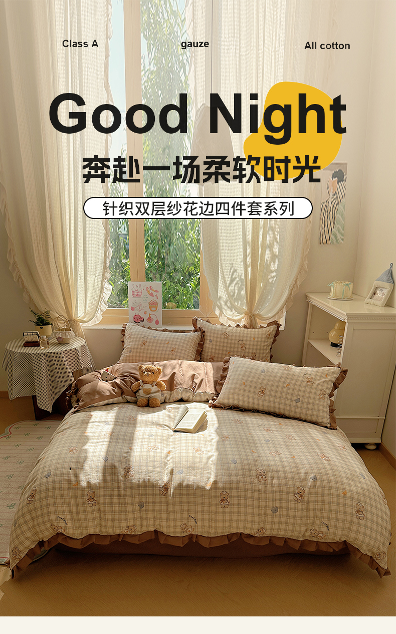 当前位置: 91家纺网 > 商品网购 > 床品套件 > 四件套 > 双层纱四件套 > 韩巢家纺 2025新款针织双层纱花边款被套直播热销款四件套学生宿舍床单三件套-(提供卖家秀) 熊先生