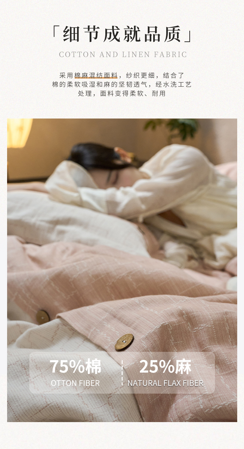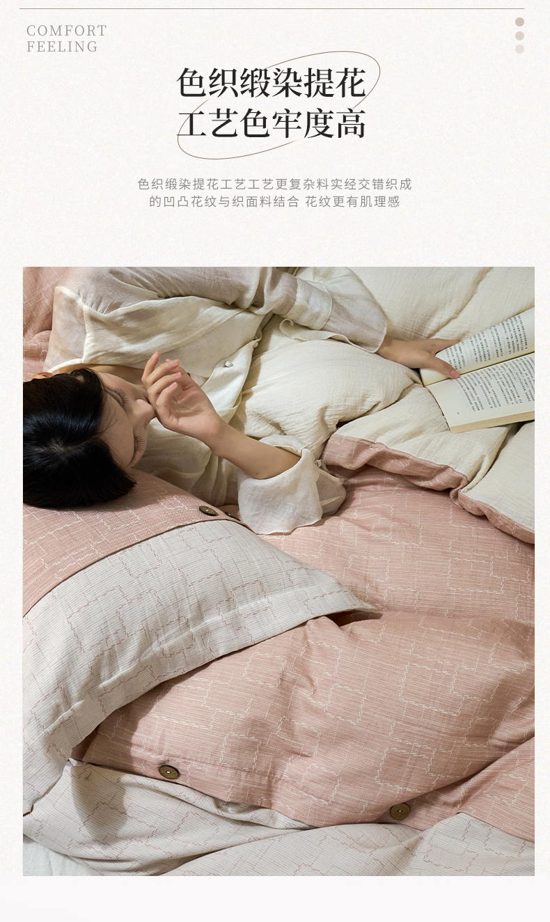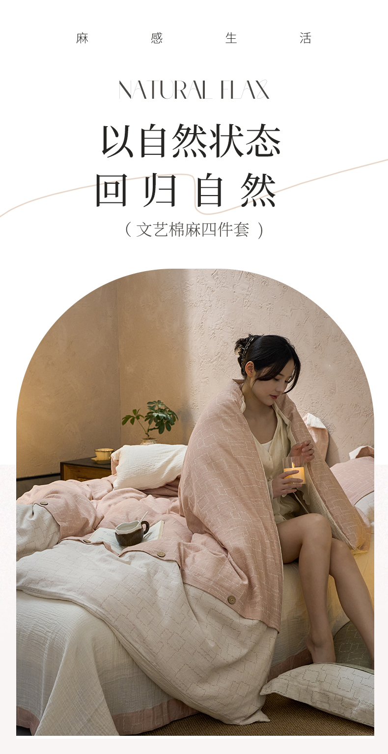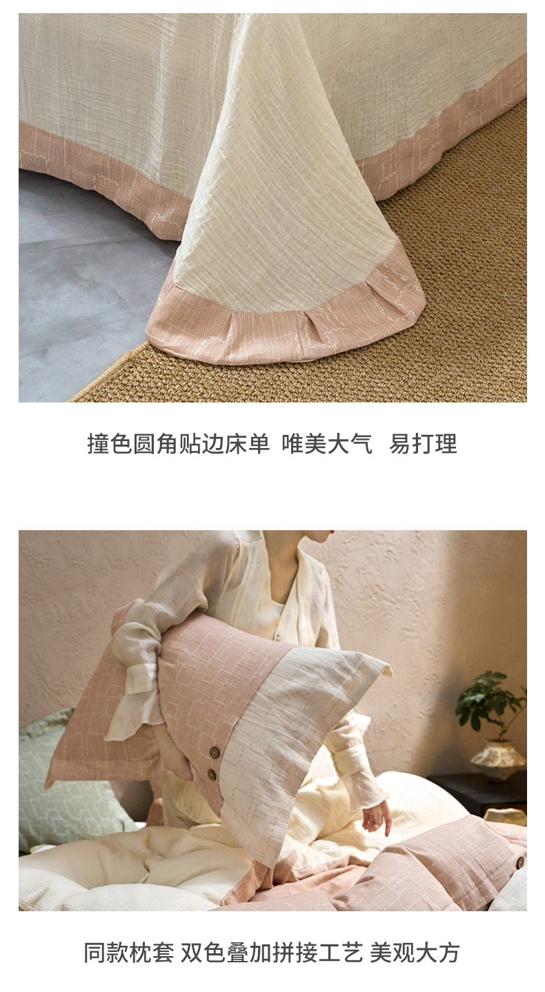 商品名称:春皖家纺 2025新款棉麻大提花文艺风四件套 时空-粉