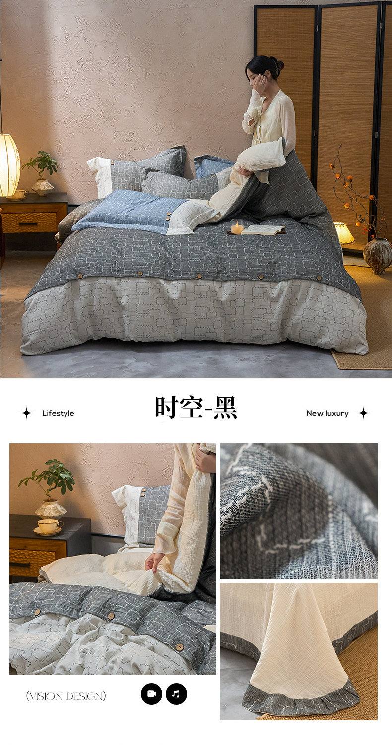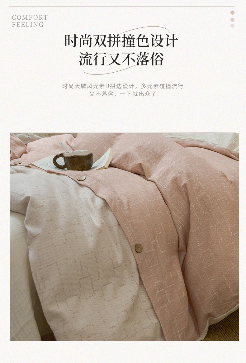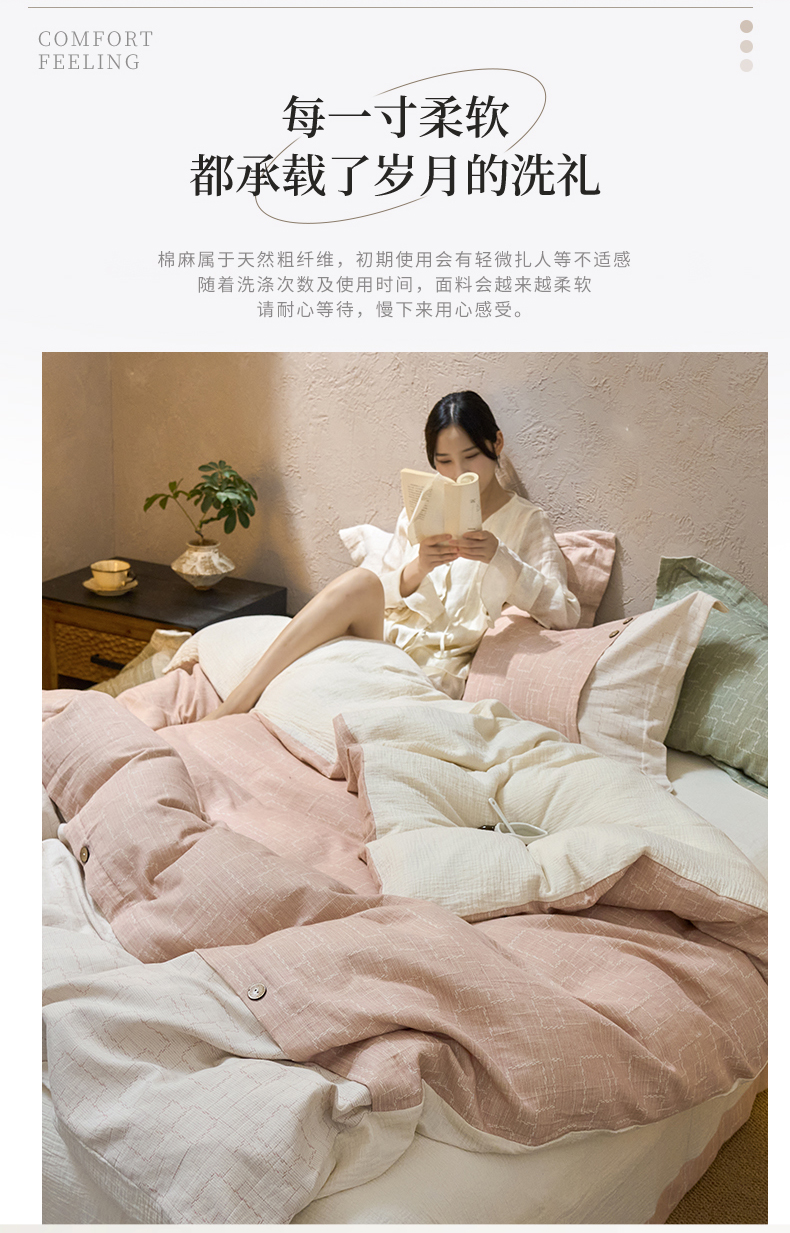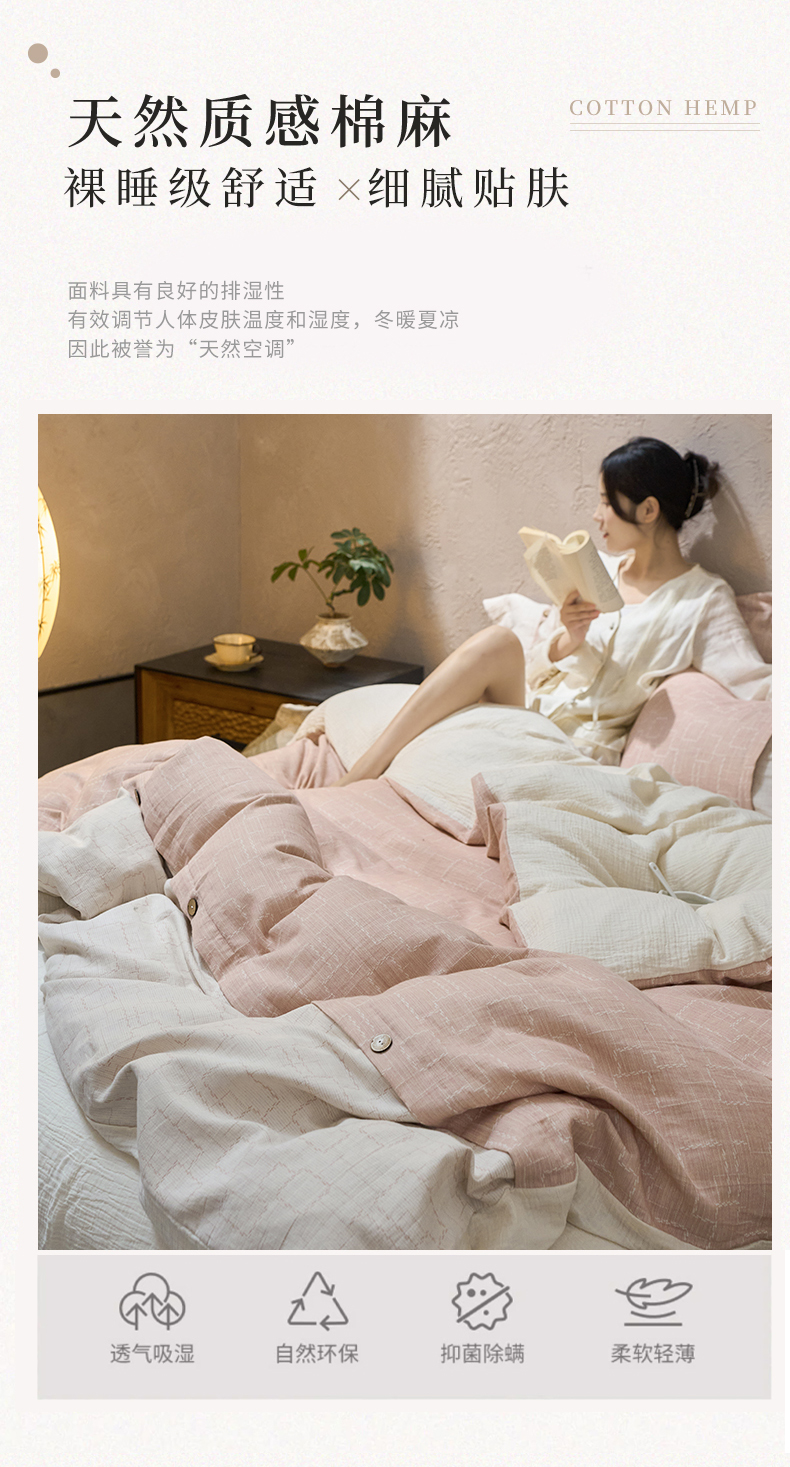 商品名称:春皖家纺 2025新款棉麻大提花文艺风四件套 时空-粉