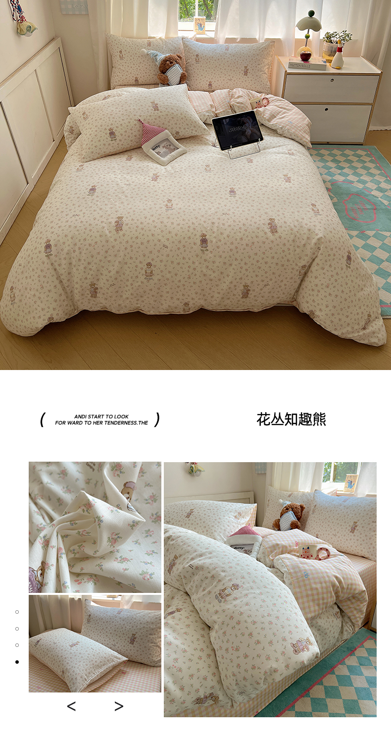(总)六巷胡同 2025新款INS卡通童趣混搭风全棉四件套第二系,混搭-蛋糕围兜熊,混搭-奶油酣睡熊,混搭-奈斯羞羞狗,混搭-小蓝格甜点,混搭-雪糕哈皮熊,混搭-月亮睡睡熊